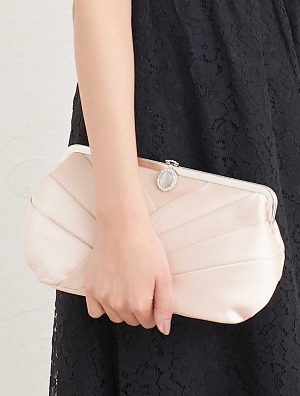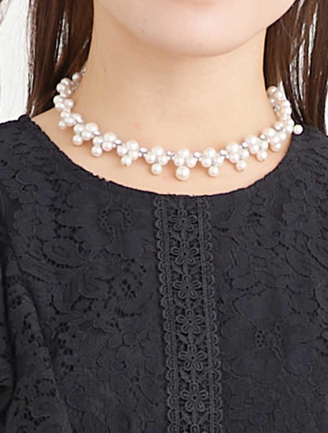 ■落ち着いたブラックのドレスには、華やかなアクセサリーを合わせてパーティースタイルに。