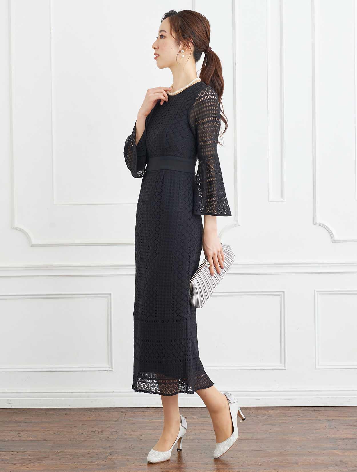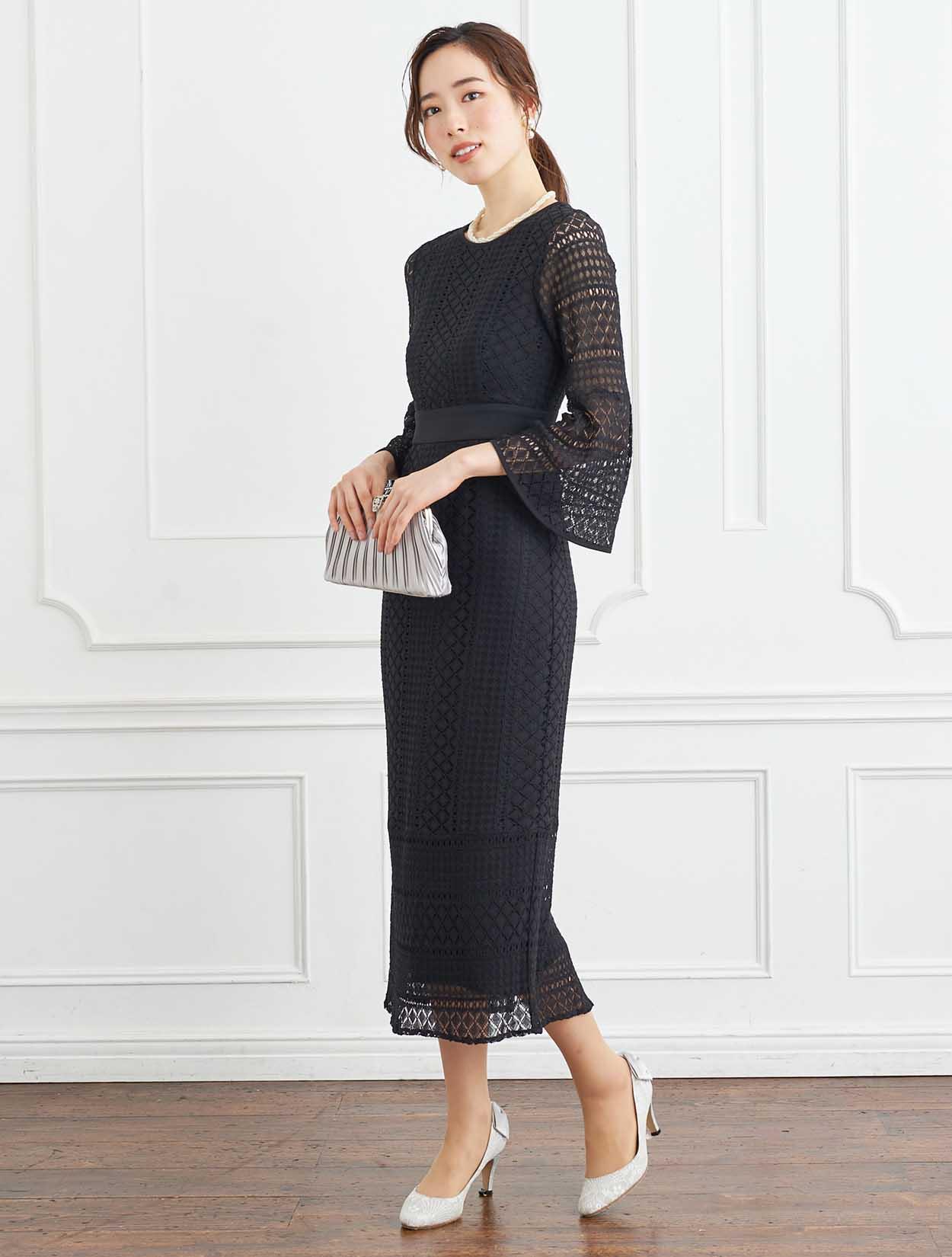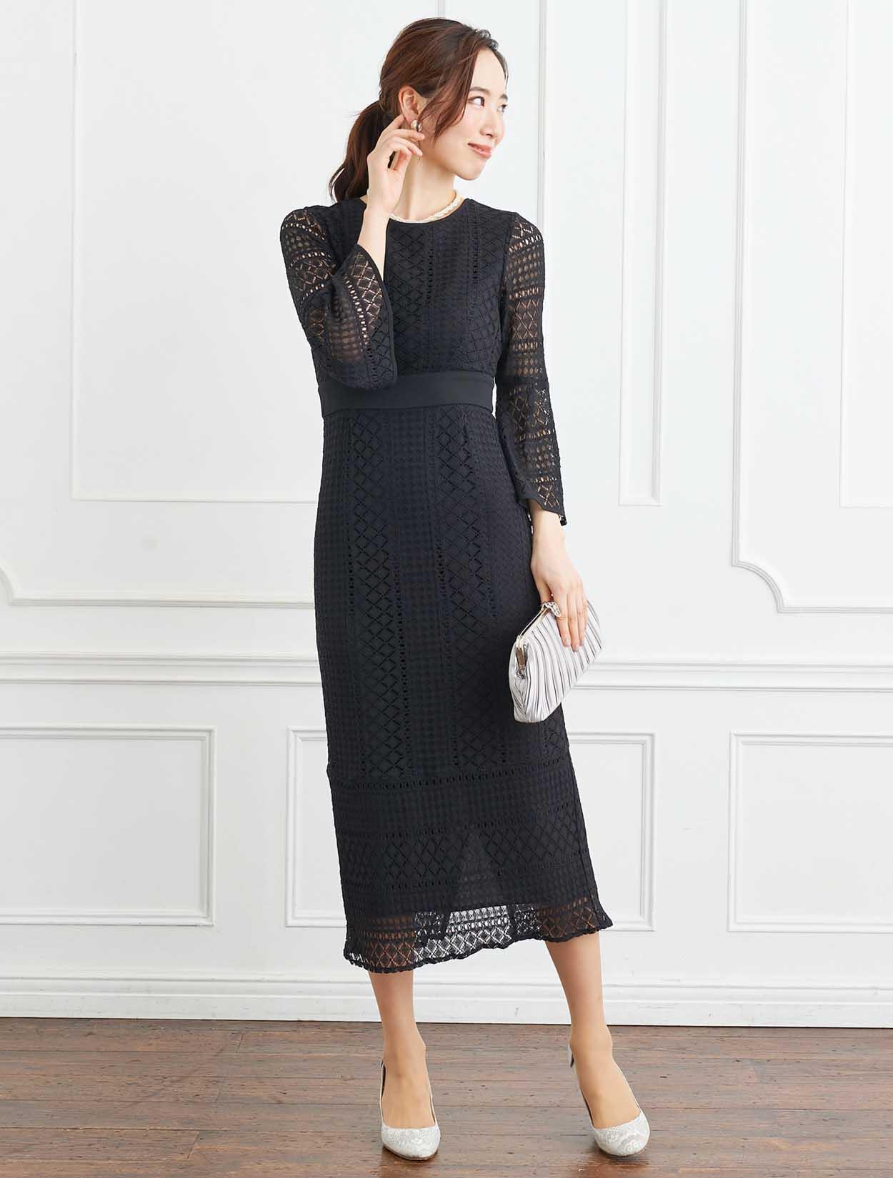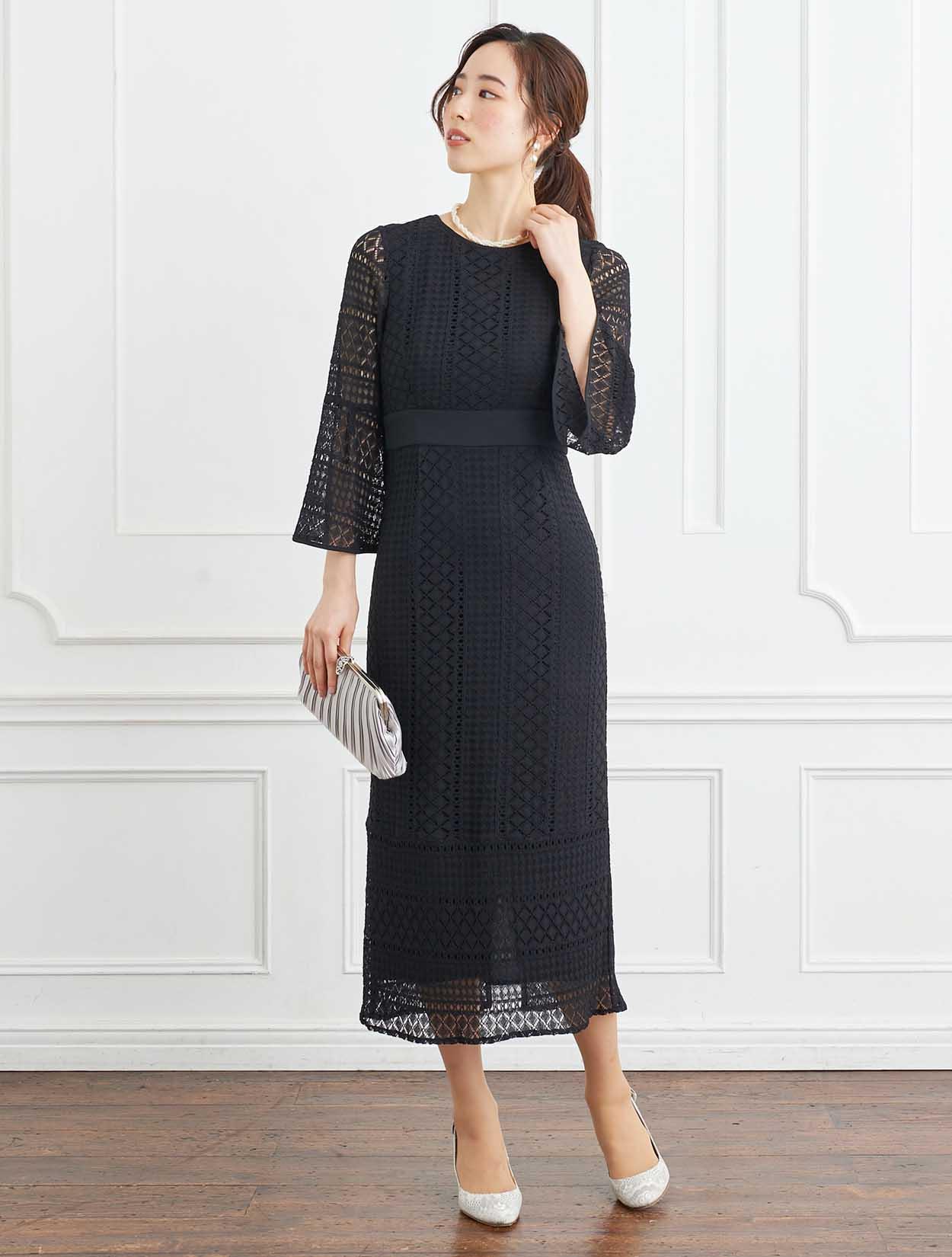 ■大人エレガントなブラックドレスは、幅広い方にオススメのドレスです。重くなりがちなブラックカラーも、レースの透け感で華やかな印象になります。