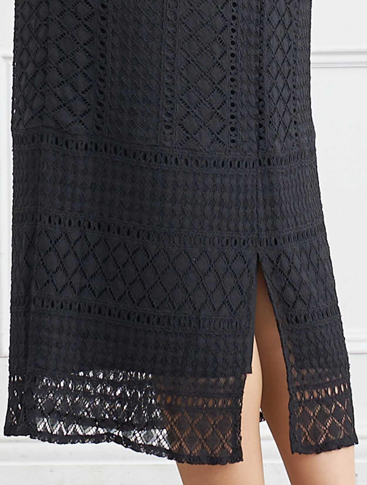 ■おしゃれ感抜群なクロシェ風レースのエレガントなロングドレス。