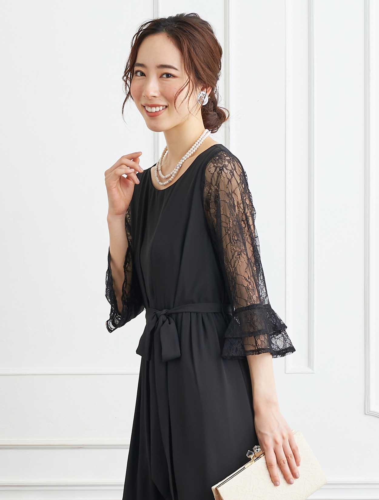 ■ブラックのドレスはしっとりとした大人の装いに仕上がり、年代を問わずに使うことのできるカラーです。