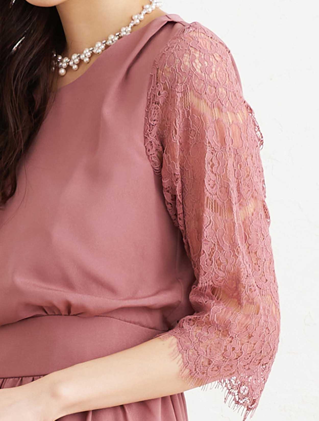■袖、スカート裾に施されたレースのスカラップがとても上品な一枚。