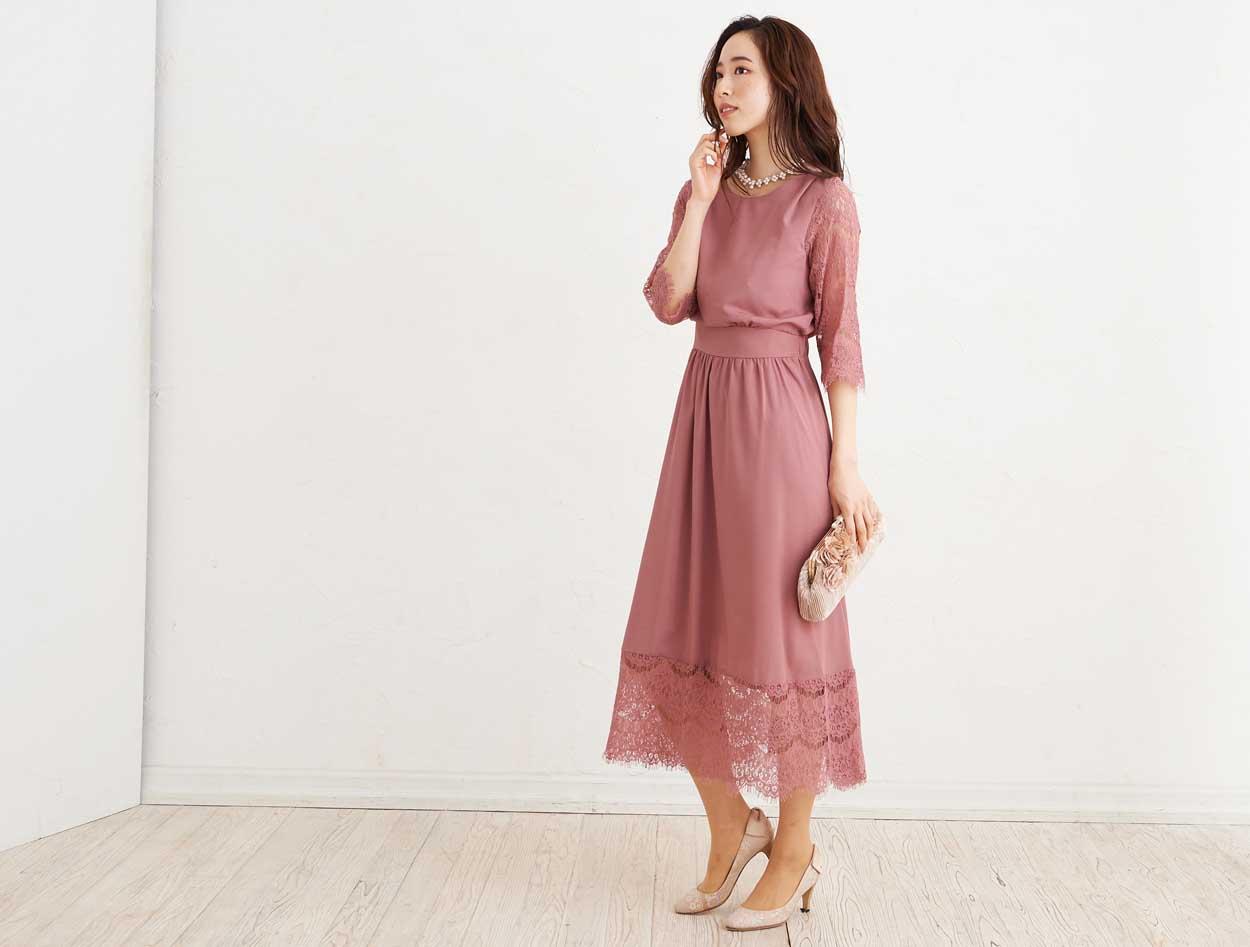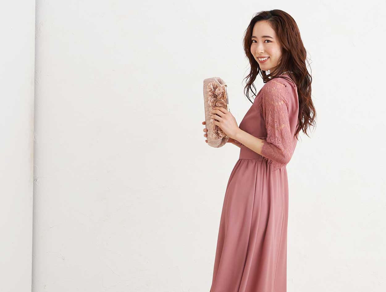 ■華やかで幸せを感じさせるピンクは、パーティードレスでも人気のカラー。