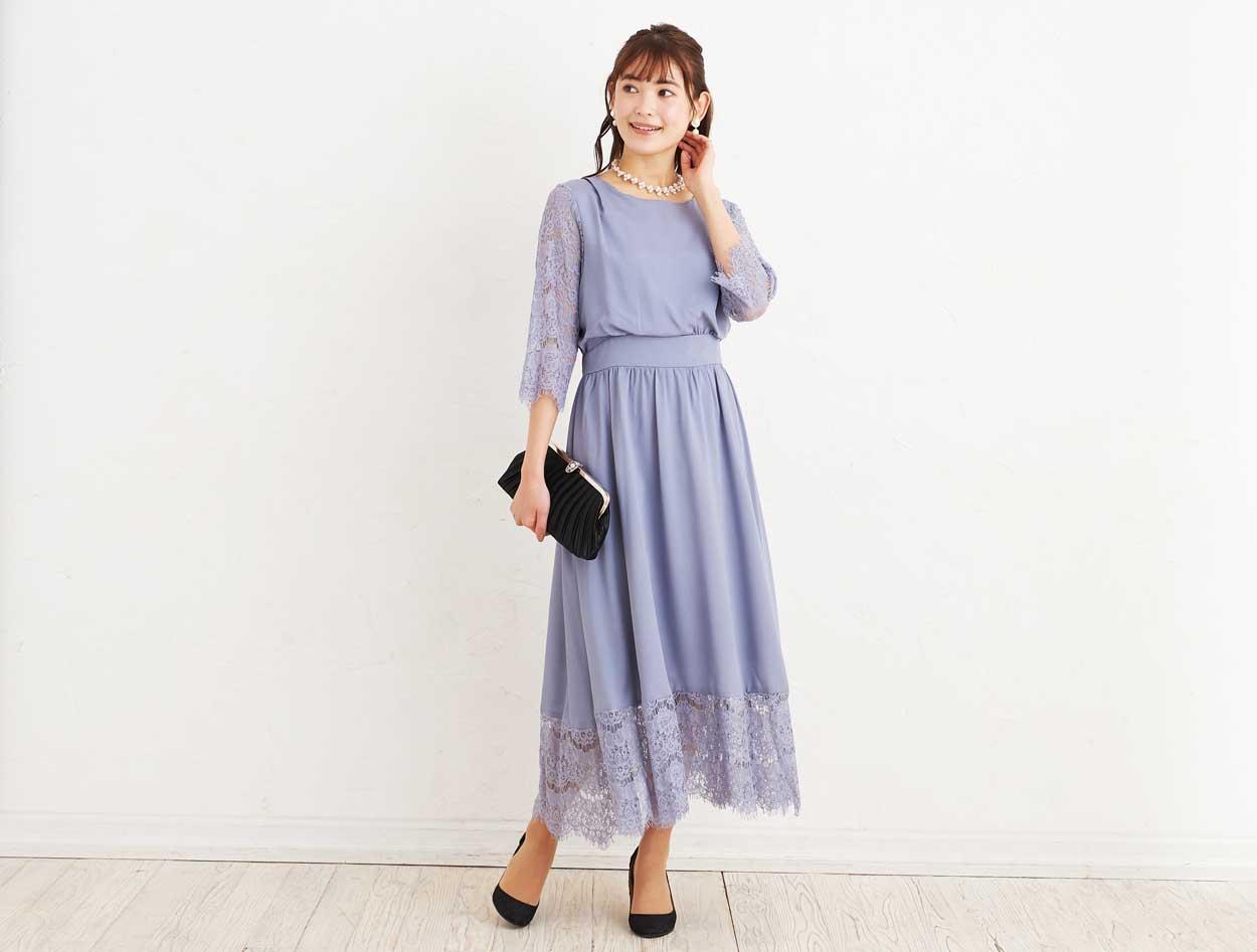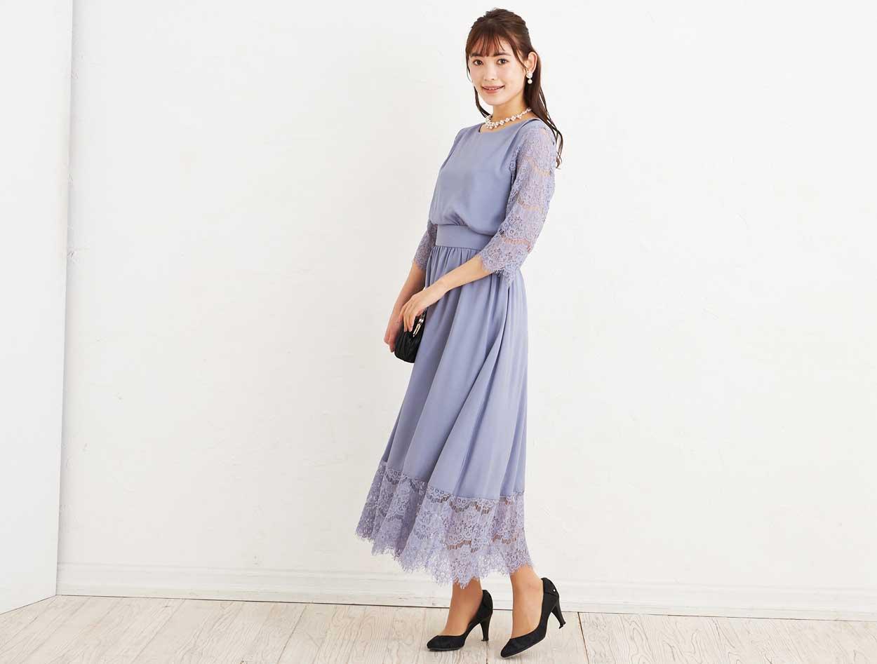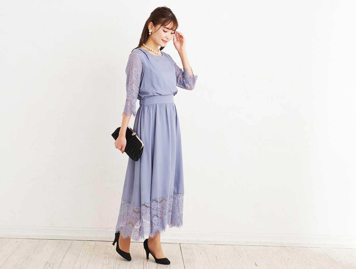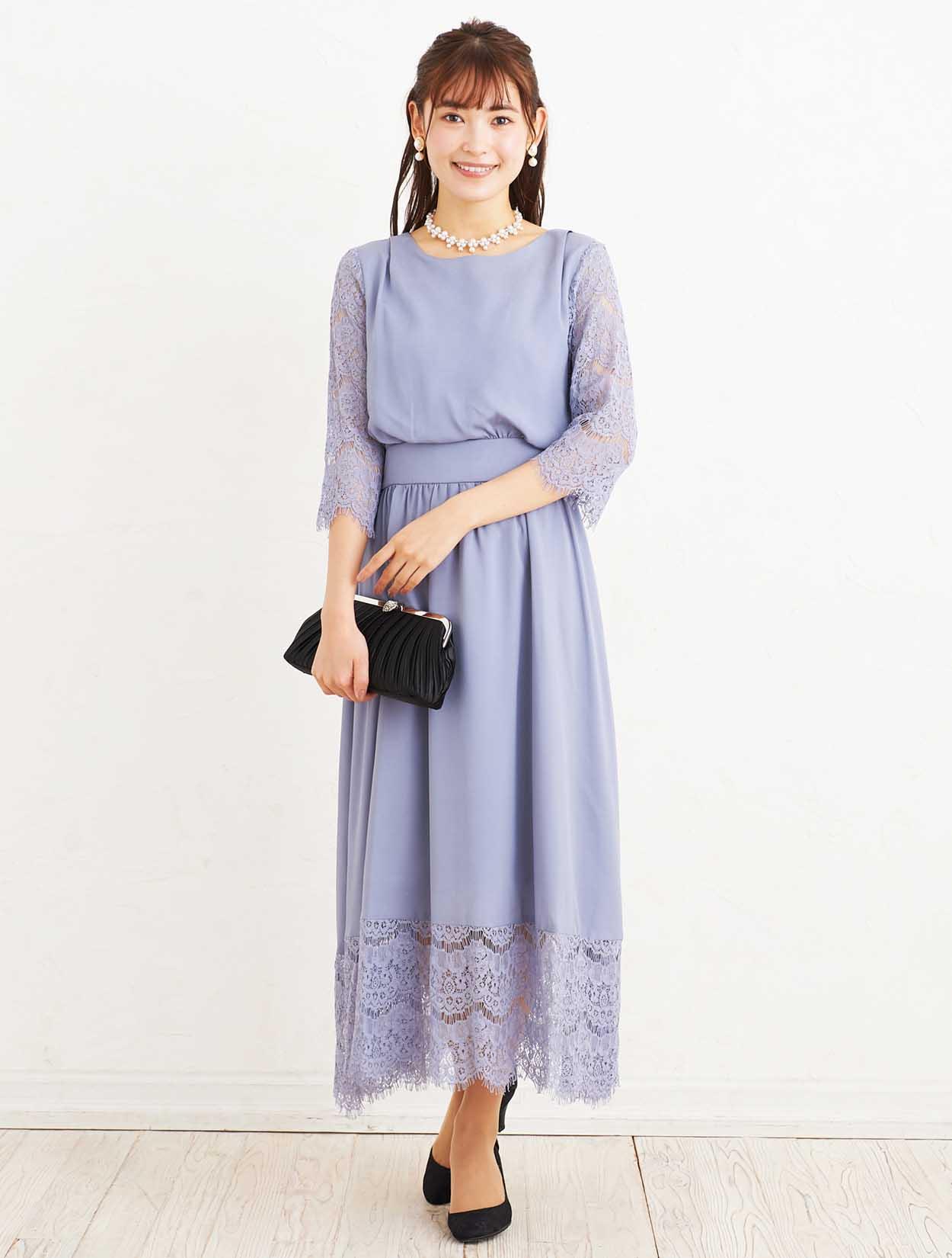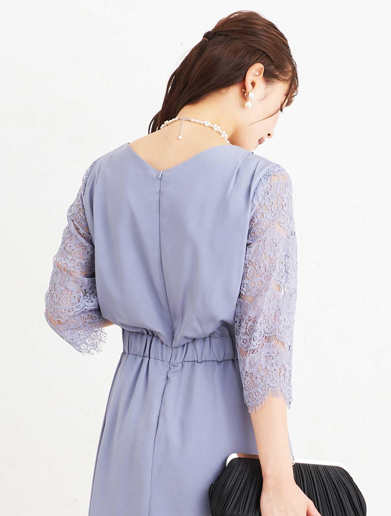 ■袖、スカート裾に施されたレースのスカラップがとても上品な一枚。