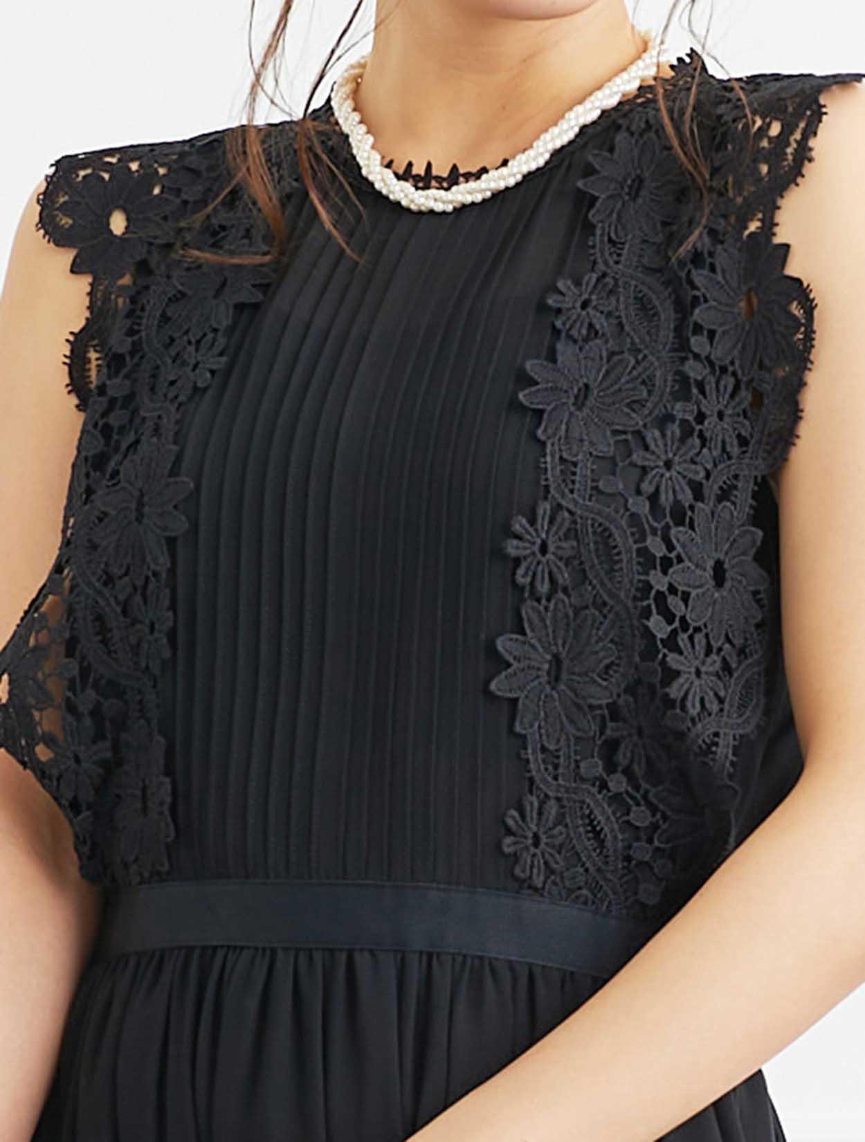 ■ネックからウエストに重なるタックデザインとレーススリーブが、今年らしく着こなせるドレスです。