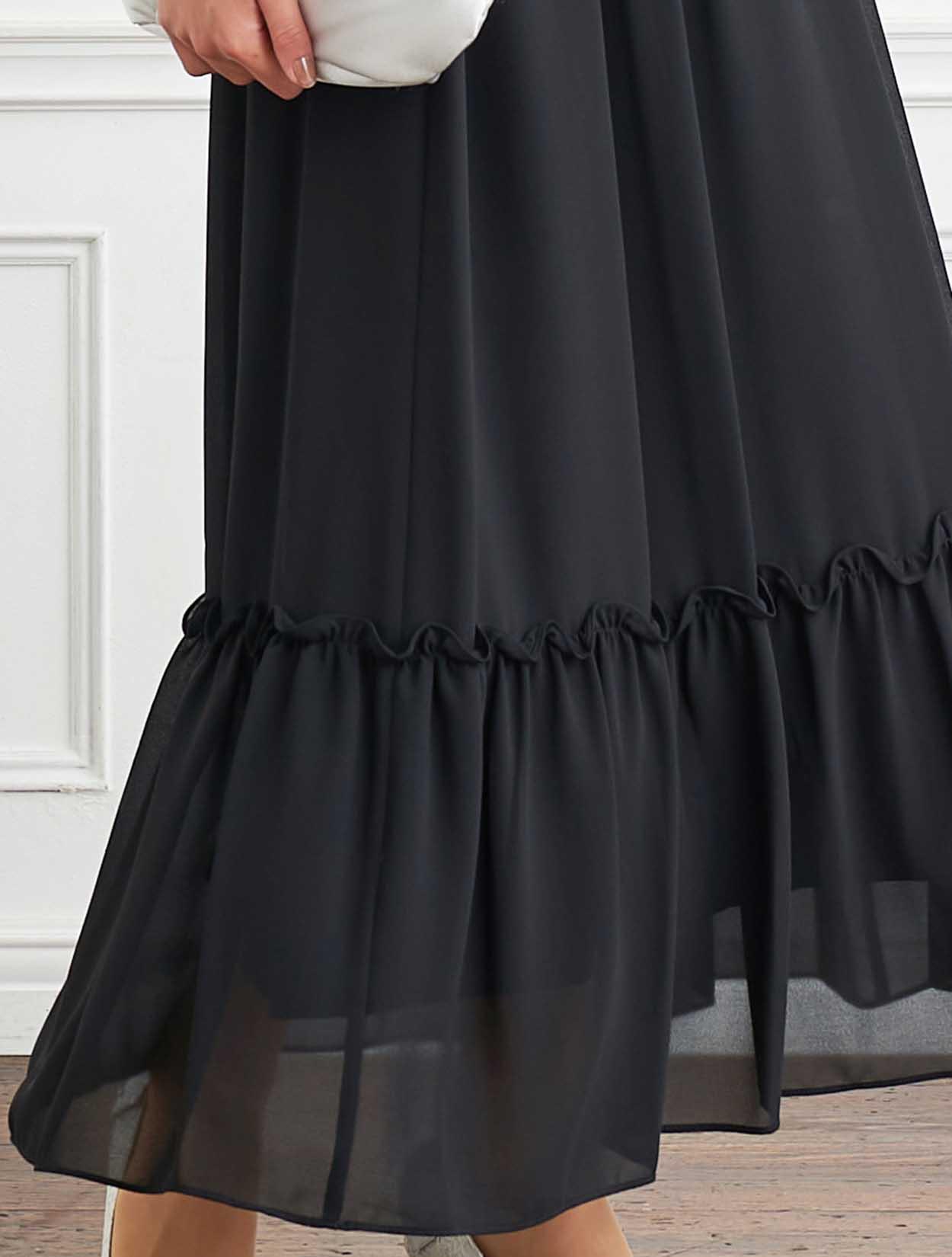 ■スカート部分には細かなギャザーをたっぷり入れ、立体感を演出。歩くたびにゆらゆらと広がりを見せ、ムードのある1枚です。