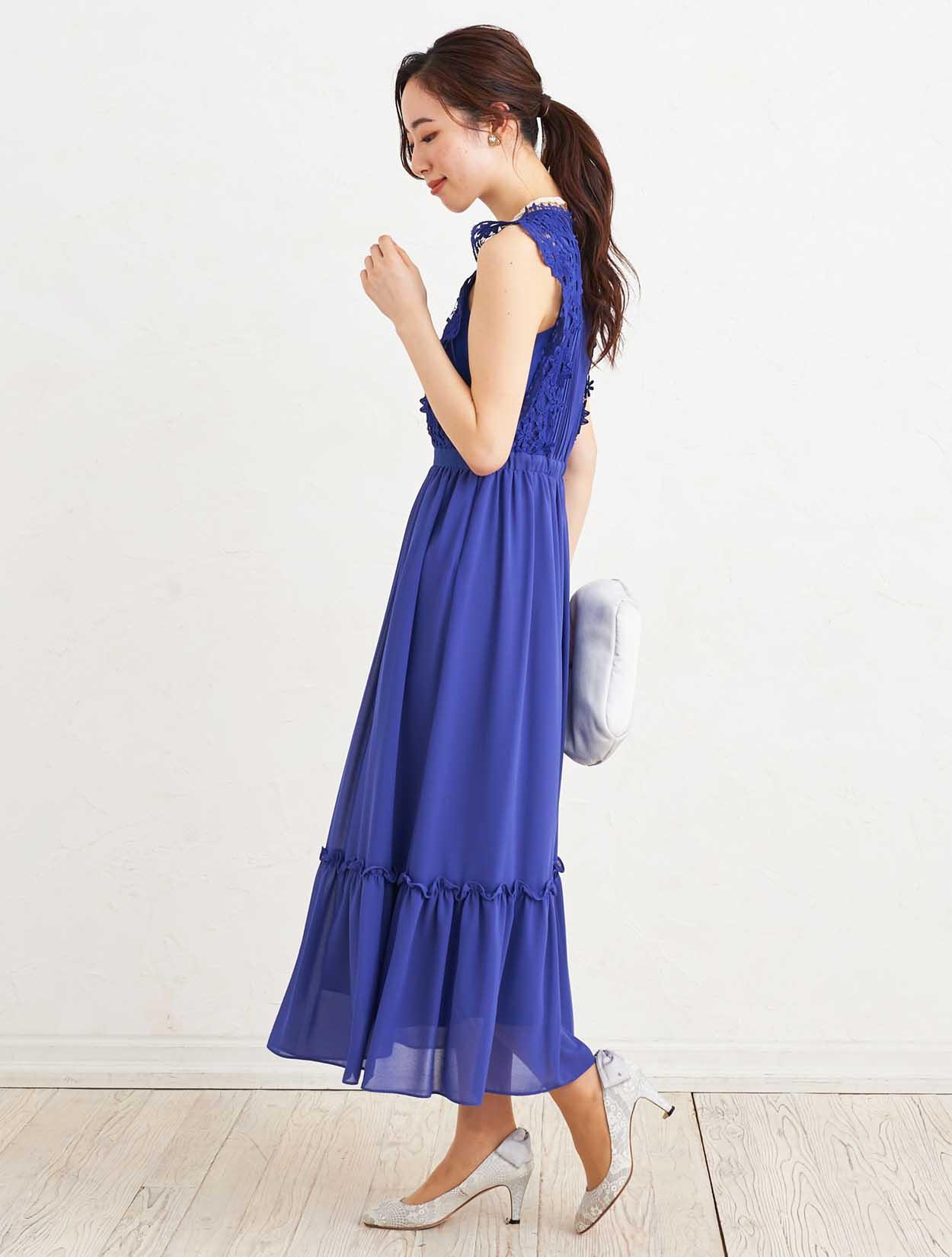 ■濃いブルーのドレスは知的で落ち着いたようなイメージが湧きます。