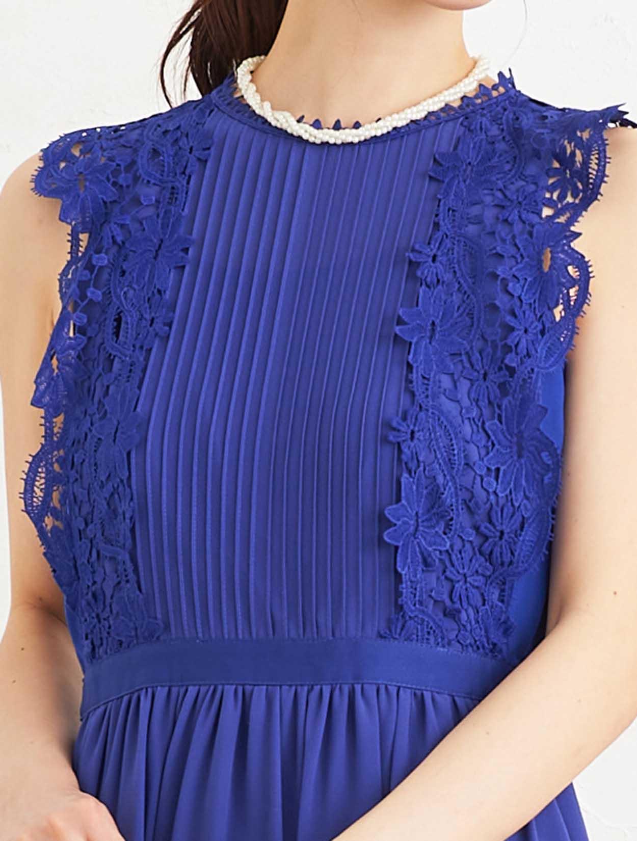 ■ネックからウエストに重なるタックデザインとレーススリーブが、今年らしく着こなせるドレスです。