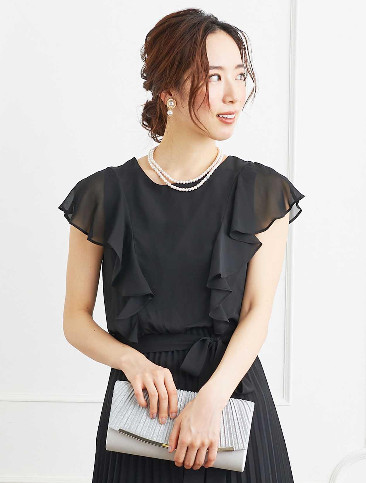 ■薄くて軽いジョーゼット素材を使用しており、ブラックのドレスでも軽やかな印象で着て頂けます。