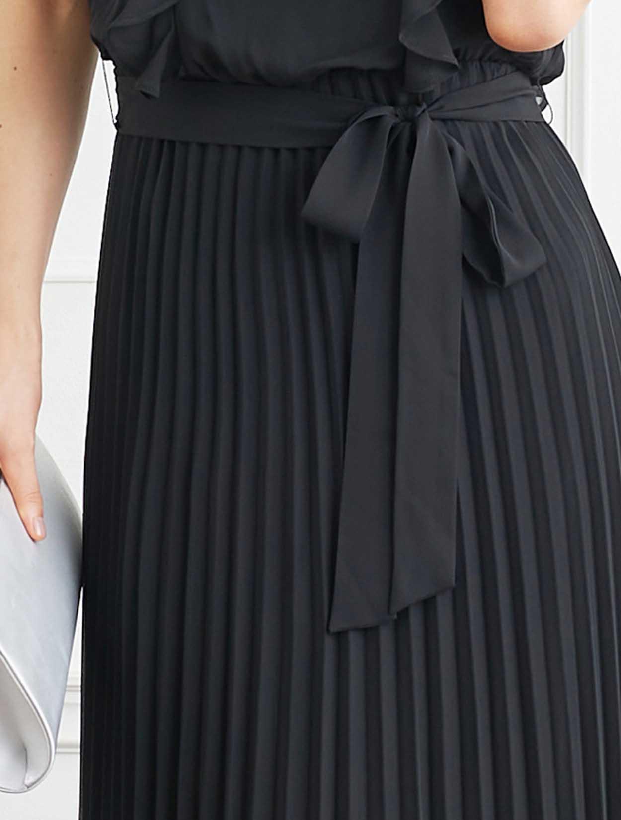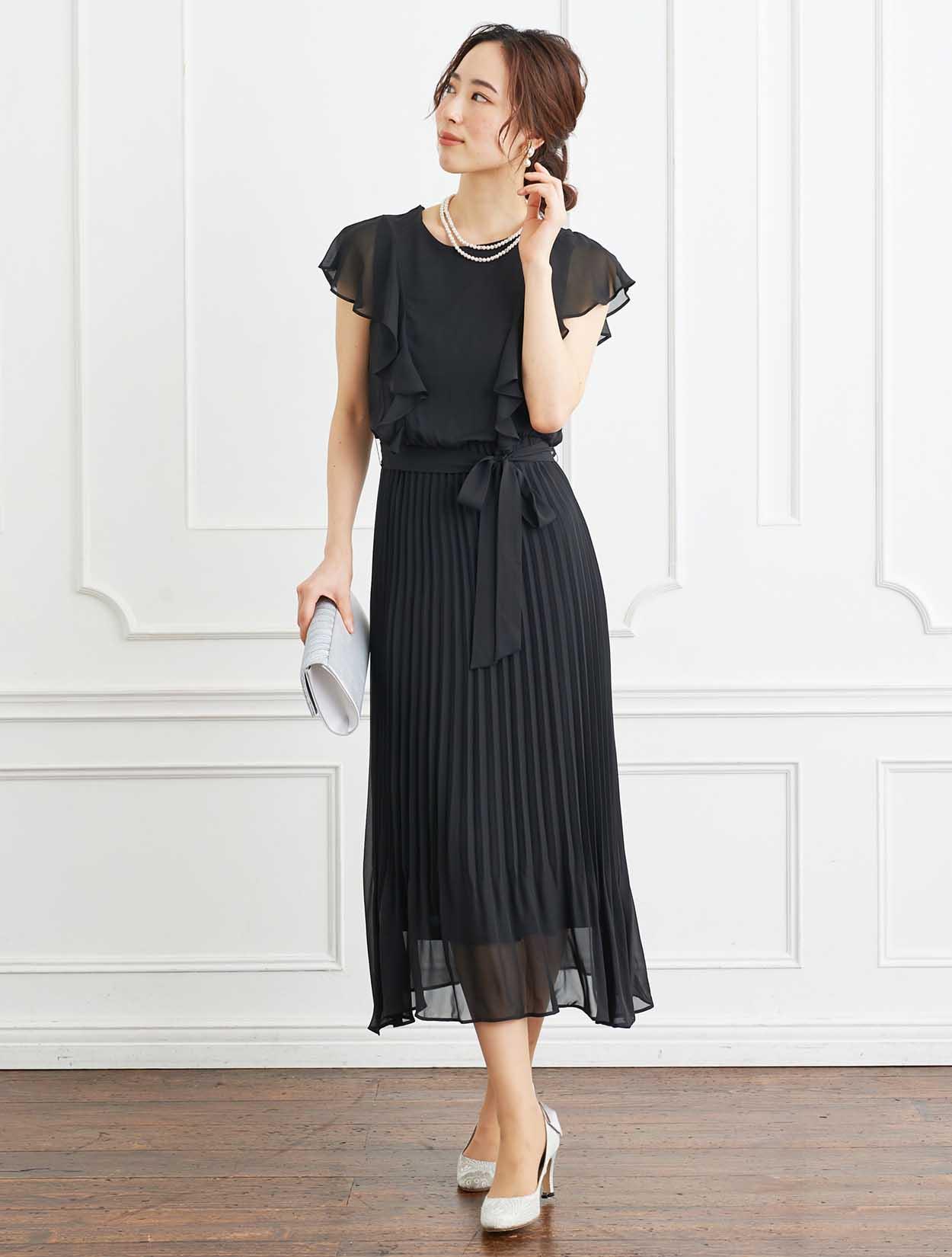 ■細かいプリーツスカートで足長効果を生み出してくれる、エレガントなロングドレスです。