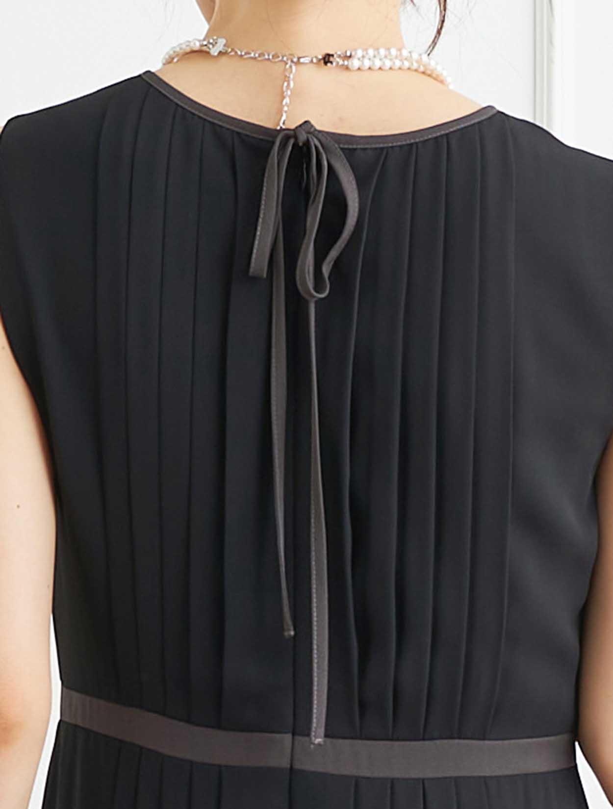 ■シックなブラックにトレンドのプリーツを上品に施した、大人の表情のロングドレス。
