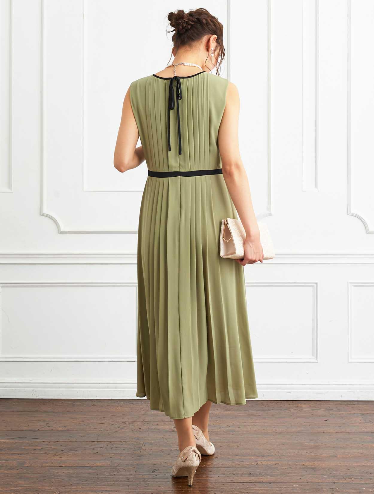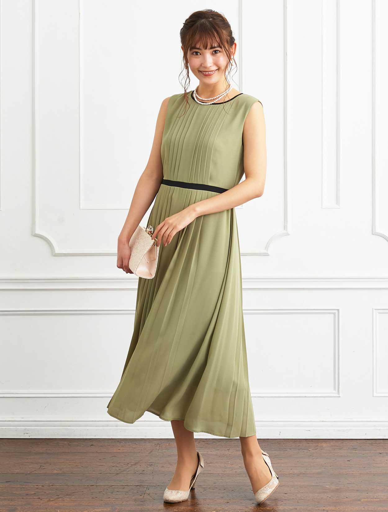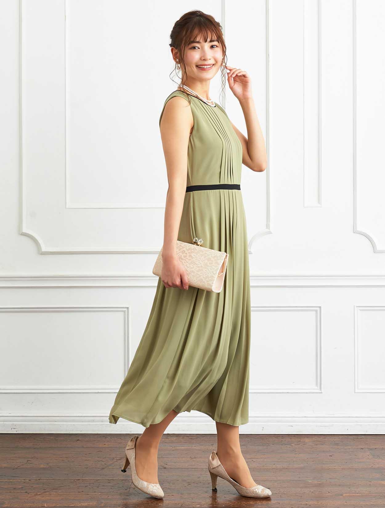 ■軽やかに揺れるプリーツスカートが上品なデザインのロングドレス。