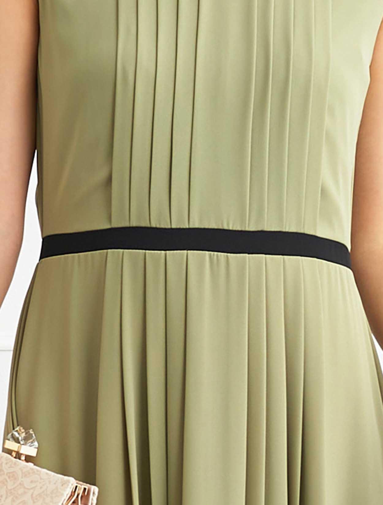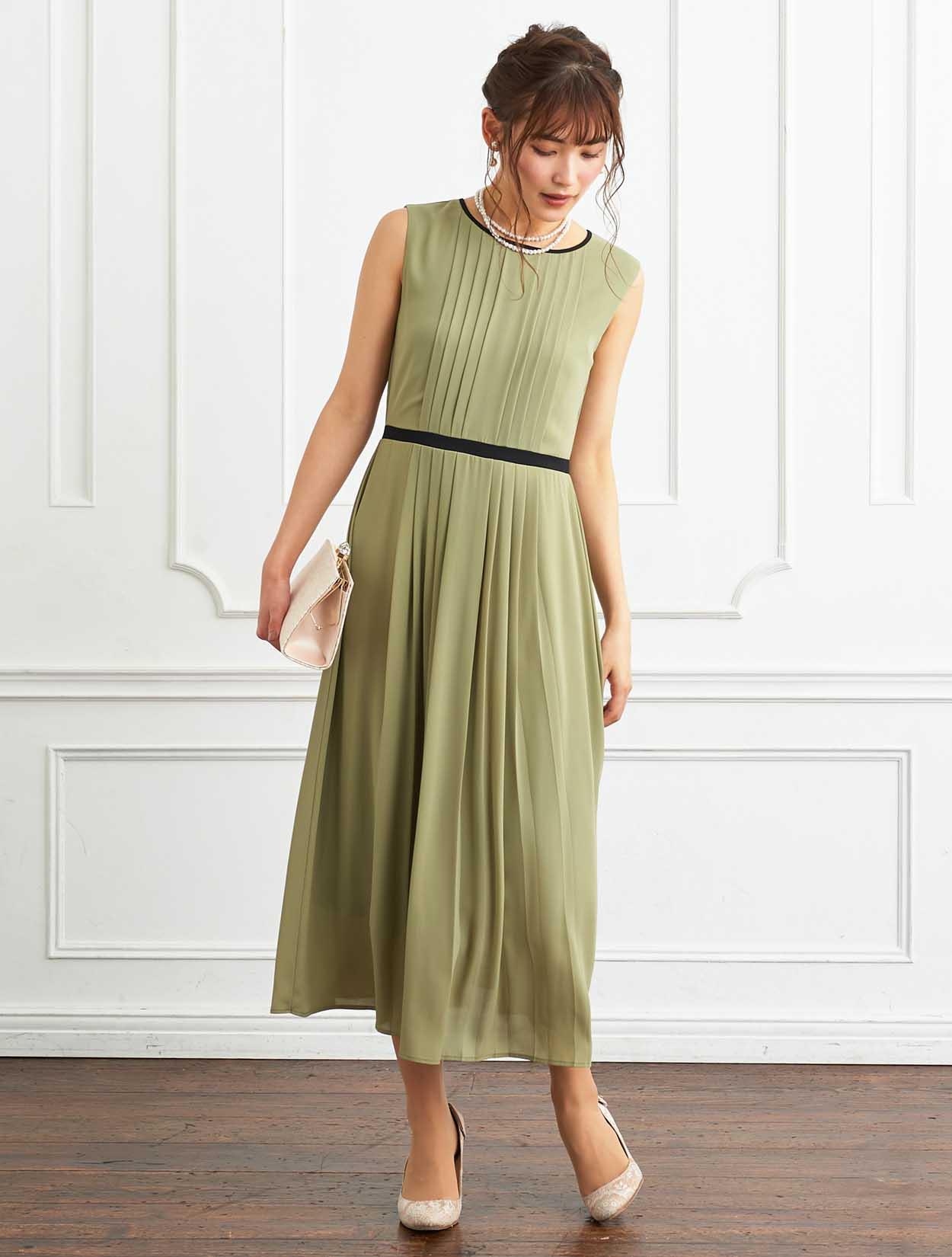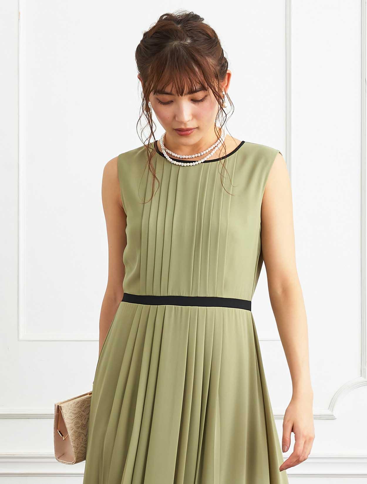 ■軽やかに揺れるプリーツスカートが上品なデザインのロングドレス。