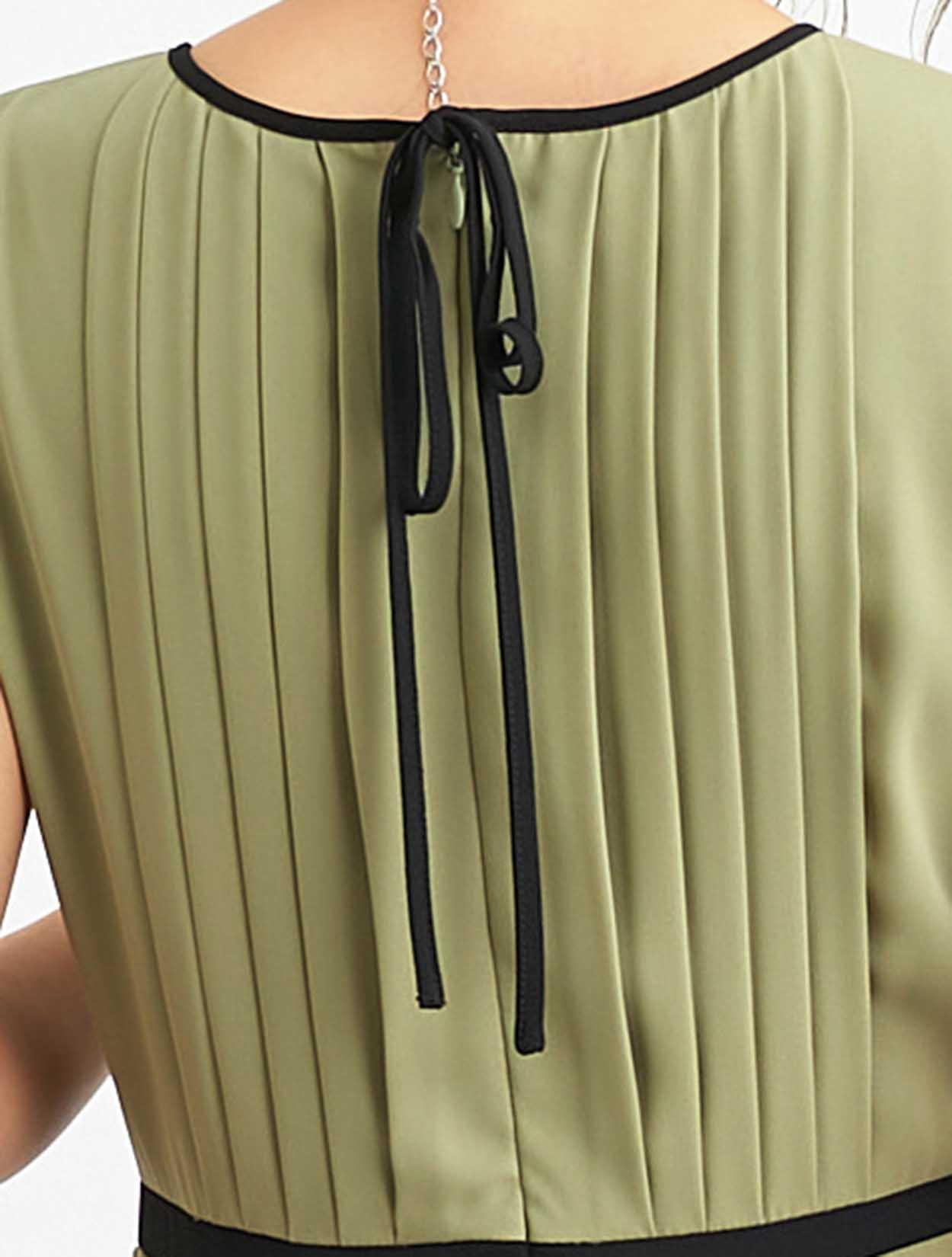 ■ウエストと襟元に施されたブラックのラインがメリハリあるスタイルに。