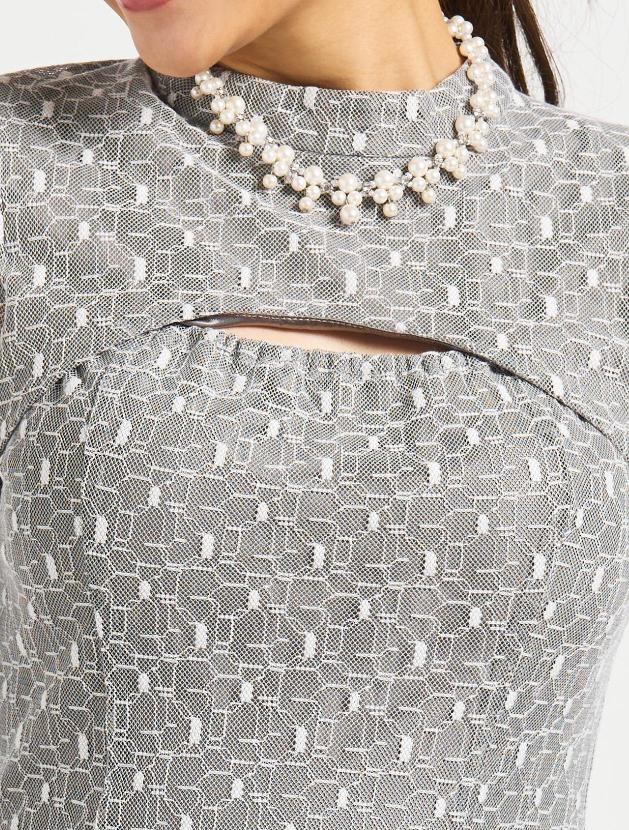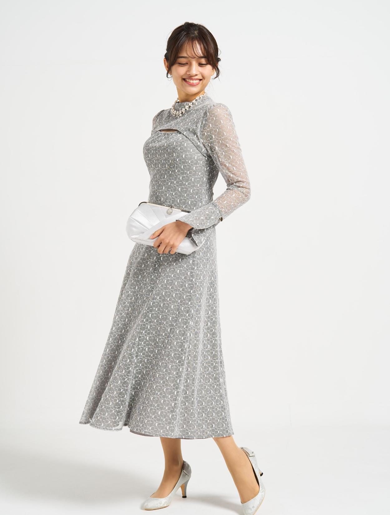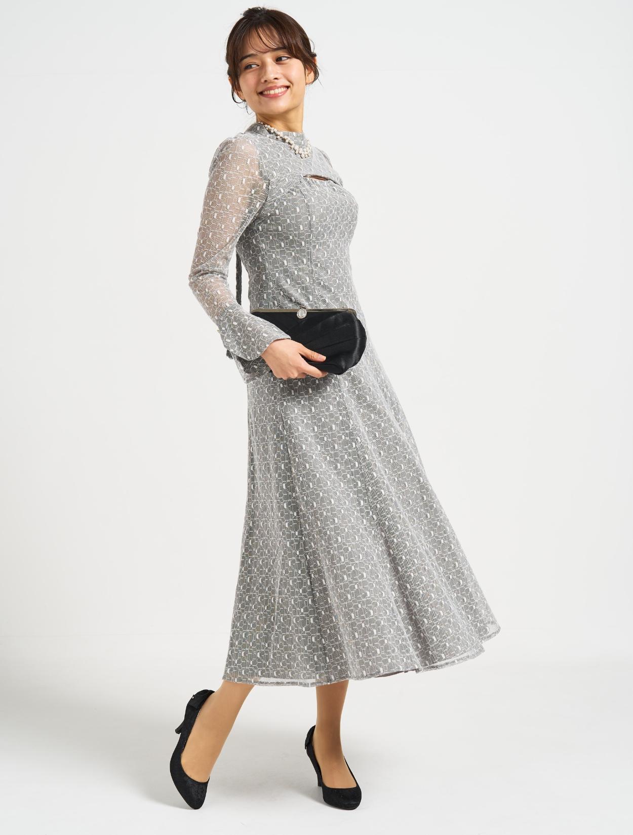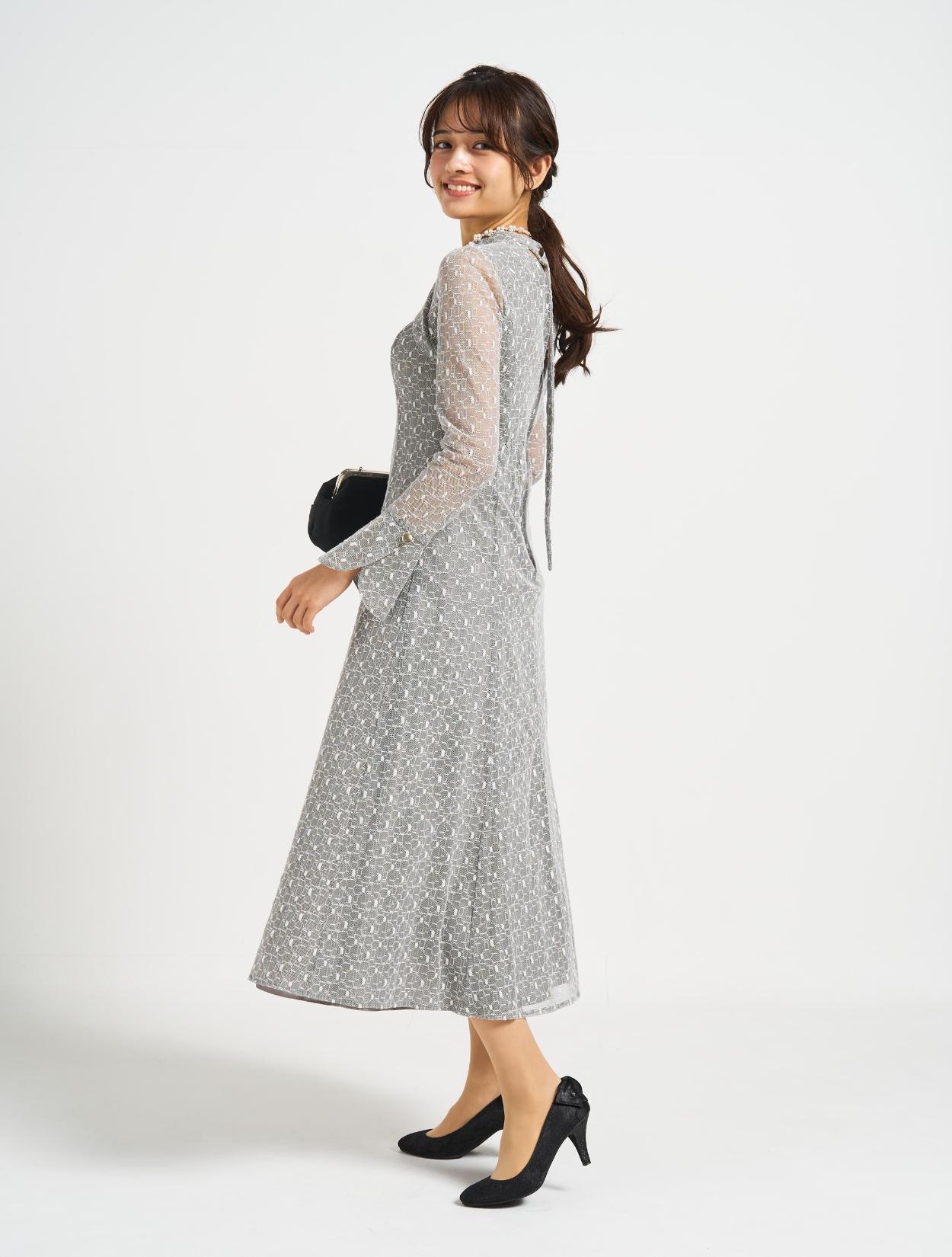 ■グレーの幾何学柄のチュールレースが珍しく、エレガントで上品な印象に!