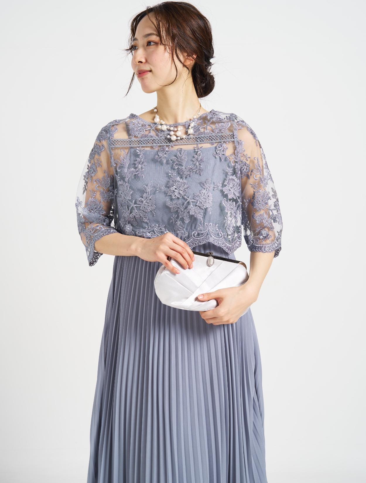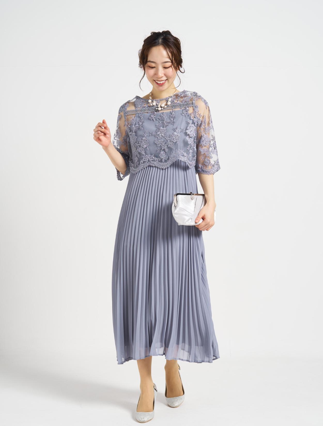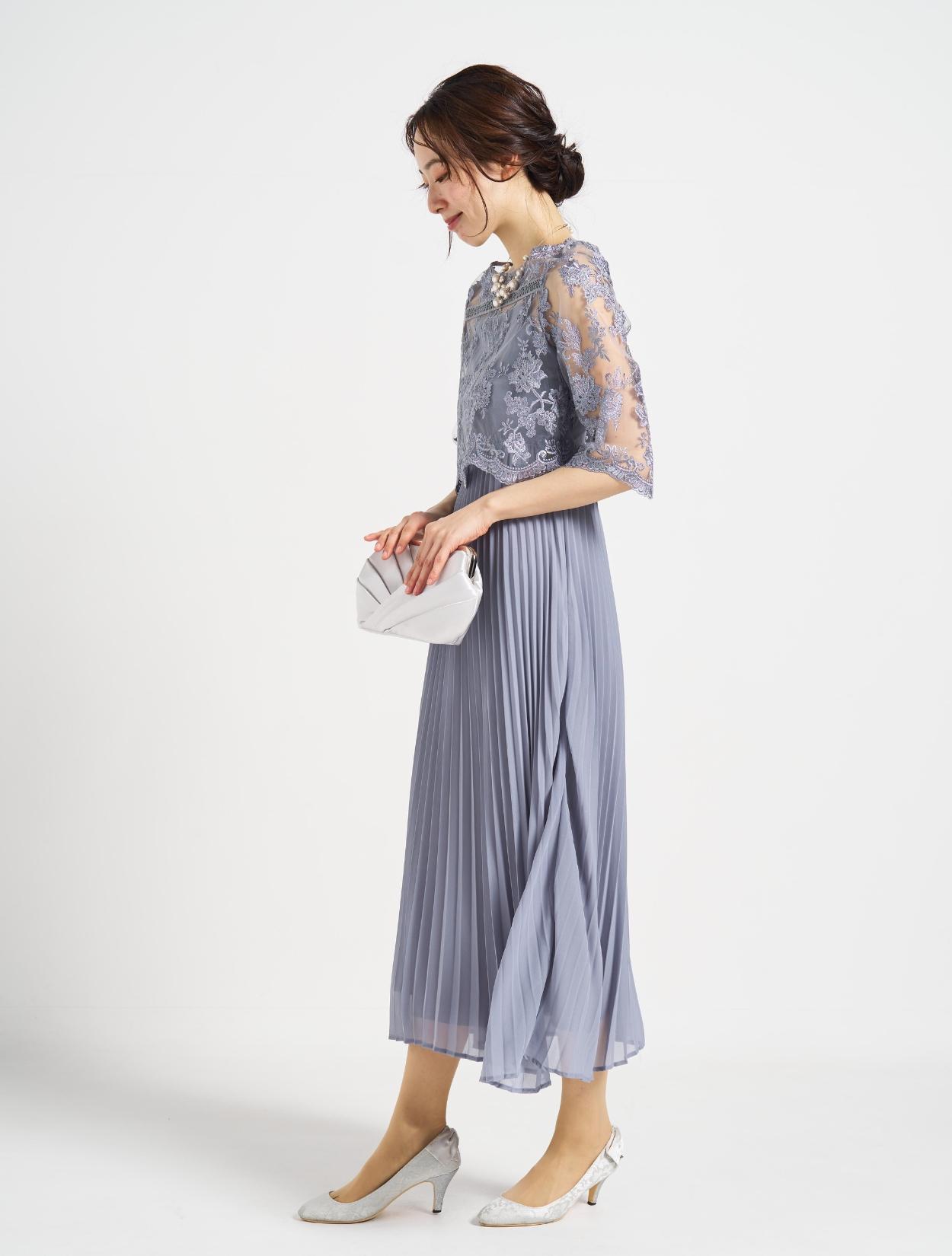 ■プリーツキャミドレスに刺繍レースのTOPSを合わせた上品な1着。