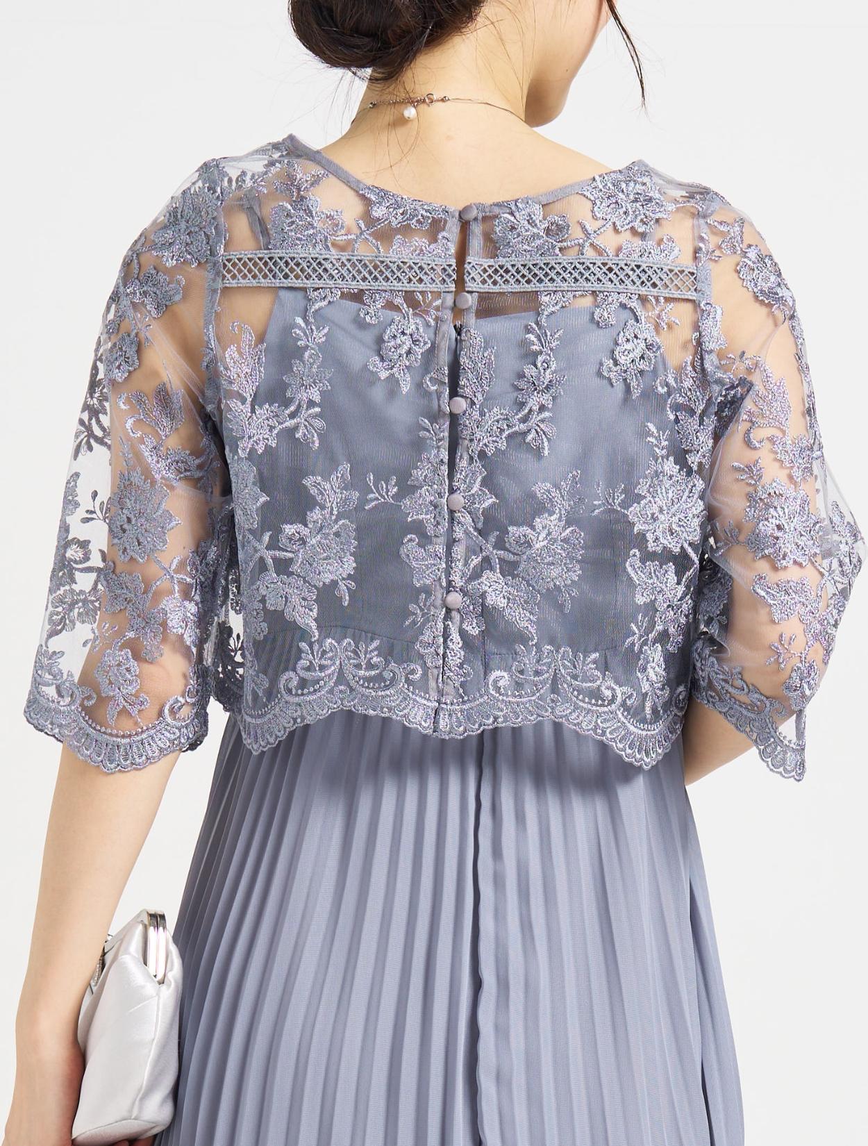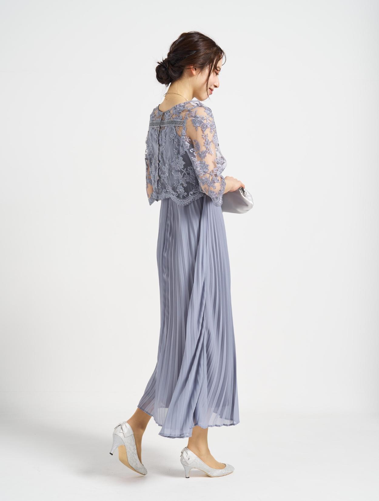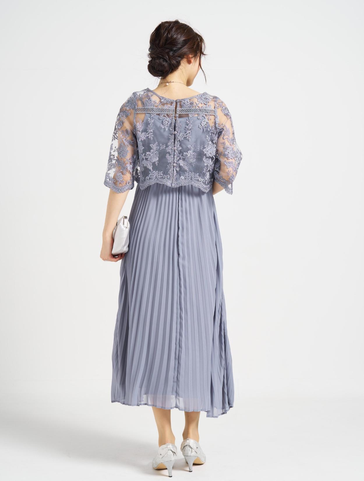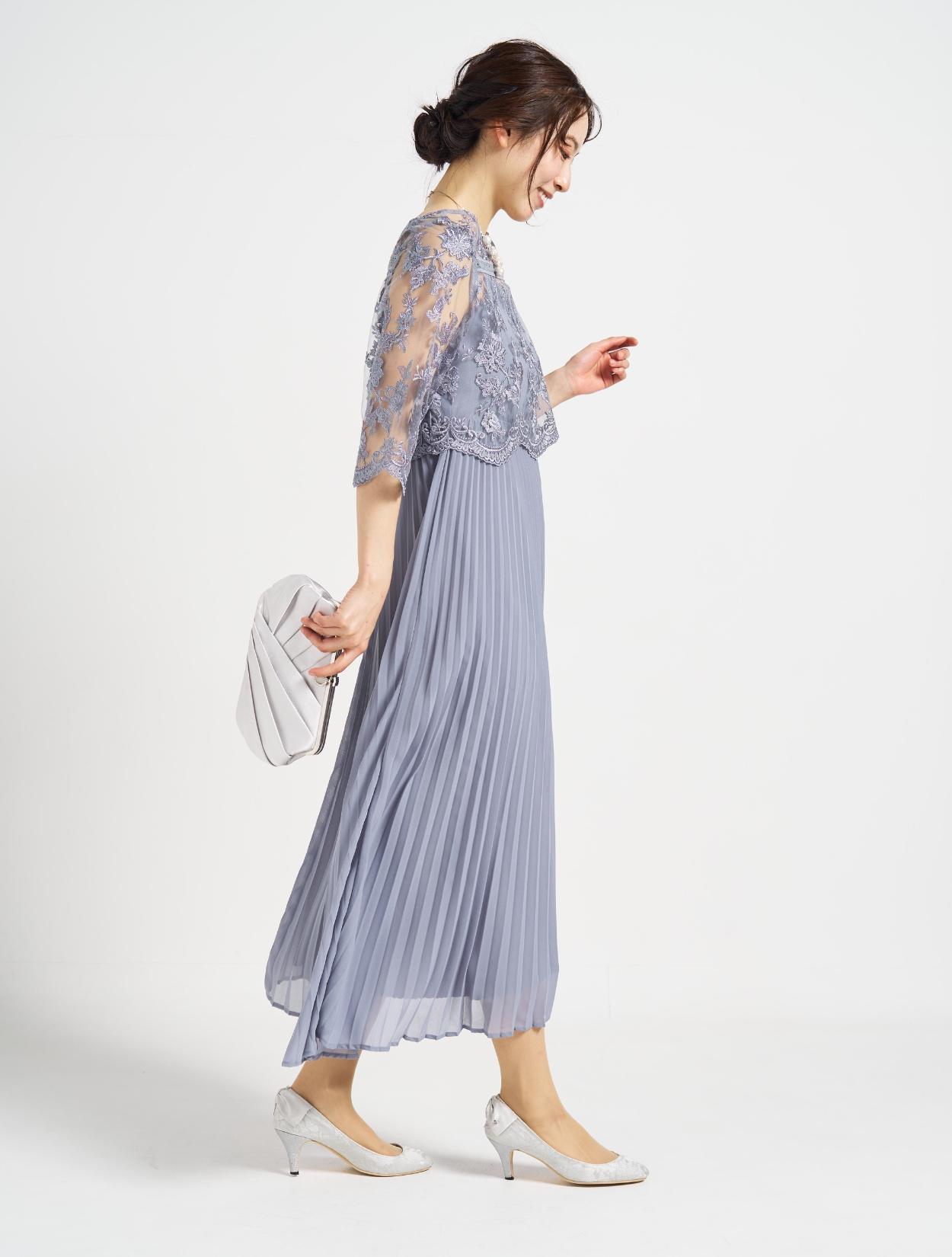 ■プリーツキャミドレスに刺繍レースのTOPSを合わせた上品な1着。