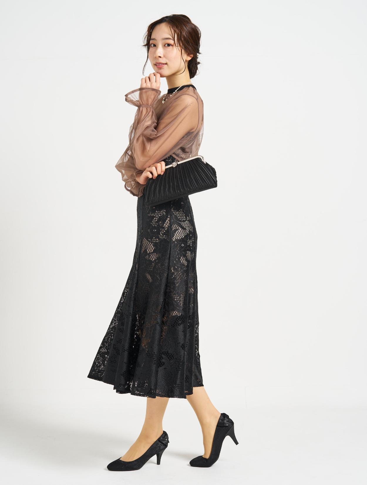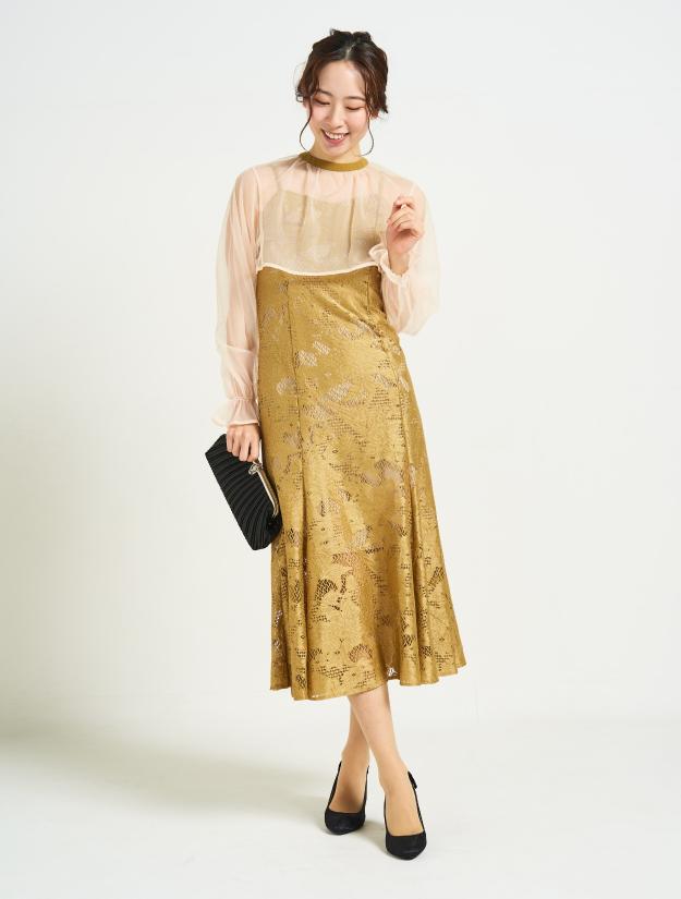 ■ジャガードレースのマーメイドドレスと2wayのシフォンブラウスの華やかなドレスです。