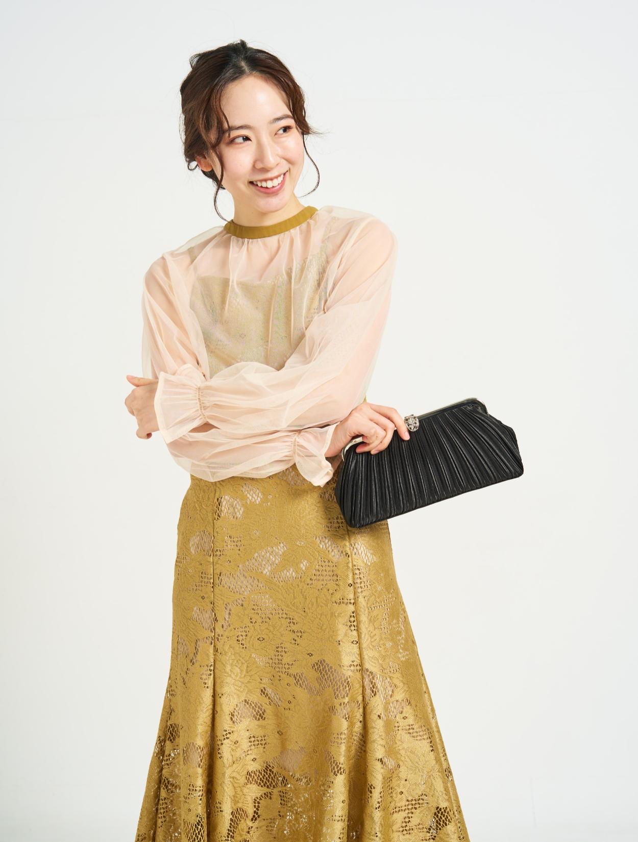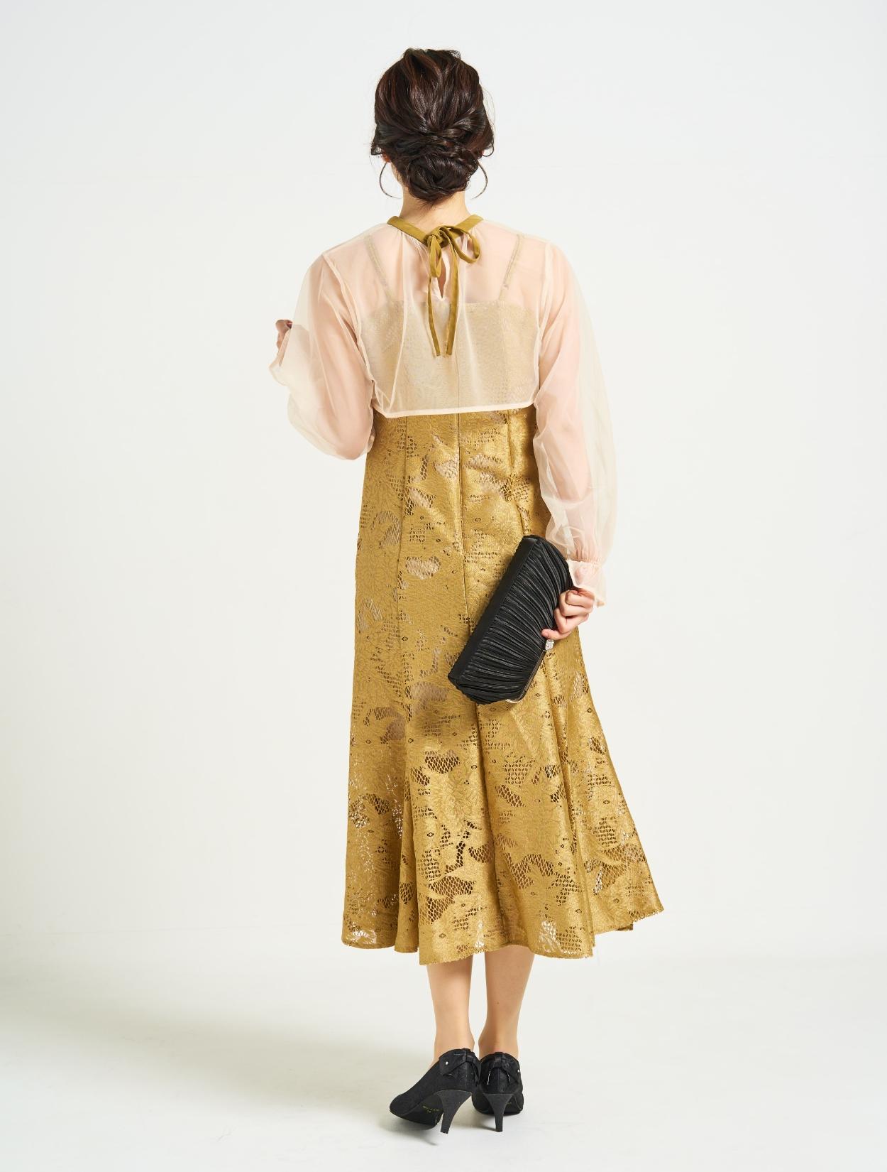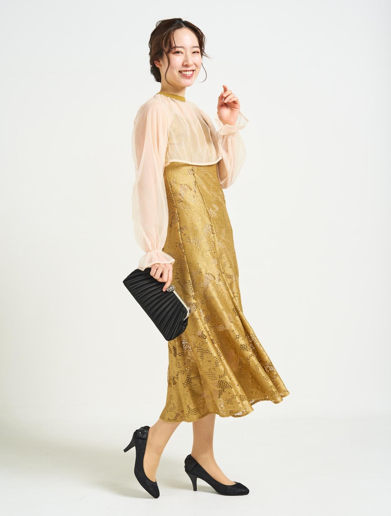 ■ジャガードレースのマーメイドドレスと2wayのシフォンブラウスの華やかなドレスです。