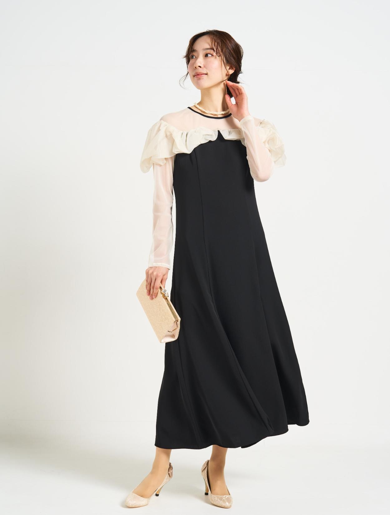■ランダムに摘まんだタックフリルが存在感のある1着