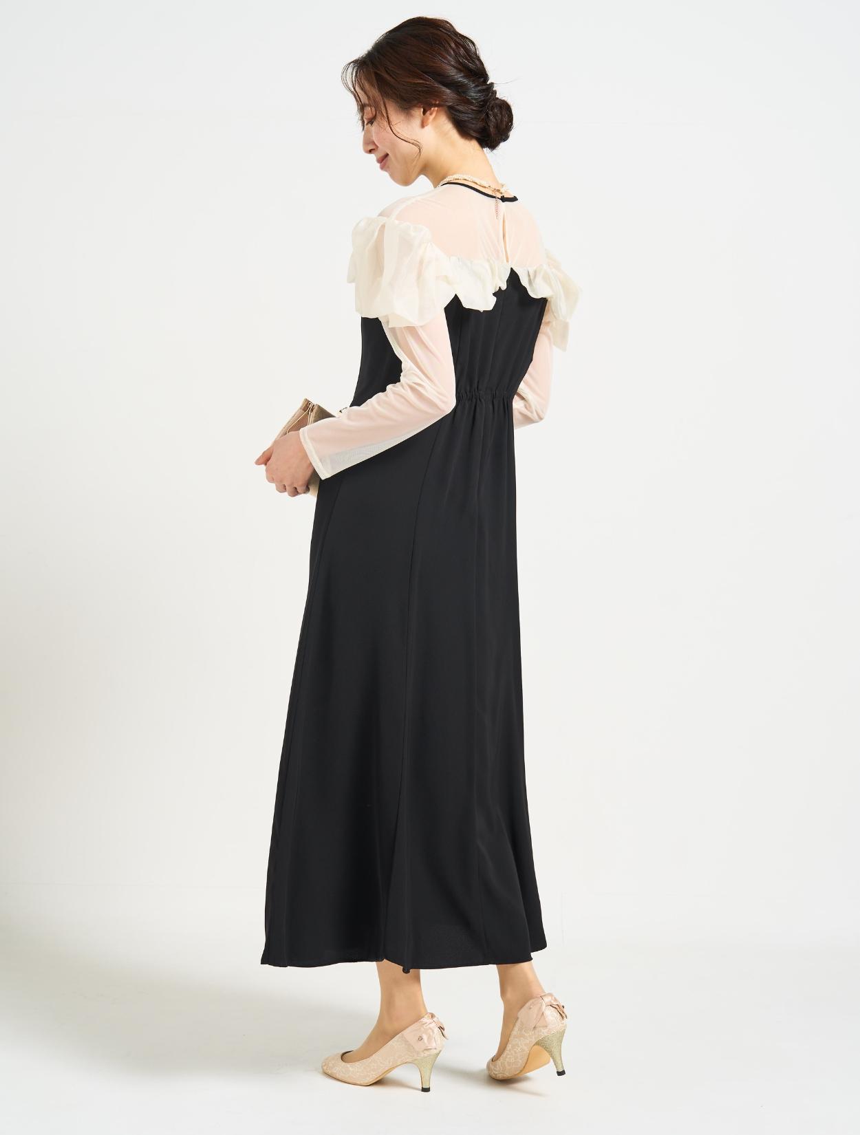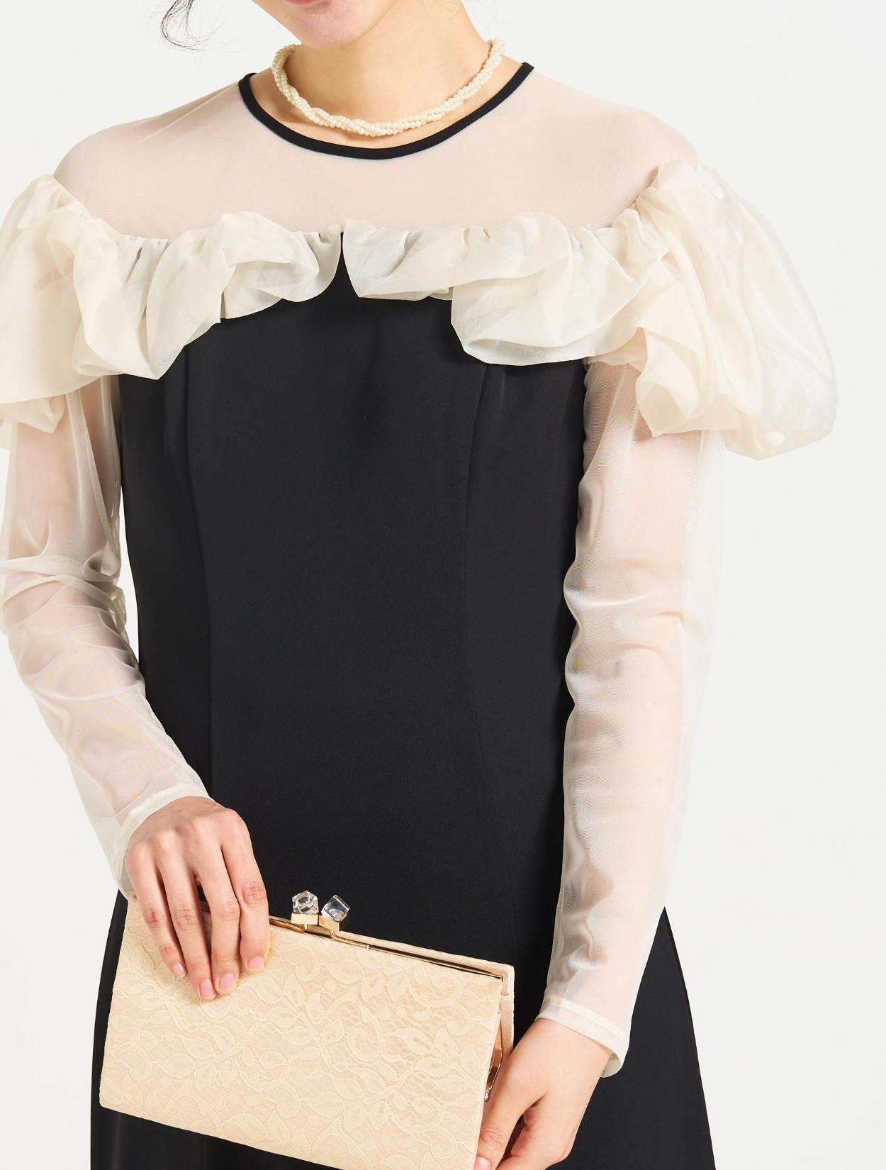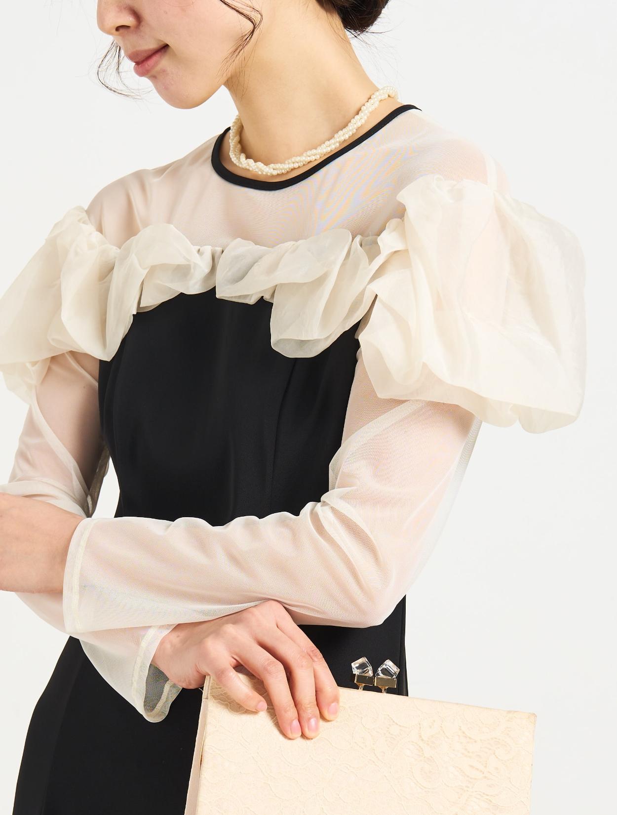 ■デコルテと袖部分はチュールを使用し、程よい透け感が綺麗な印象。