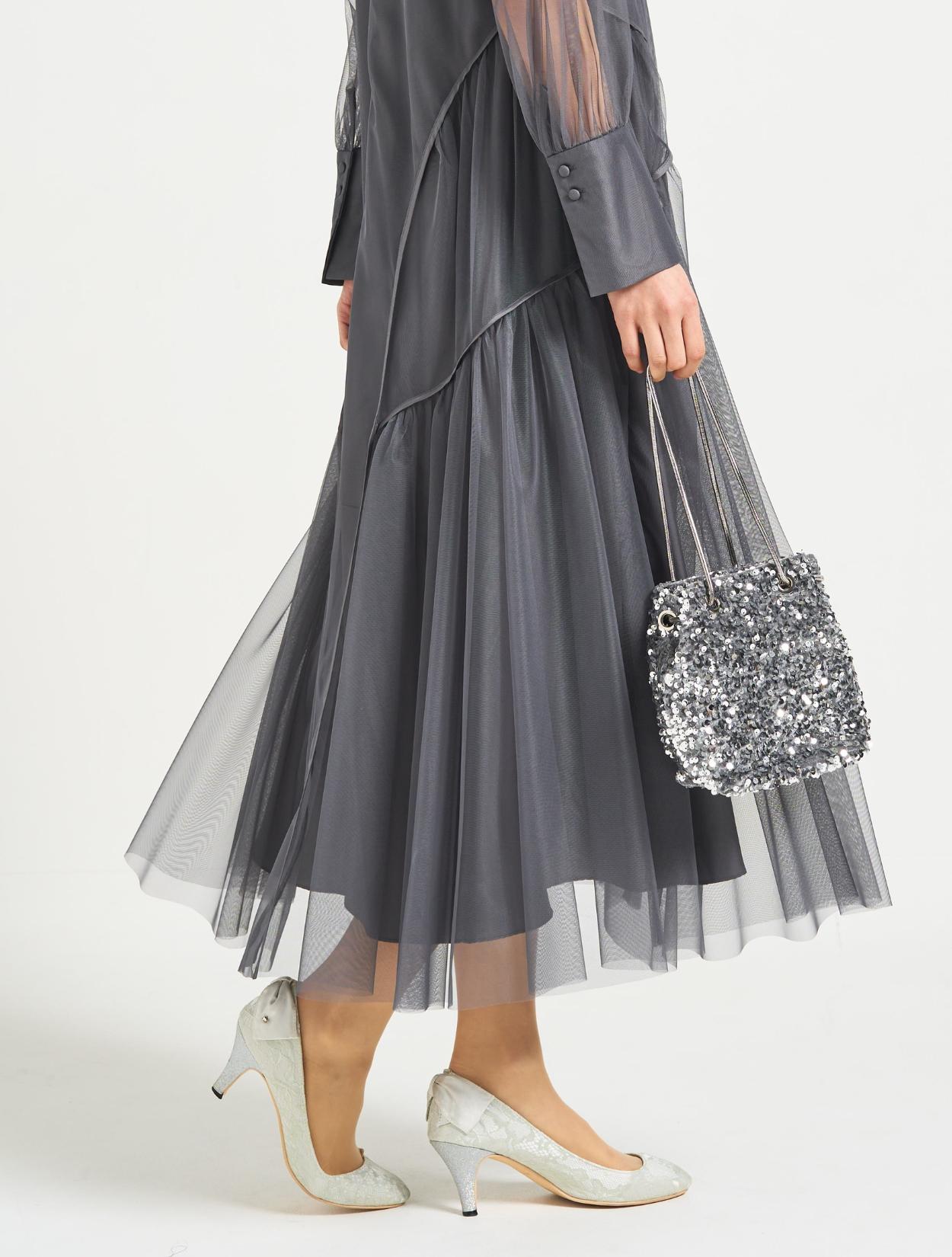 ■サテンと微光沢のチュールの重ねなので、このボリュームでも軽やかに見えます!
