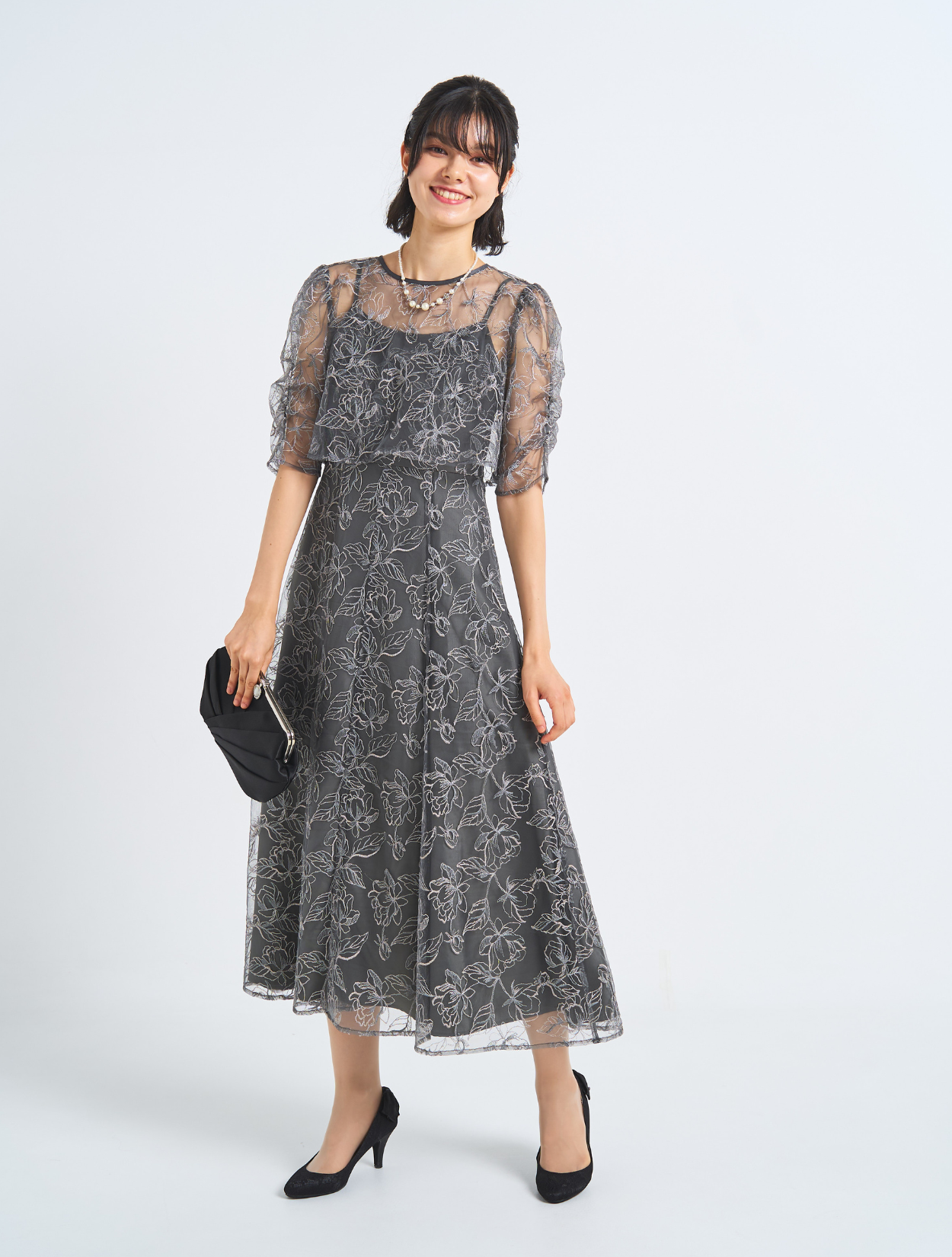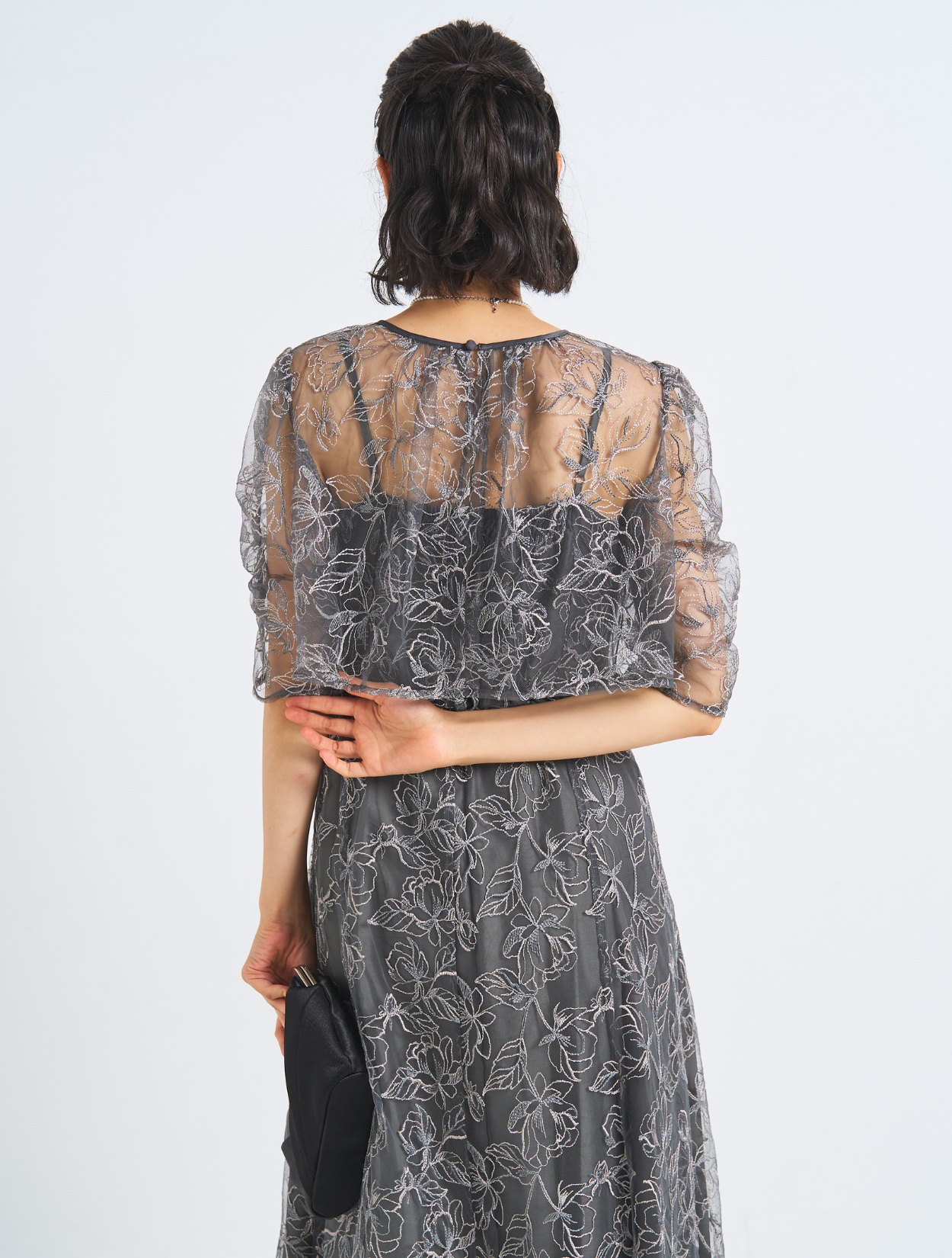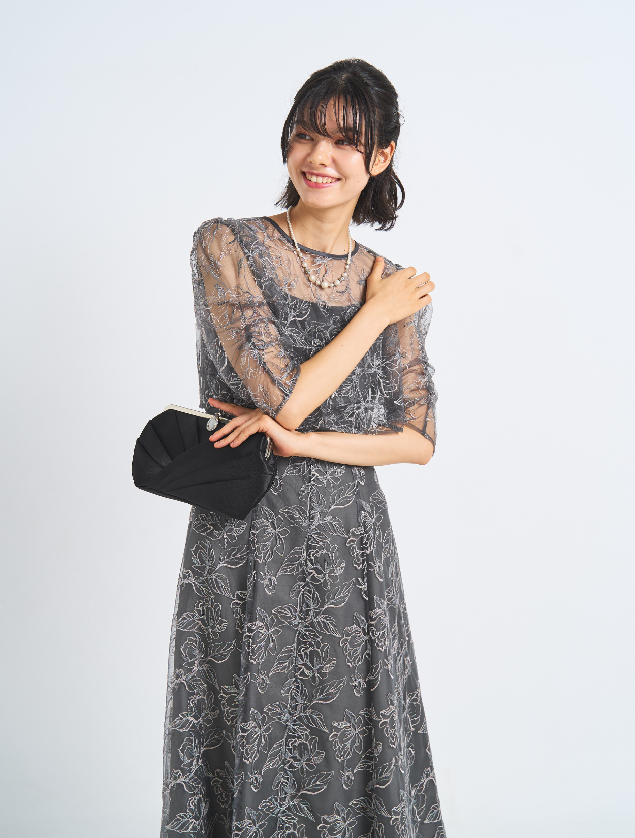 ■刺繡が引き立つしっかりめのグレー。カラードレスが苦手な方におすすめです