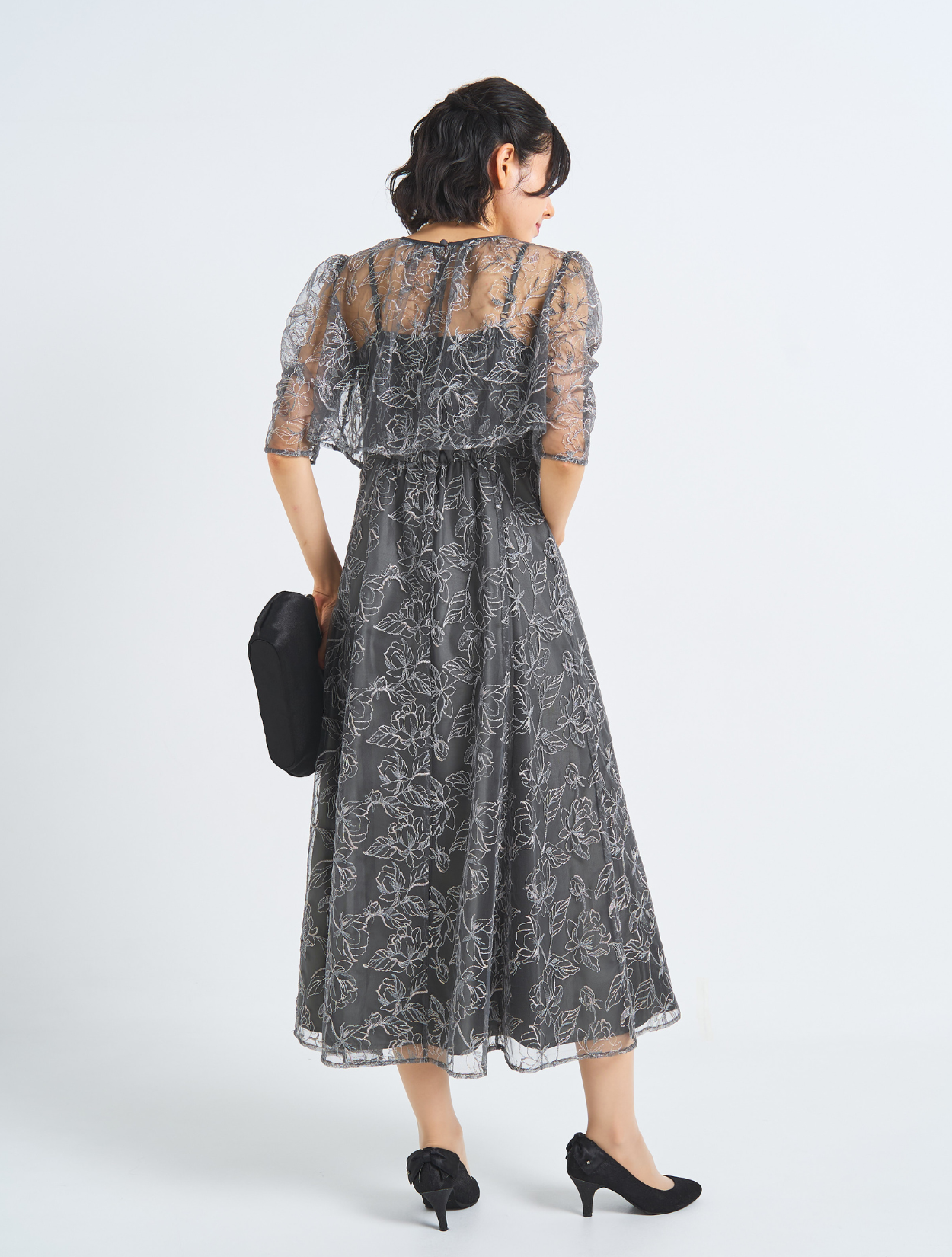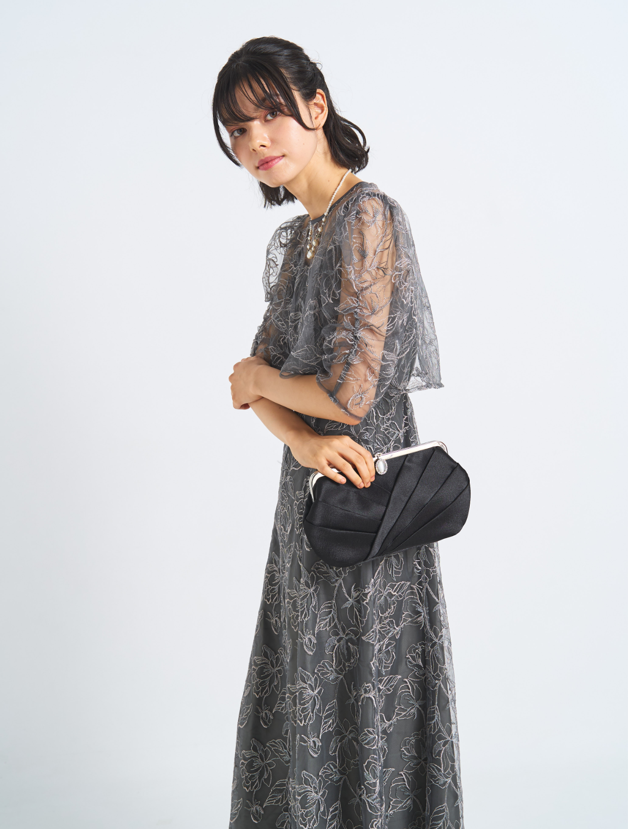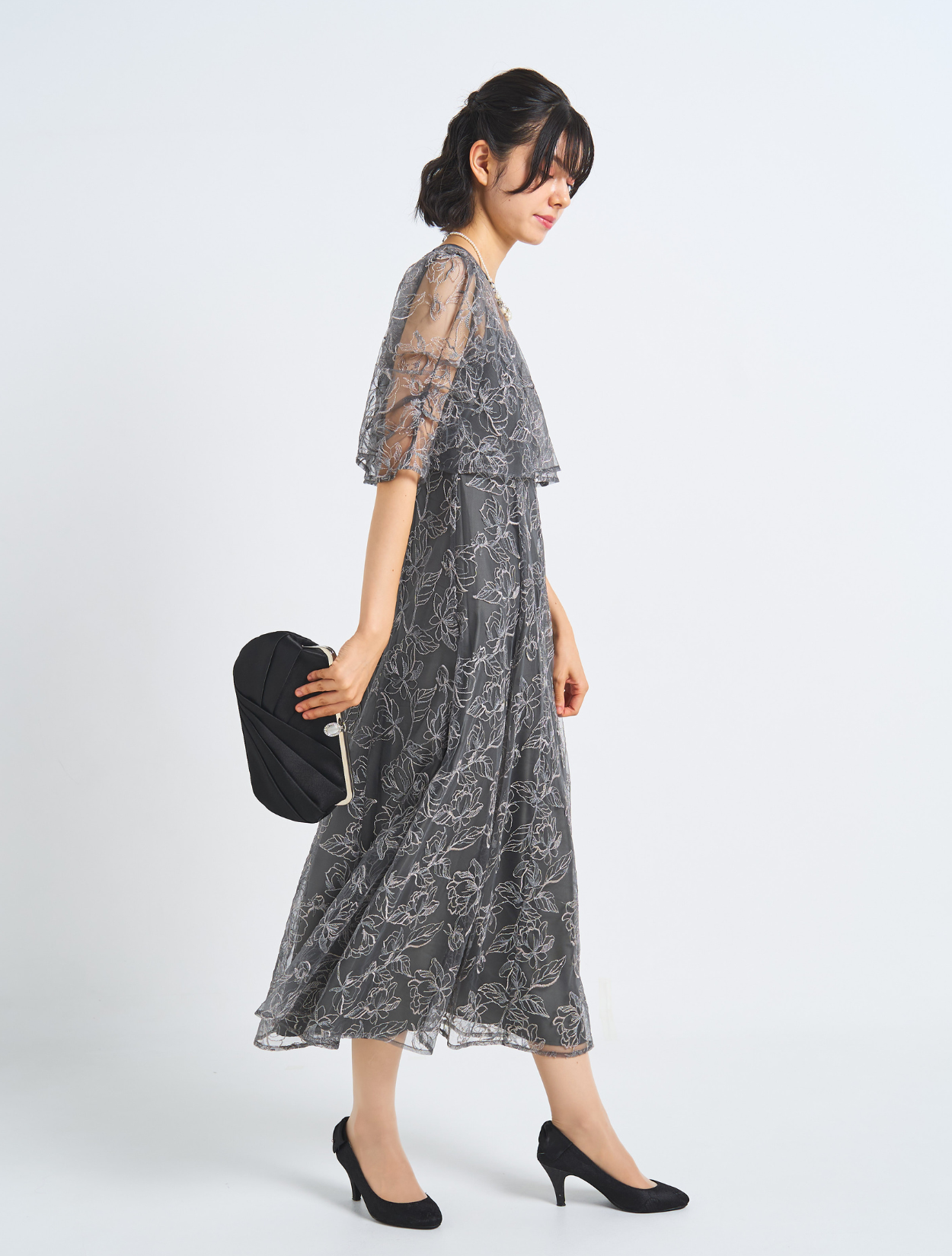 ■刺繡が引き立つしっかりめのグレー。カラードレスが苦手な方におすすめです