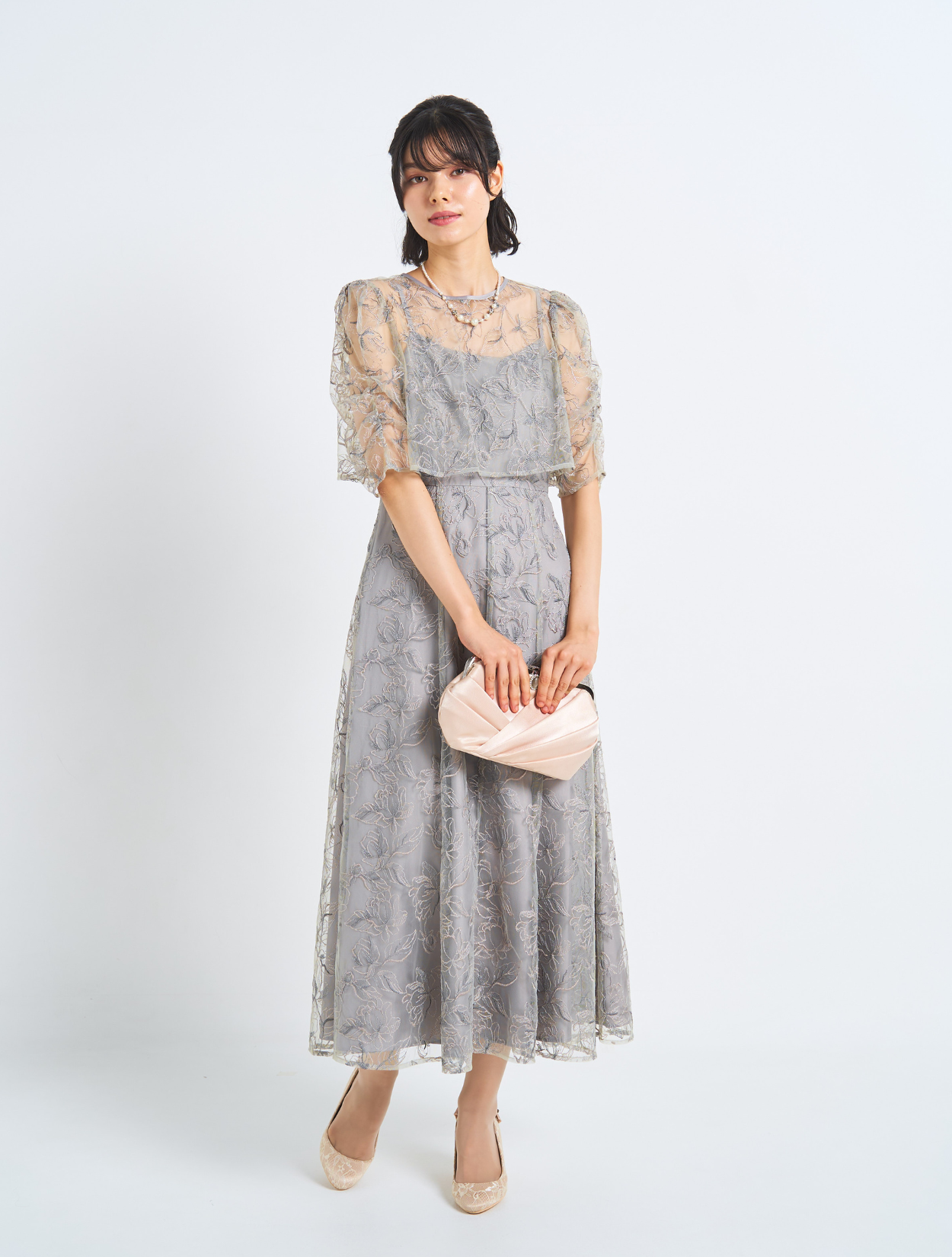 ■トレンドのフラワー刺繡&レイヤードスタイルのドレス。