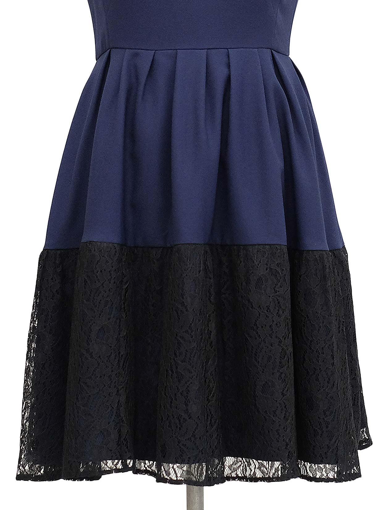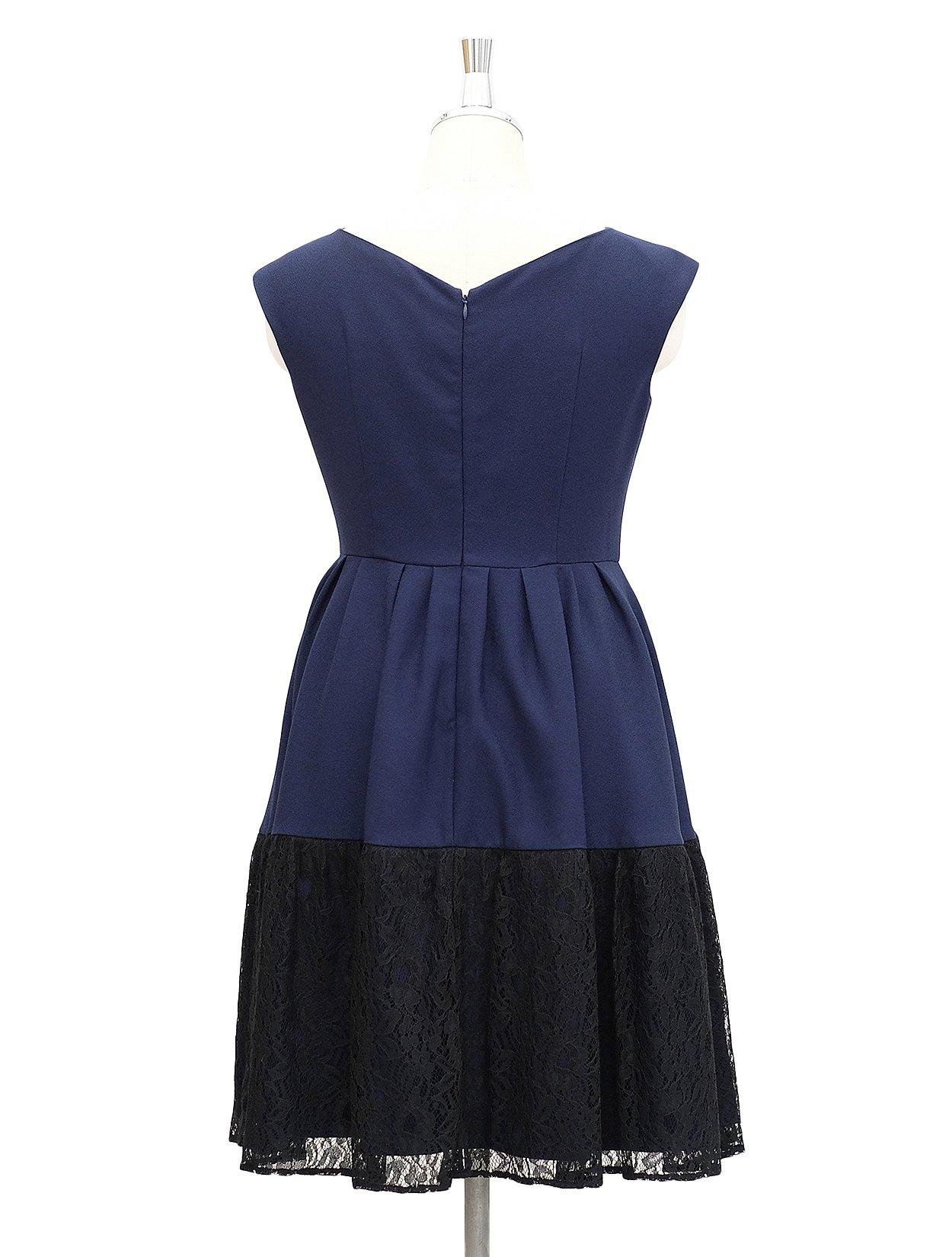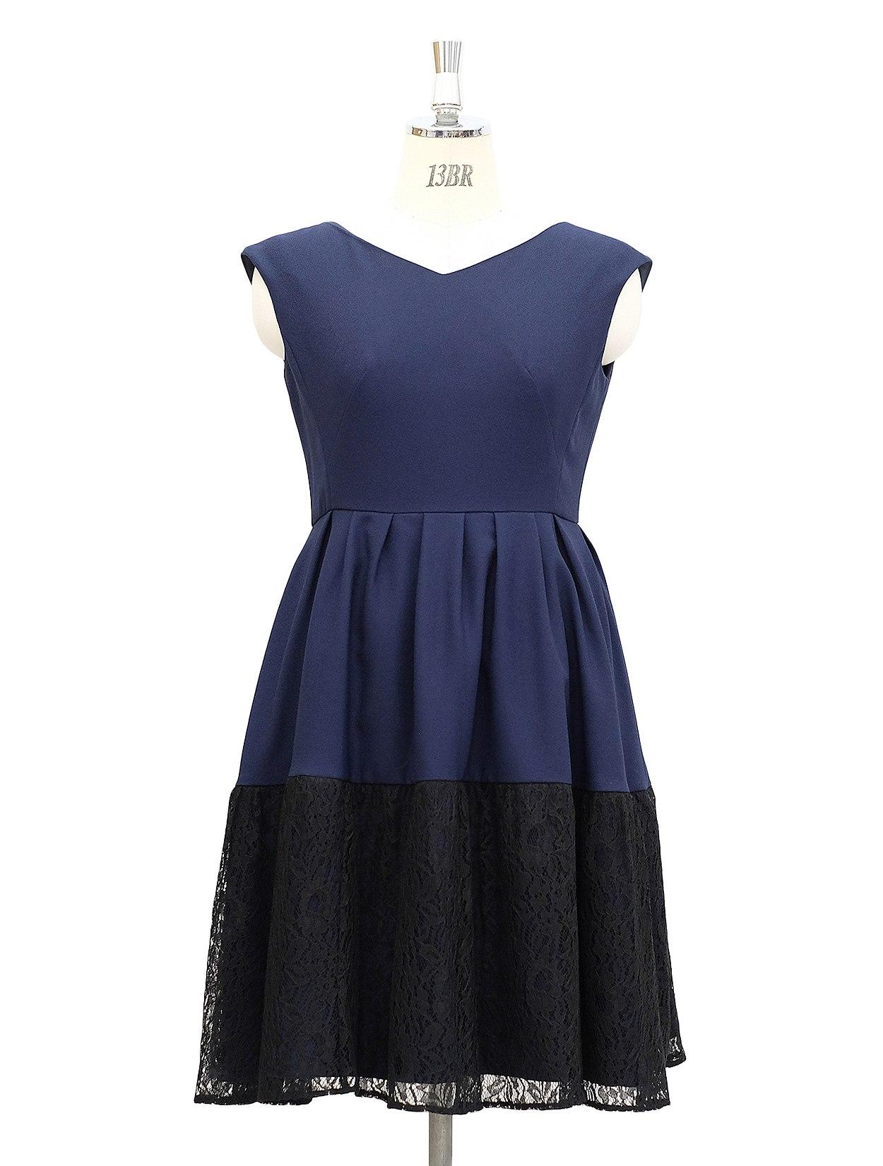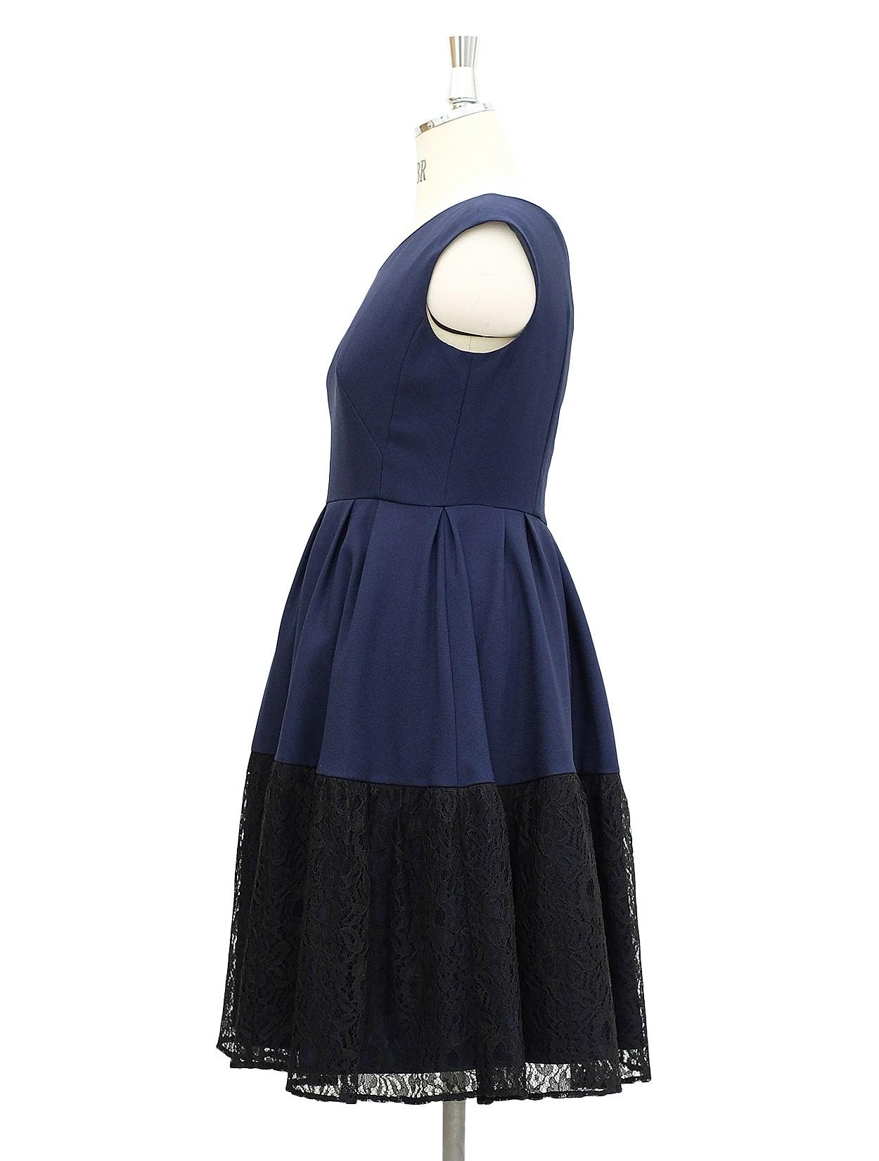 【大きいサイズ LL】裾バイカラーレースドレス(ネイビー)