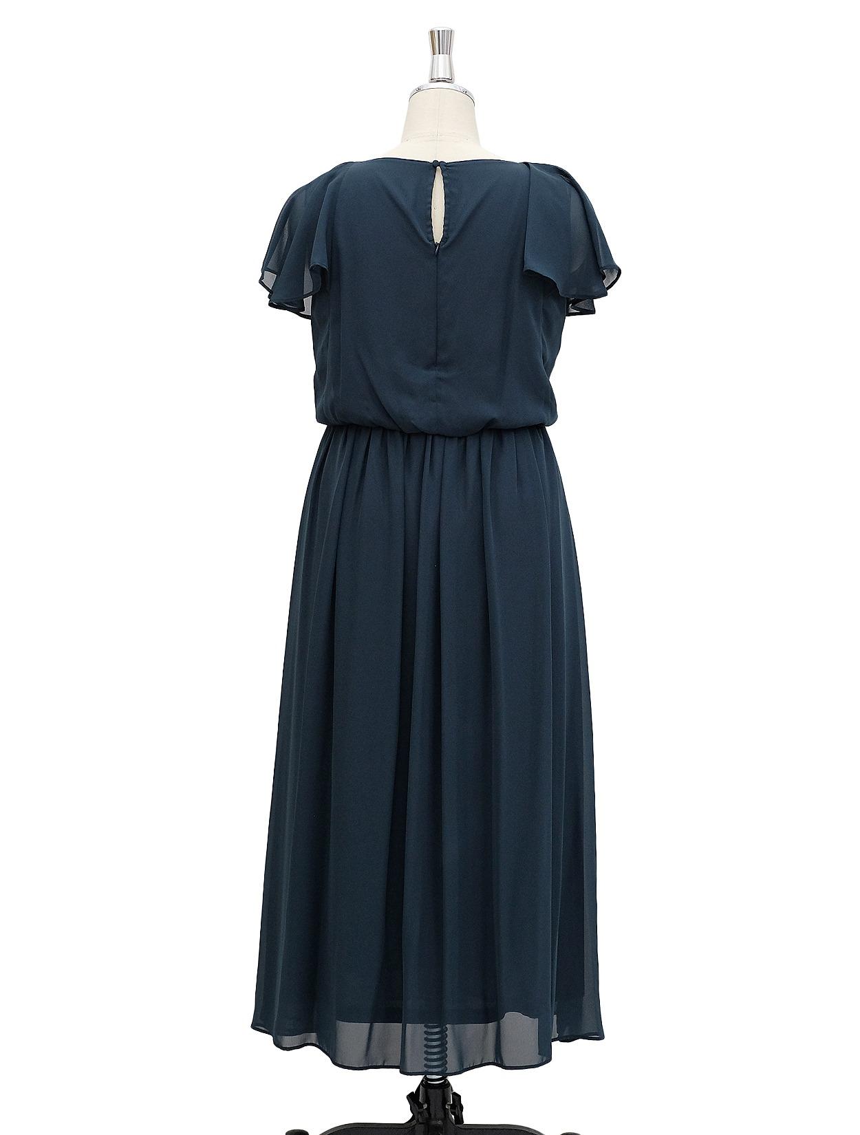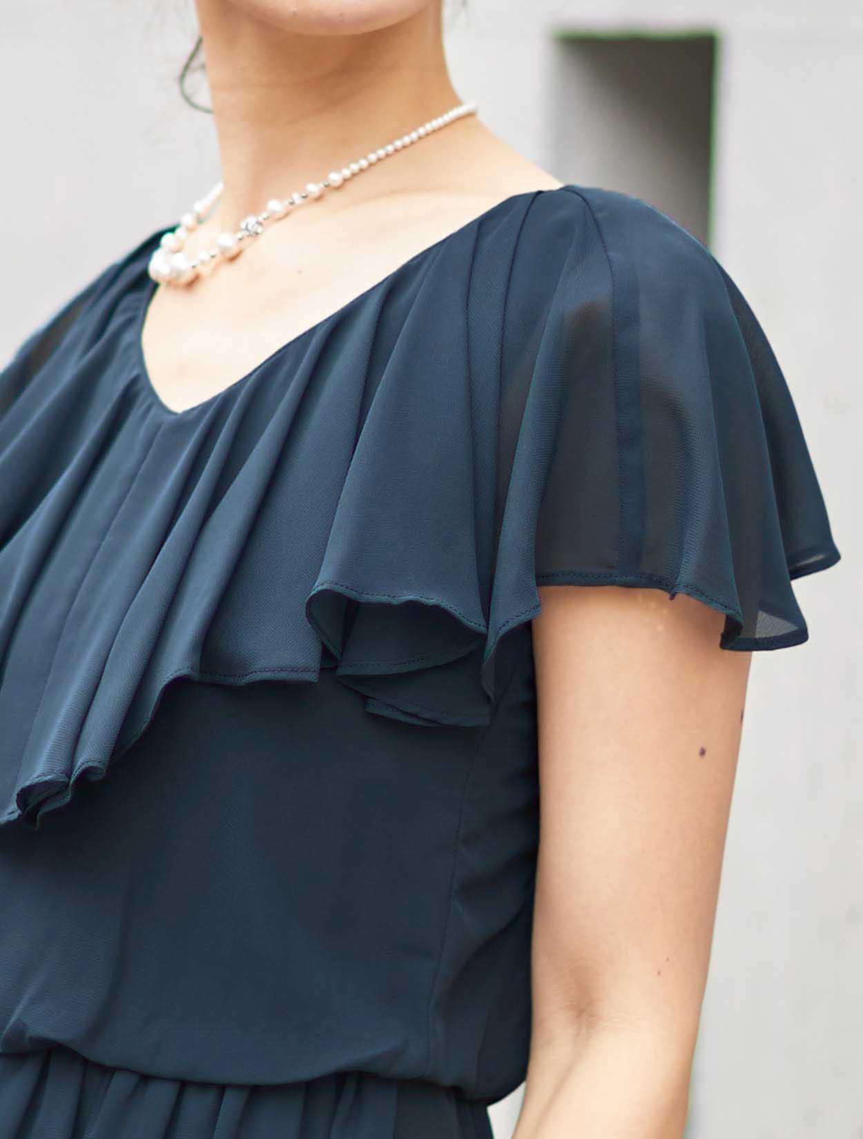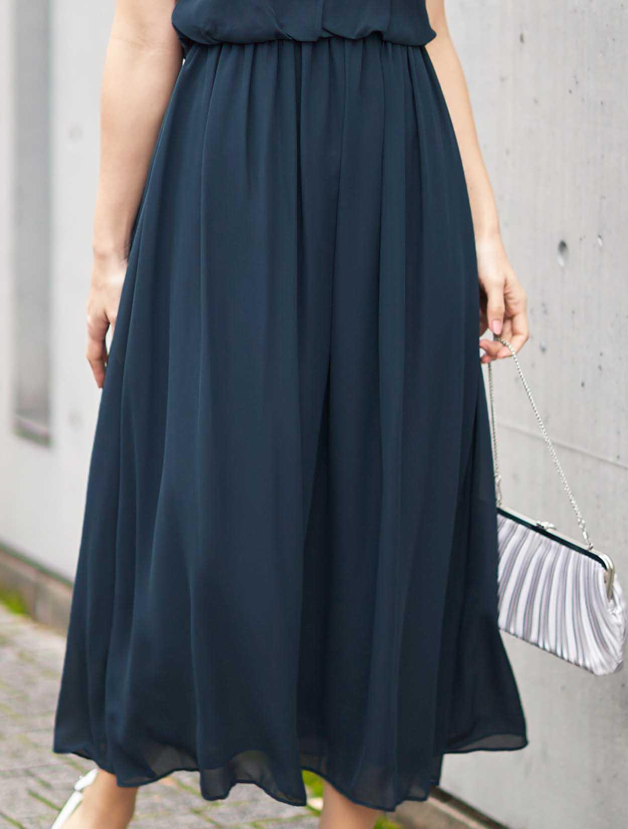 ■着丈が120cm以上ある、ロングドレス。軽いシフォン素材で歩く度に動きが出てエレガントな一着です。