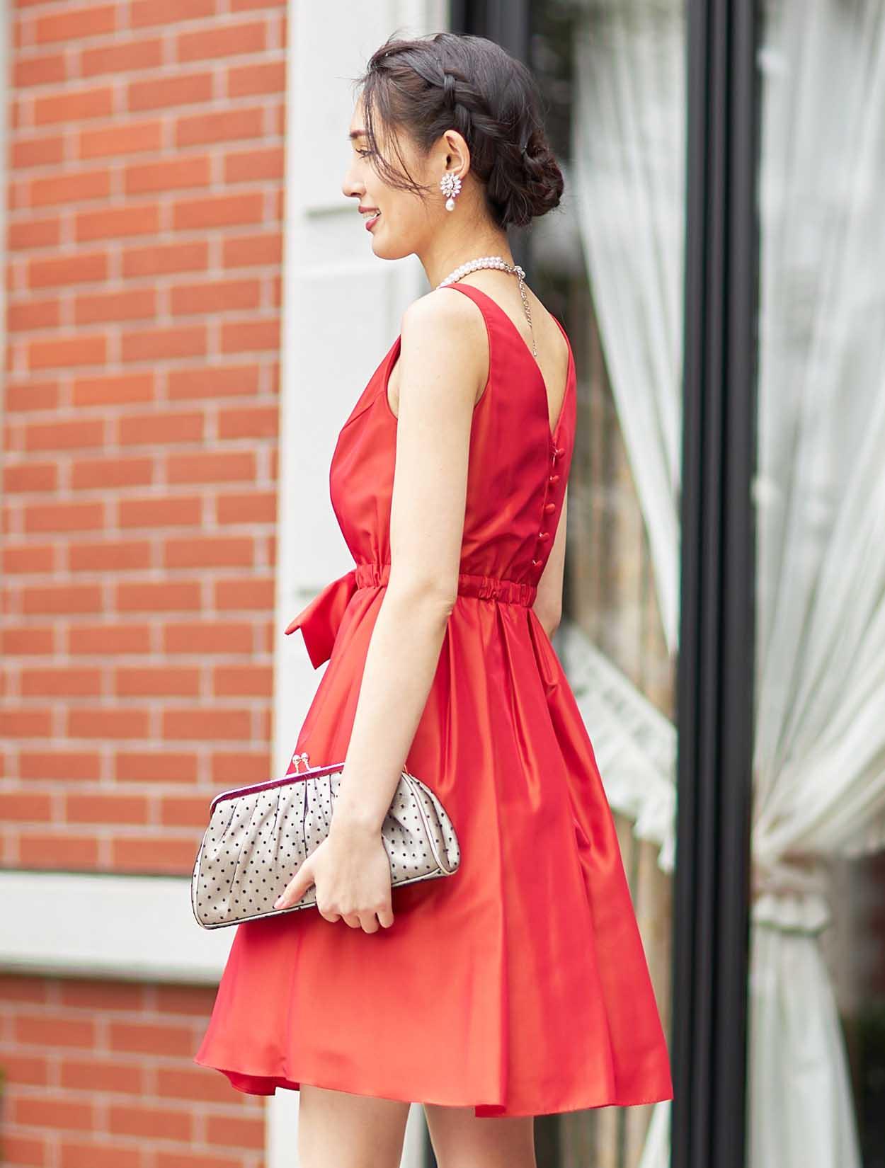 ■背中のⅤカットとボタンの飾りが可愛いデザインです。