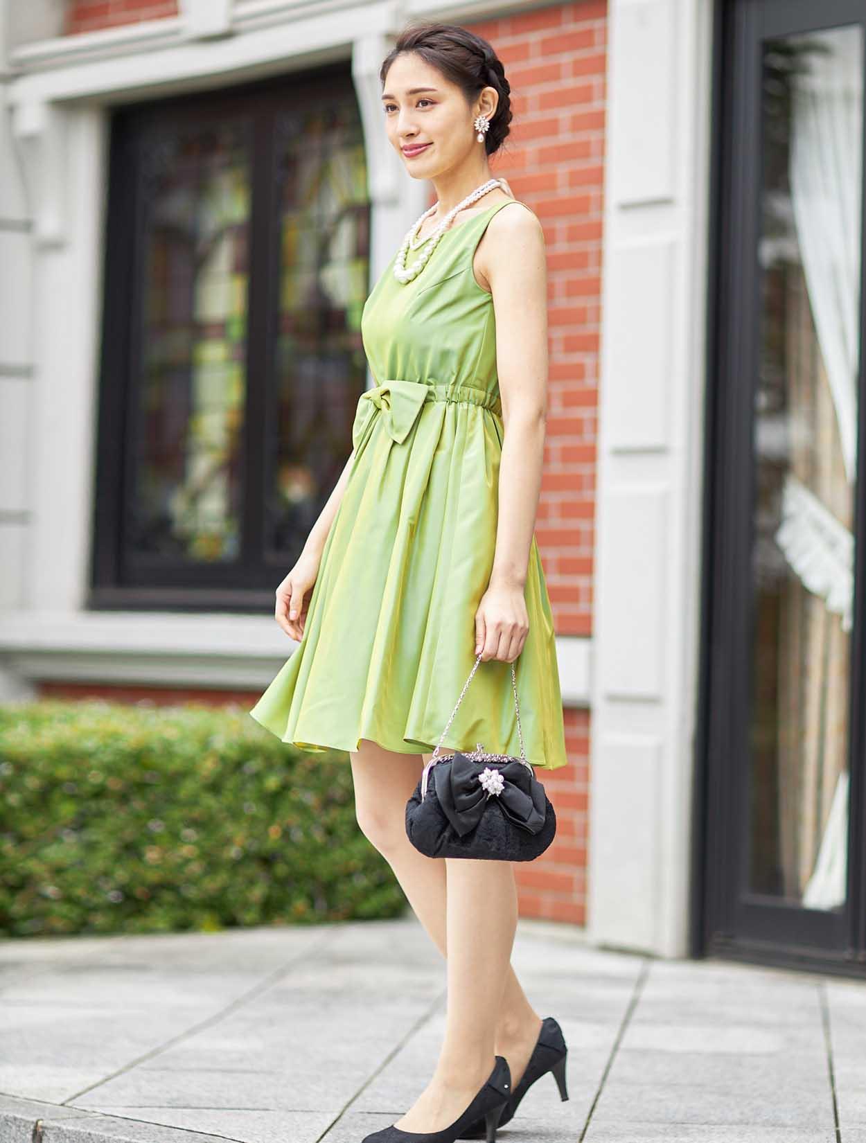 ■ライムイエローのドレスは華やかで、周りと被りたくない方にもおすすめです。
