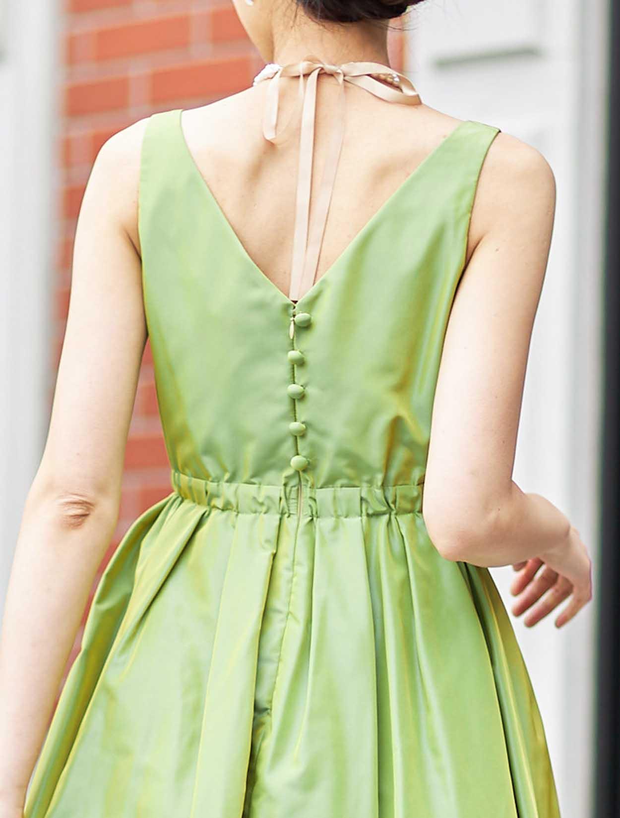 ■背中のⅤカットと飾りのボタンが可愛いデザインのドレスです。