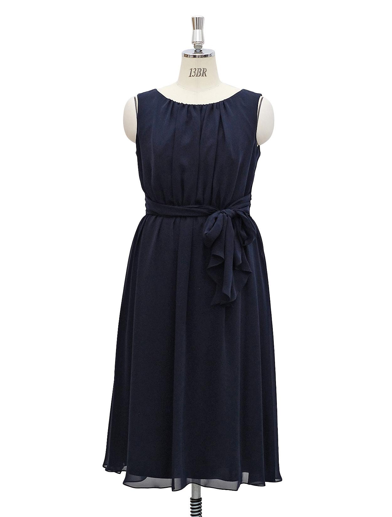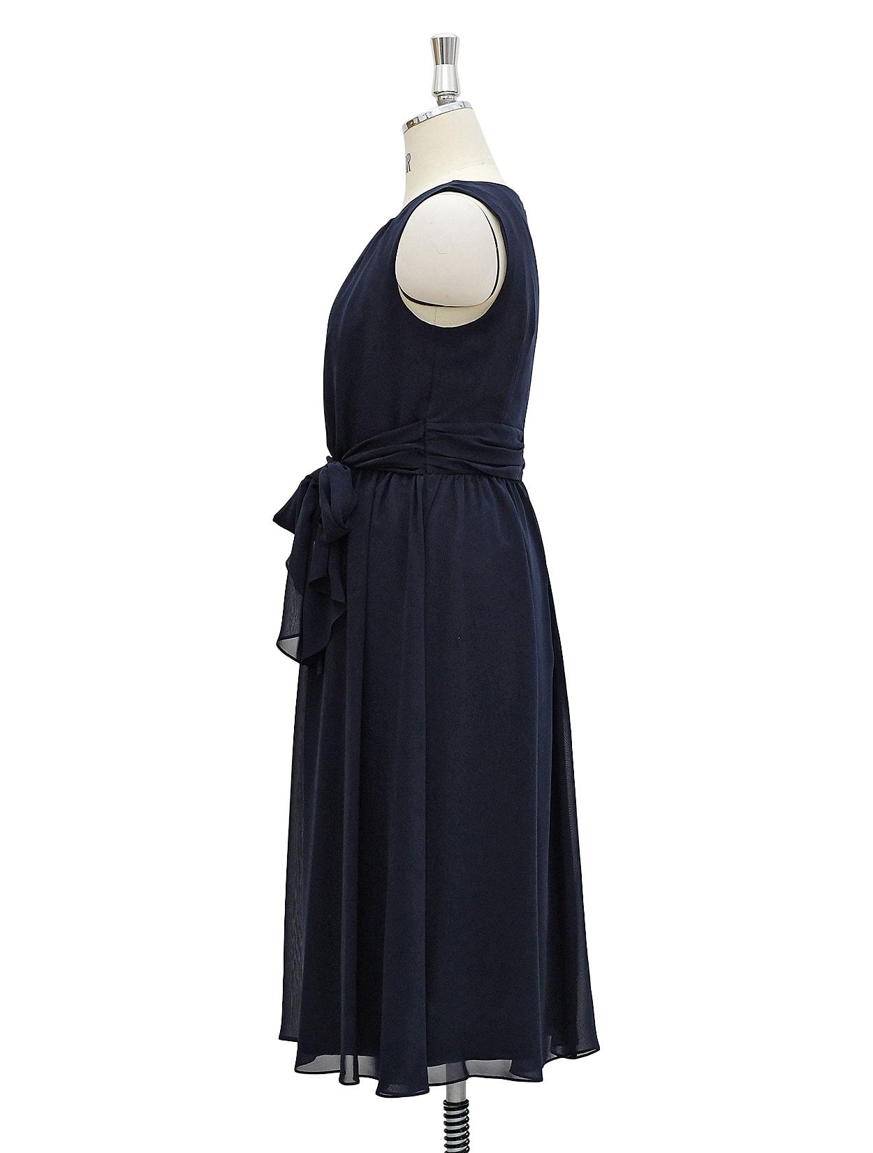 ■濃紺でシンプルなデザインですが、軽さのあるシフォンで作られたエレガントなドレスです。