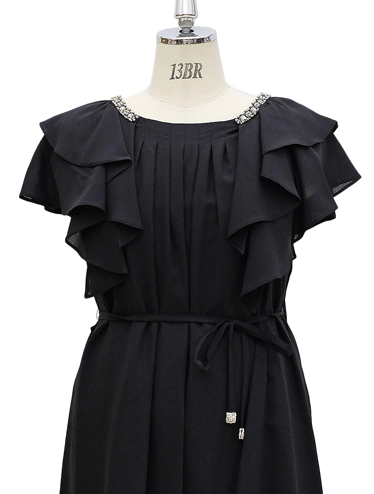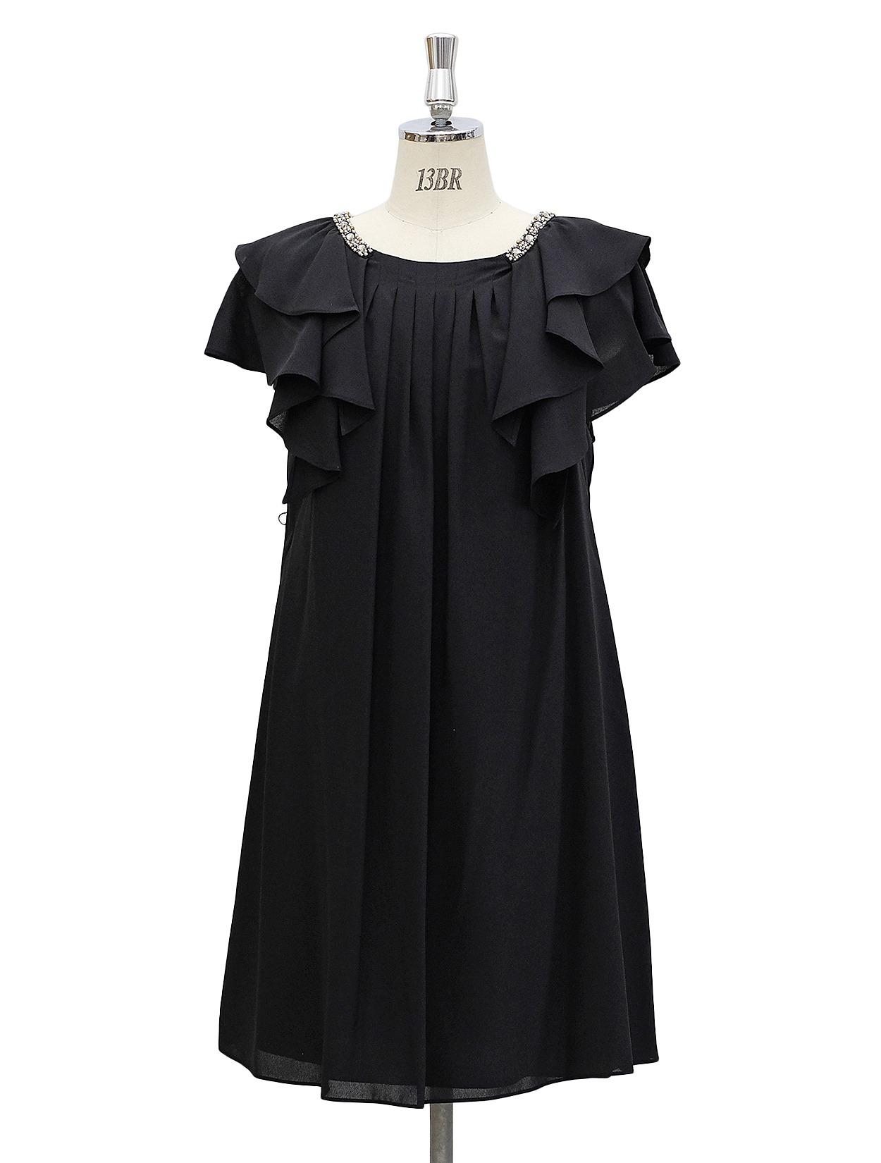 ■両肩に施されたビジューがブラックドレスを華やかにしてくれます。