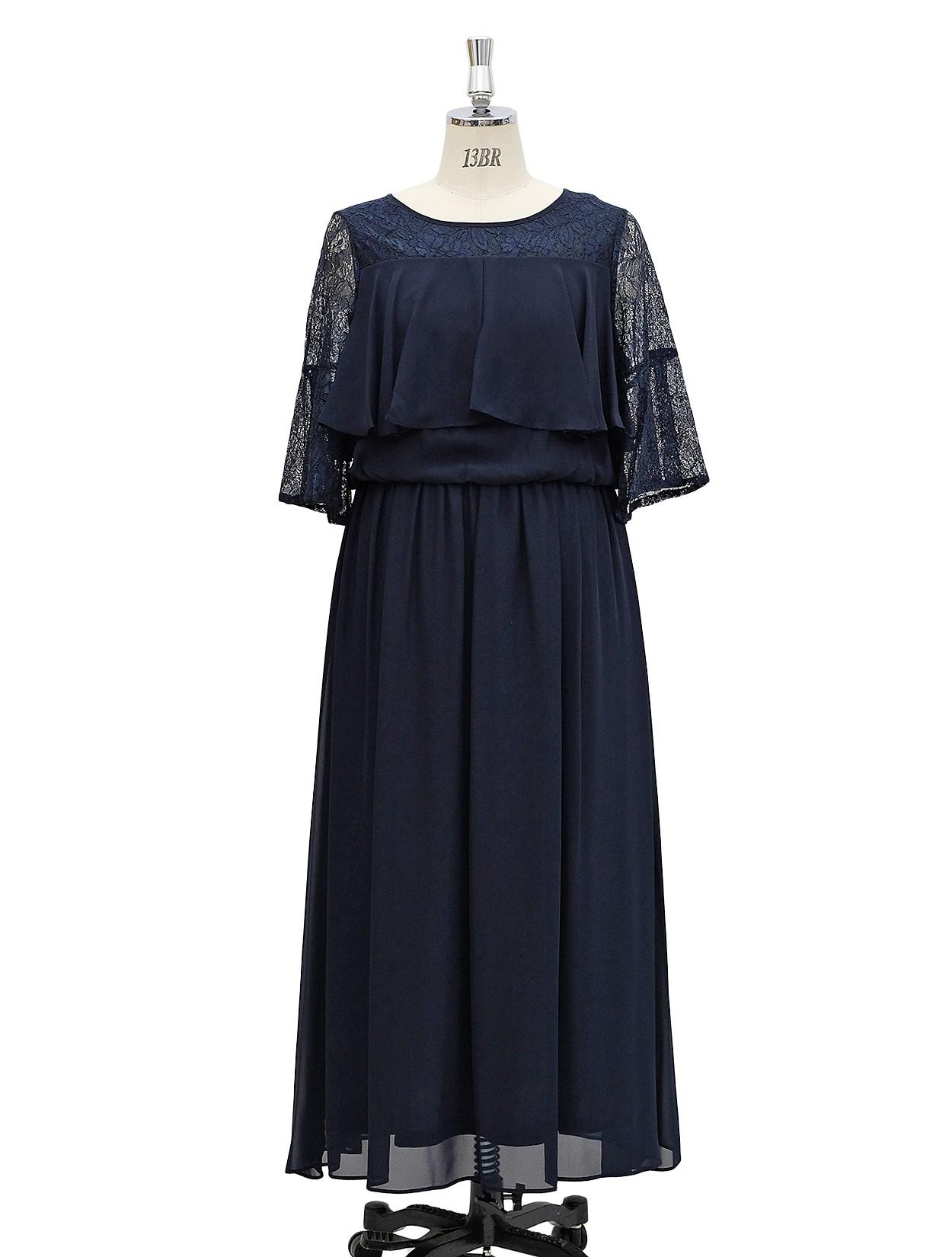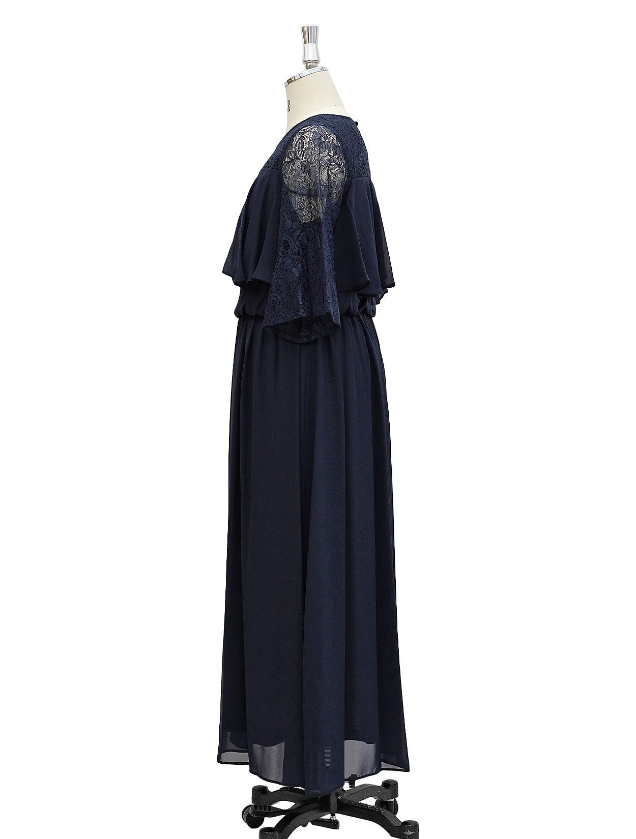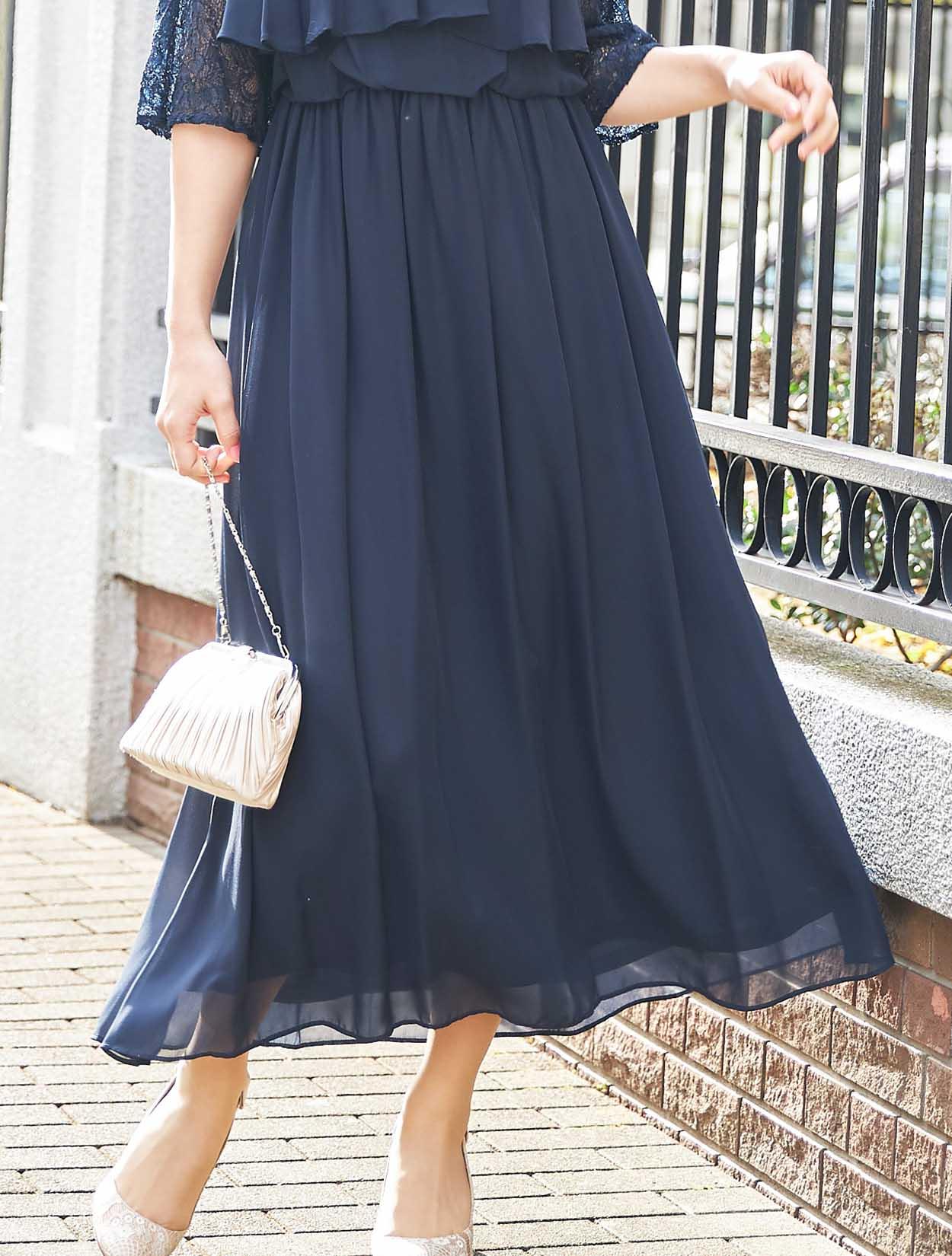 ■20代の方から40代の方まで、幅広く人気のあるネイビーのロングドレスです。