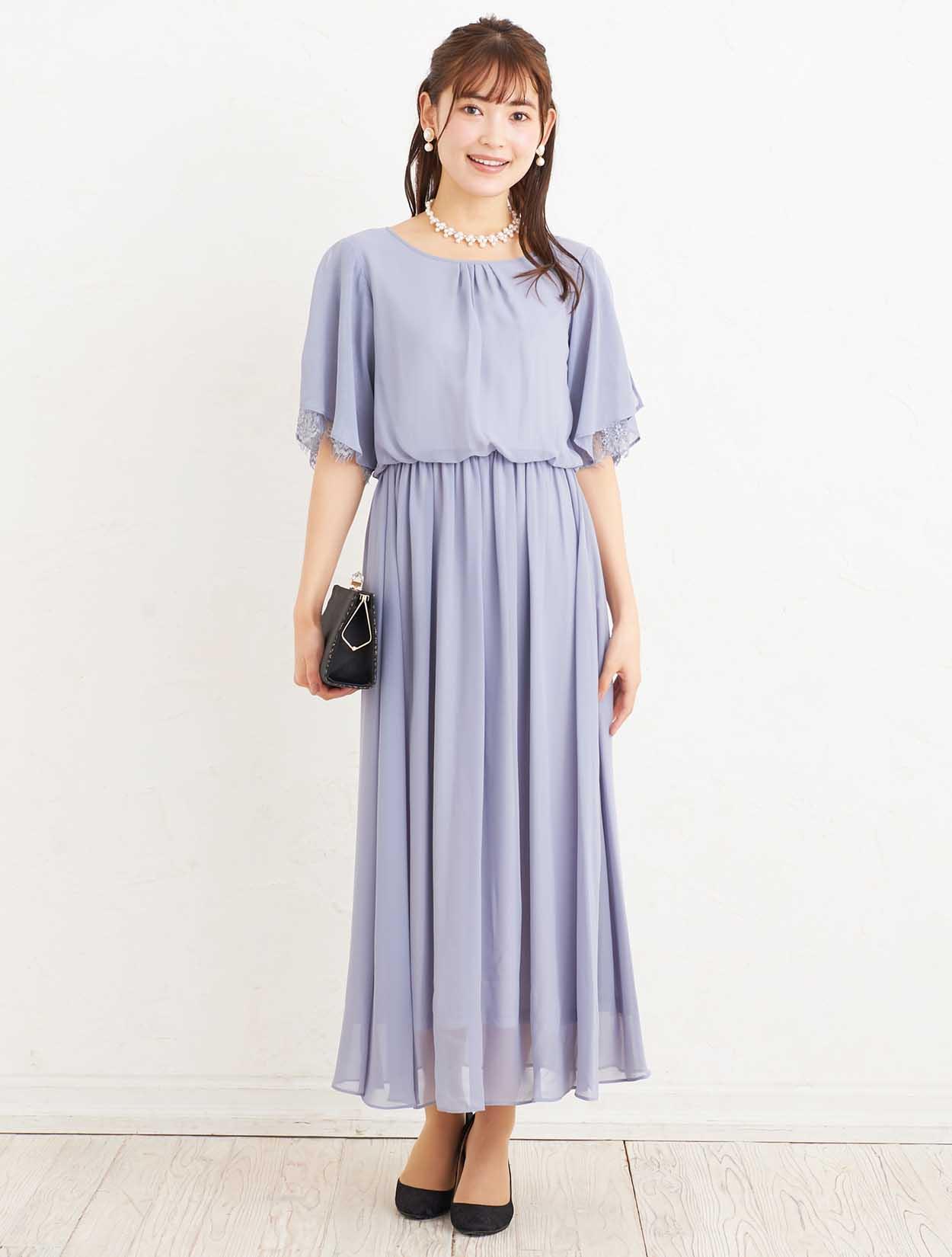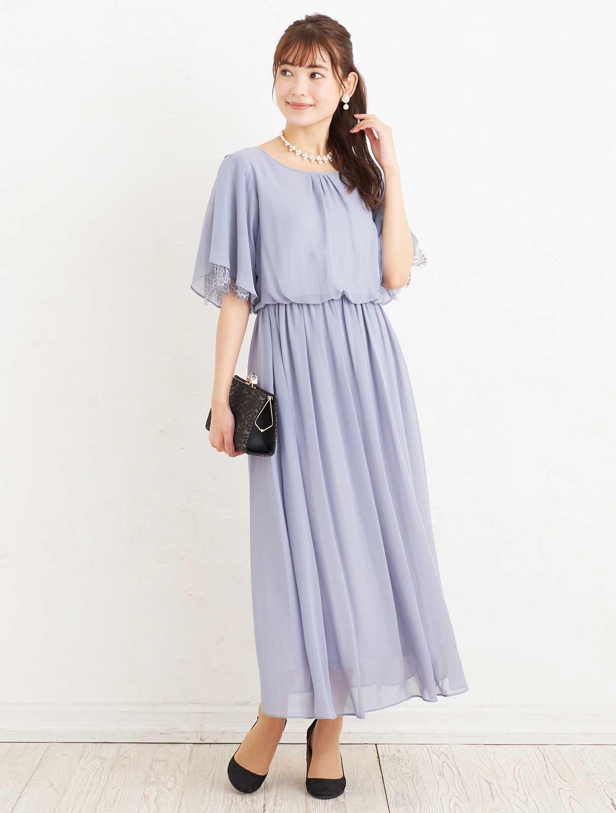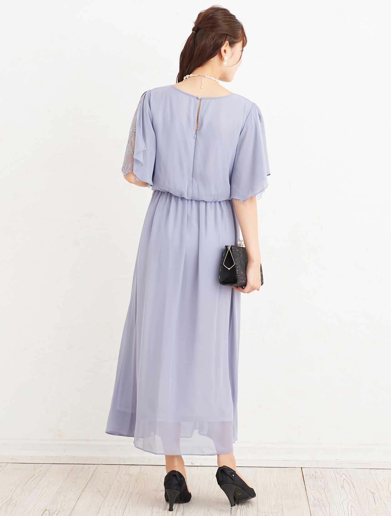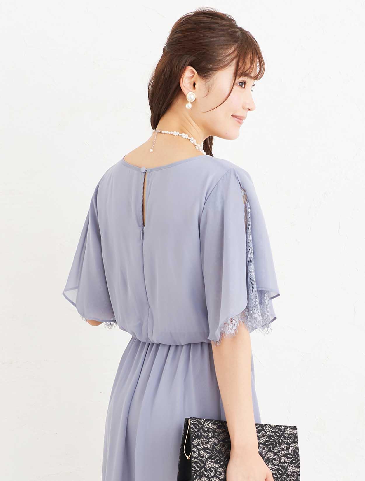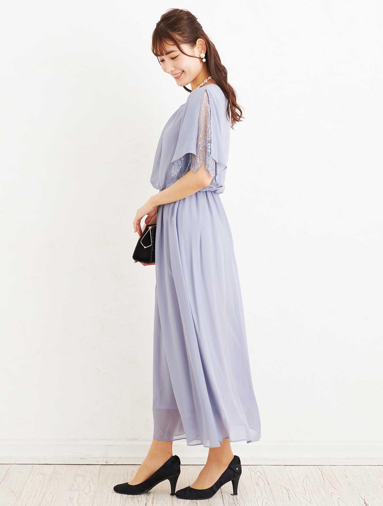 ■お袖に入ったスリットからのぞく、さり気ないレース使いが上品なロングドレス。
