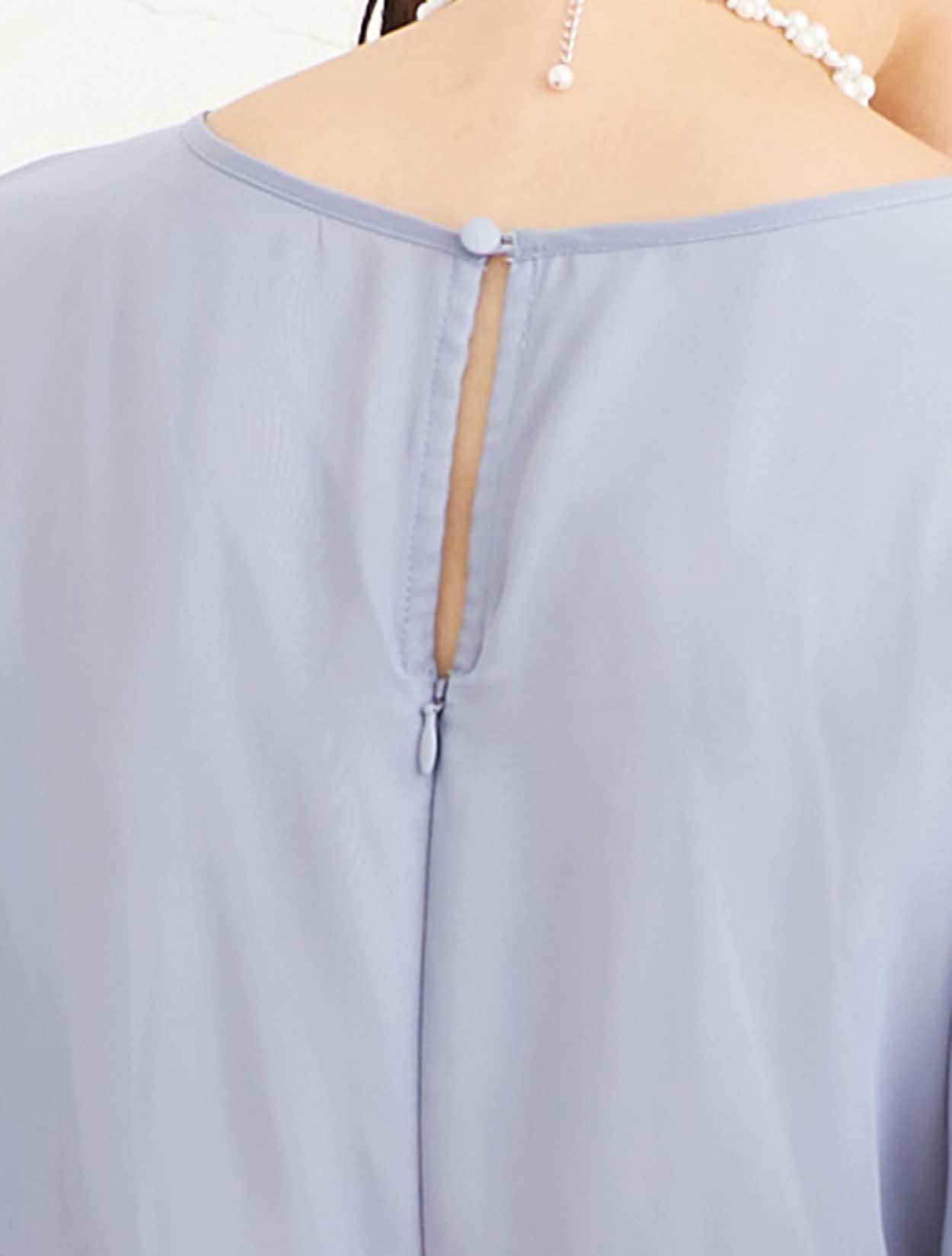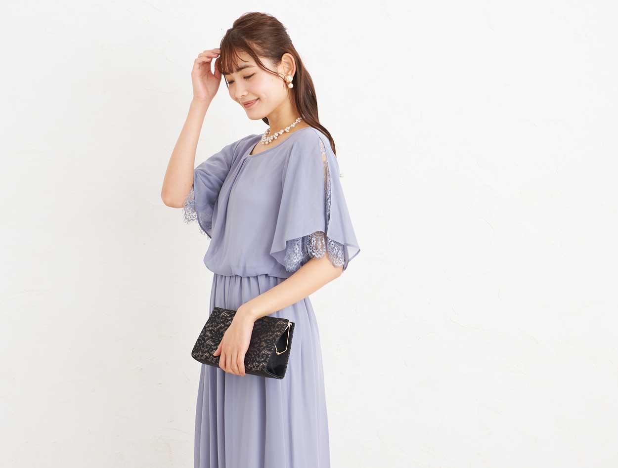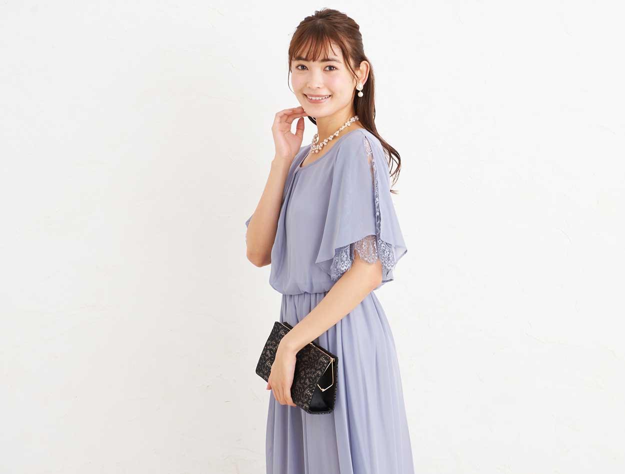 ■サックスブルーの様なライトグレーのカラーは、明るく爽やかな印象で、挑戦しやすいカラードレスです。