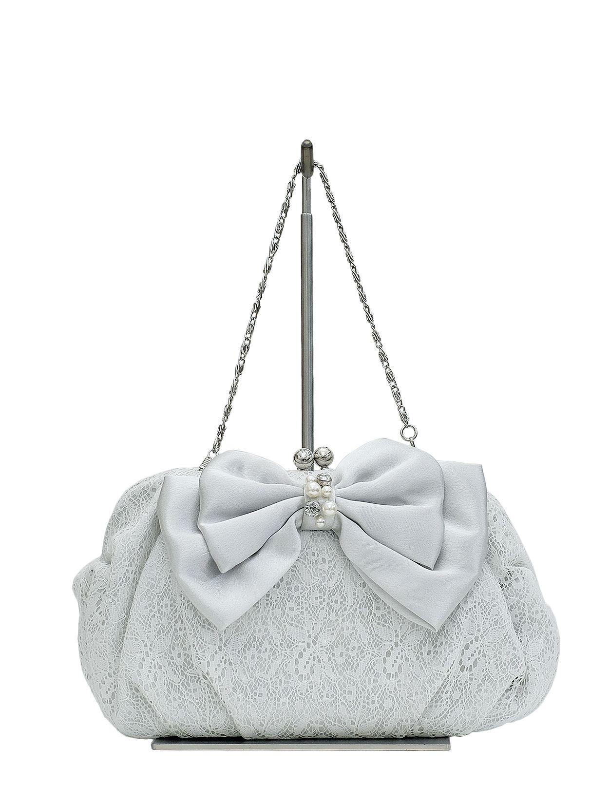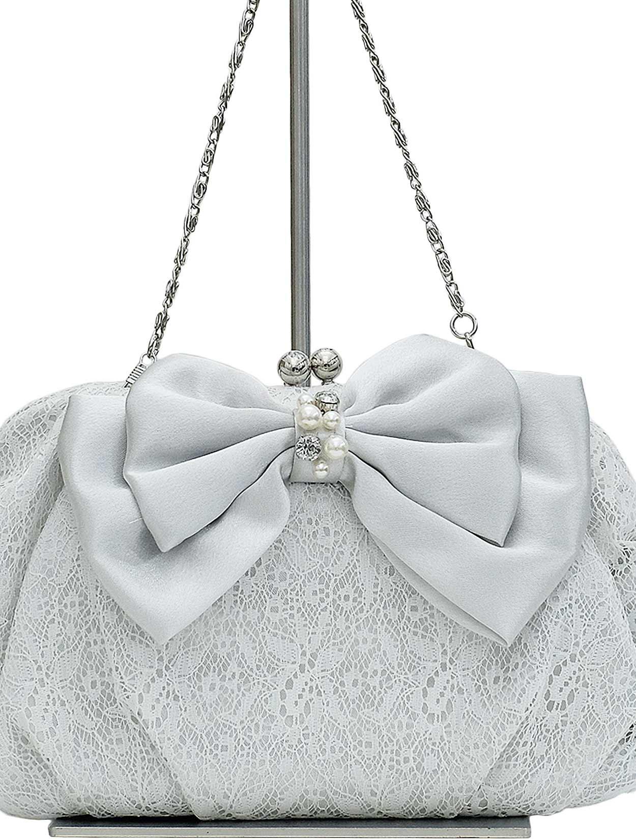 レースリボンがま口バッグ(シルバー)