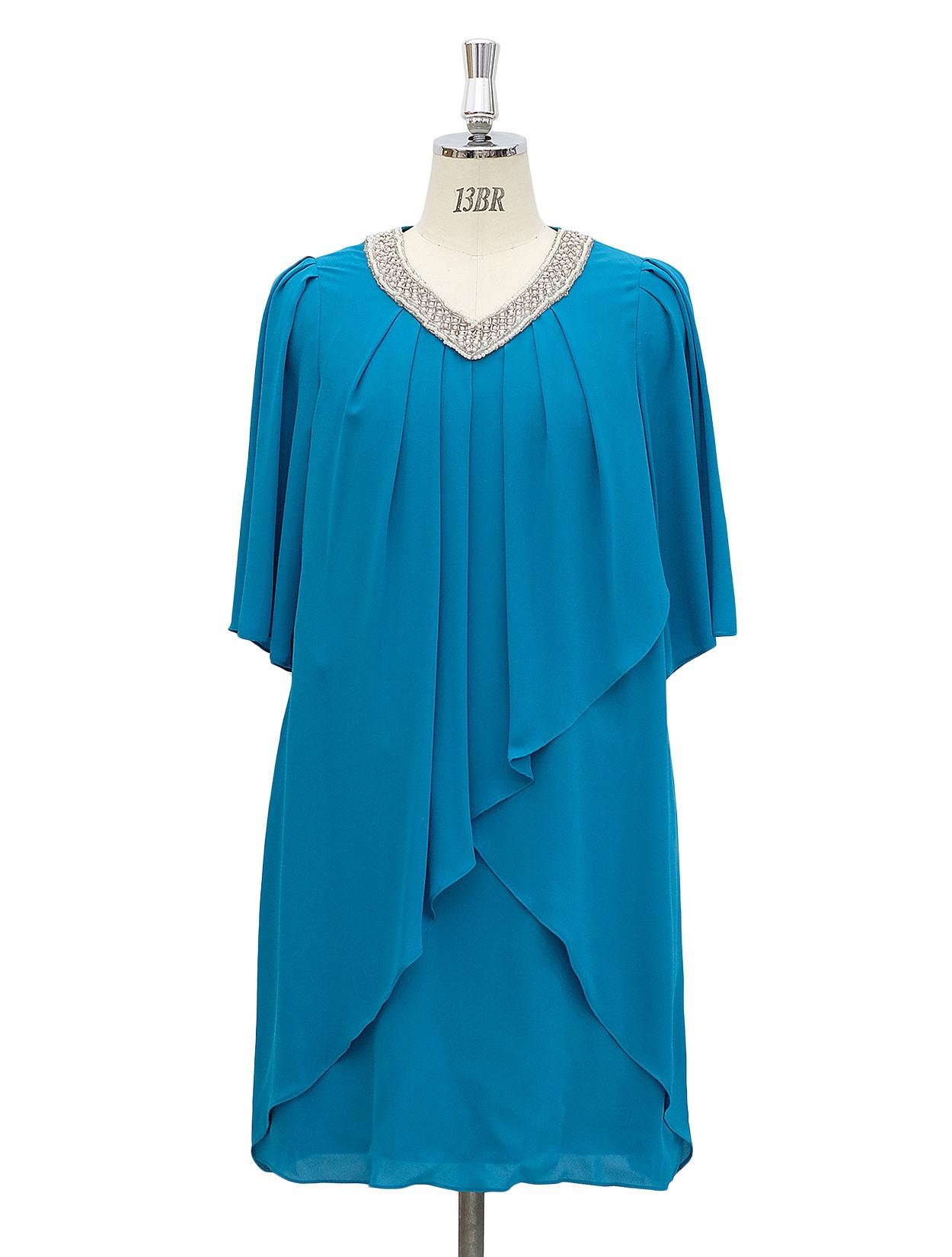 ■襟元のビジューが華やかでパーティーにはぴったりです。ネックレスはシンプルなものがおススメです。