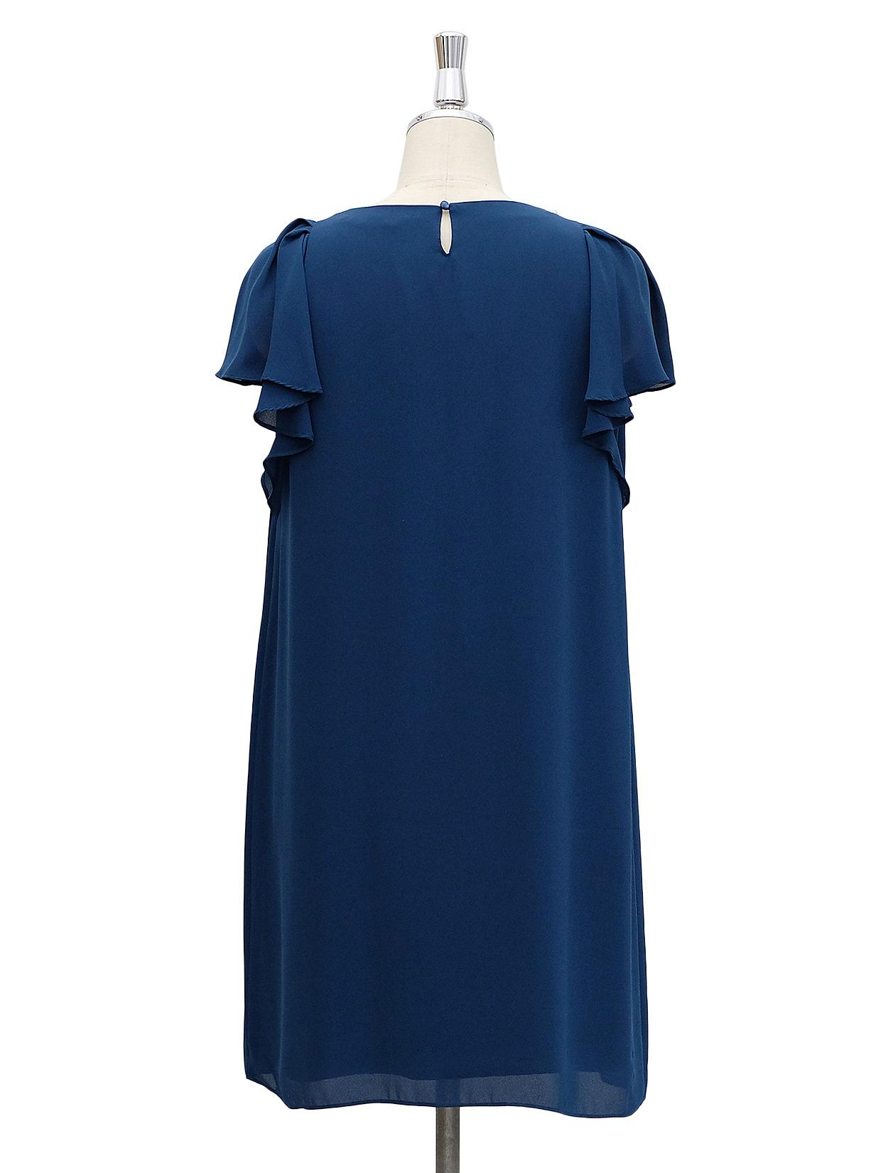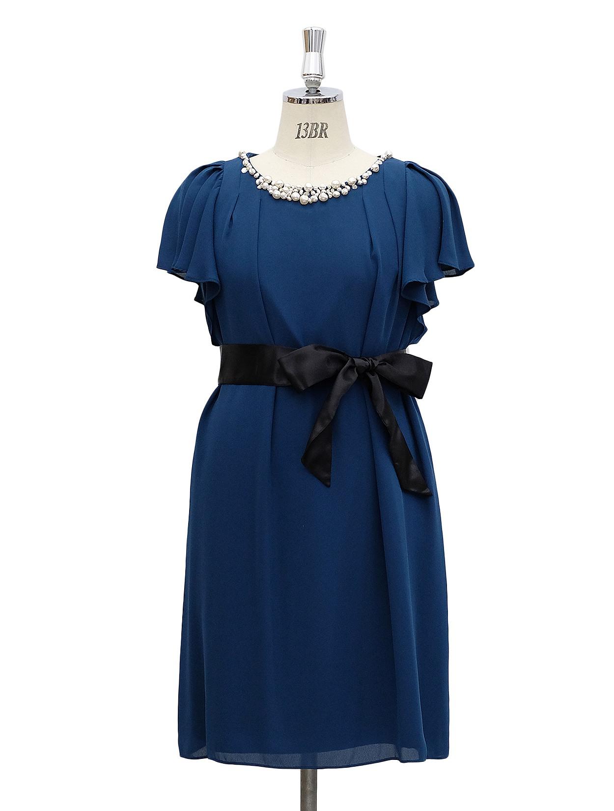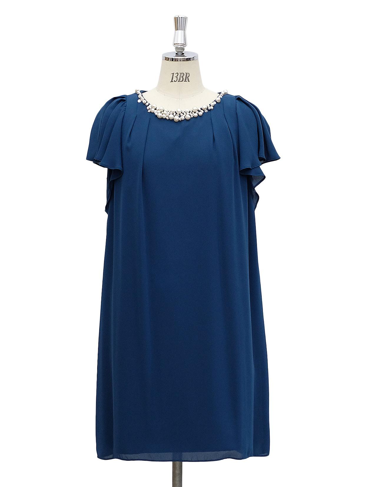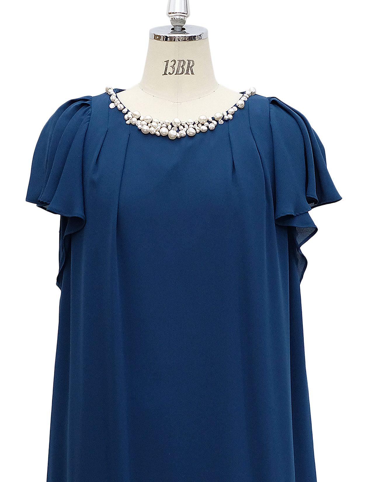■襟元のビジューがブルーのドレスに映える華やかなデザインです。