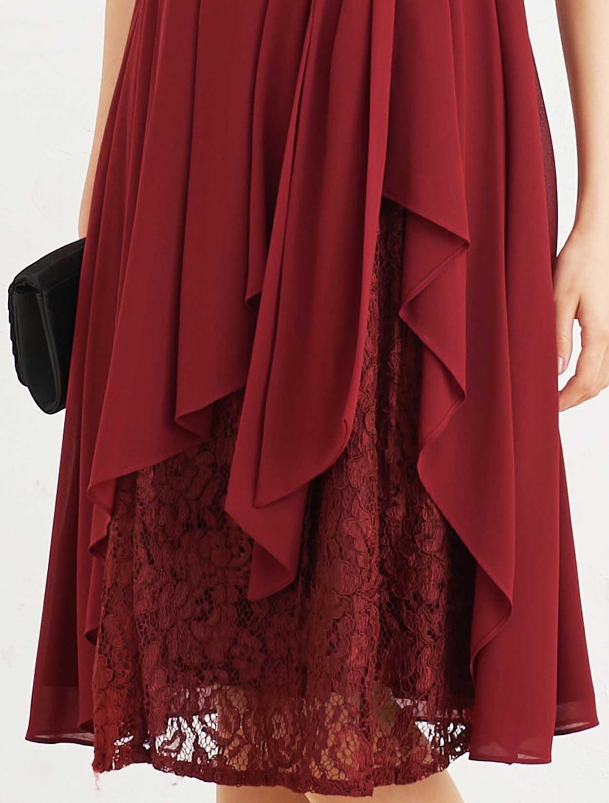 ■ラッフル調のスカートから覗くレースがエレガントなデザインです。