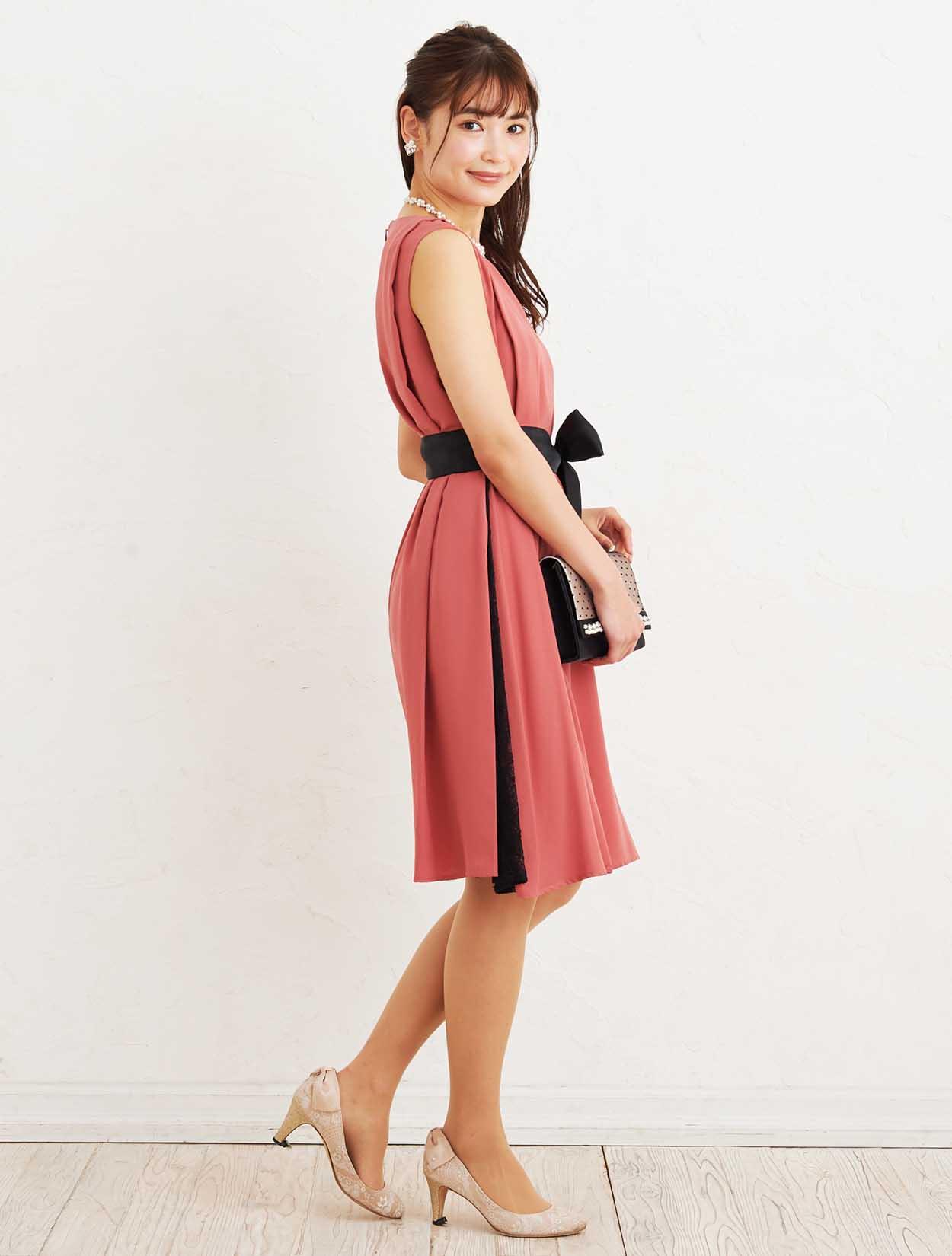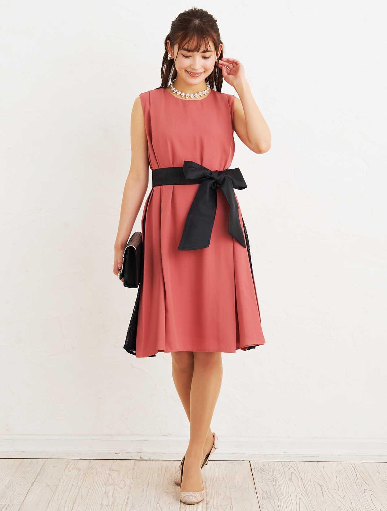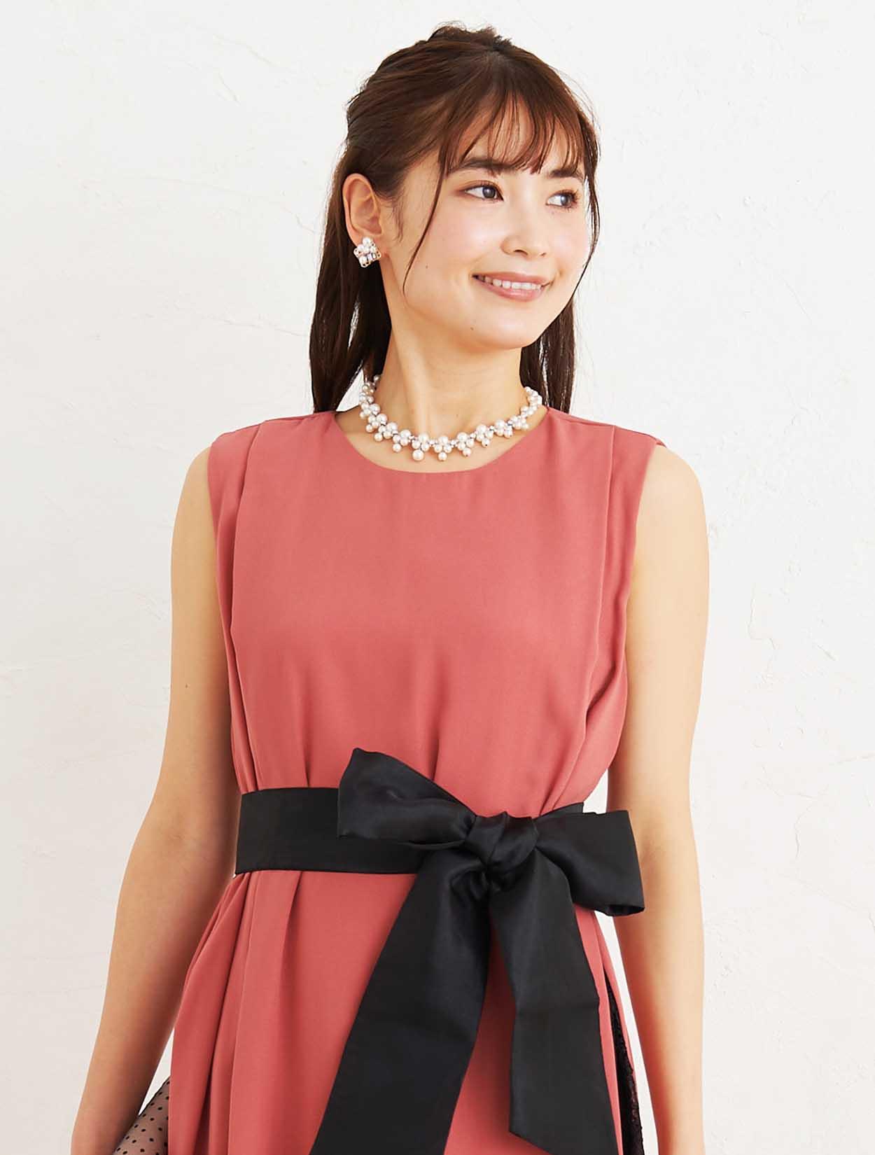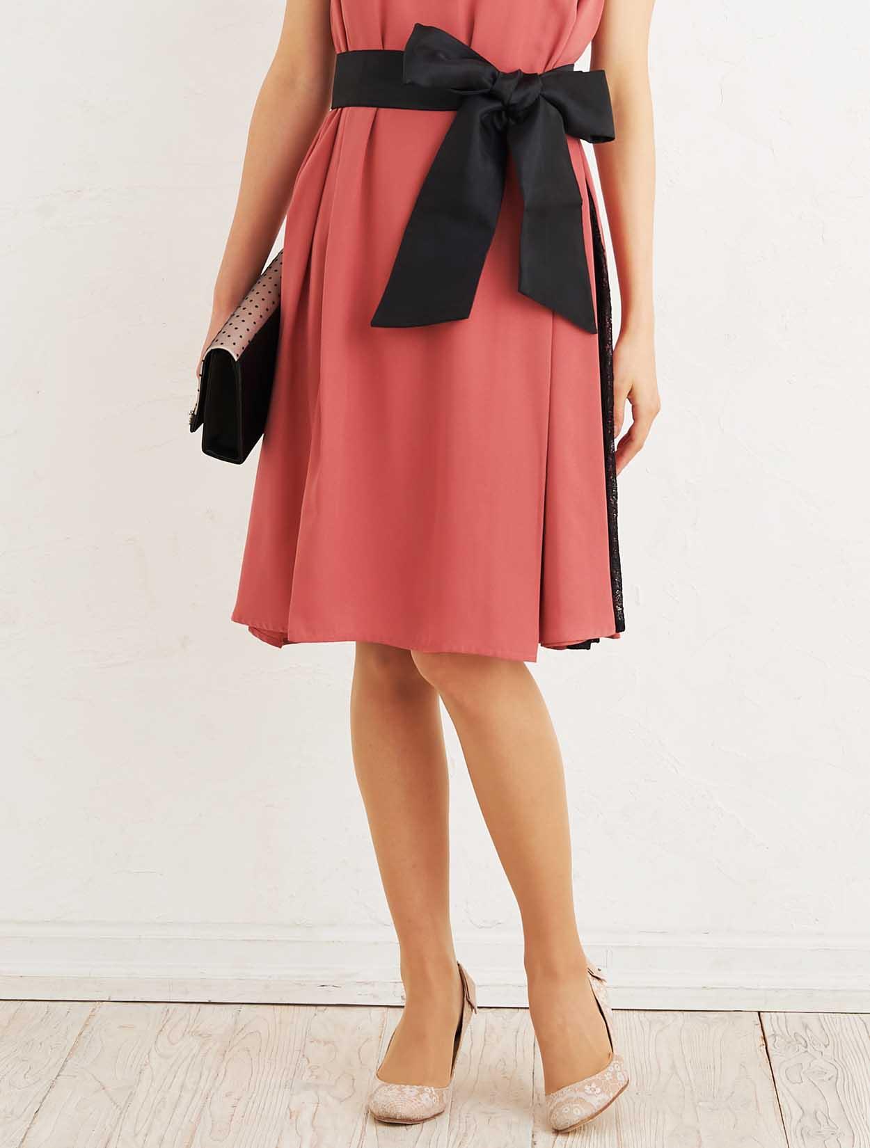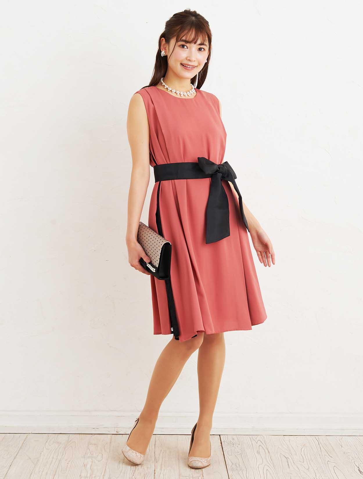 ■リボンベルトが付いていますので、ウエストマークしてスッキリと着こなすことも出来ます。