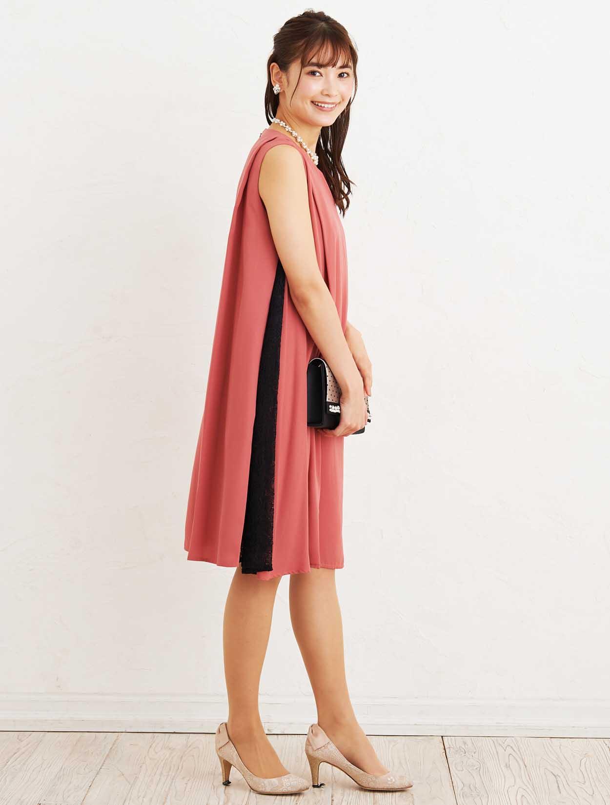 ■ドレスの前身頃にはファスナーが左右に付いている、授乳も可能なマタニティードレスです。