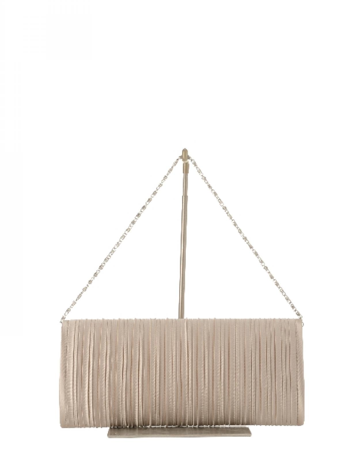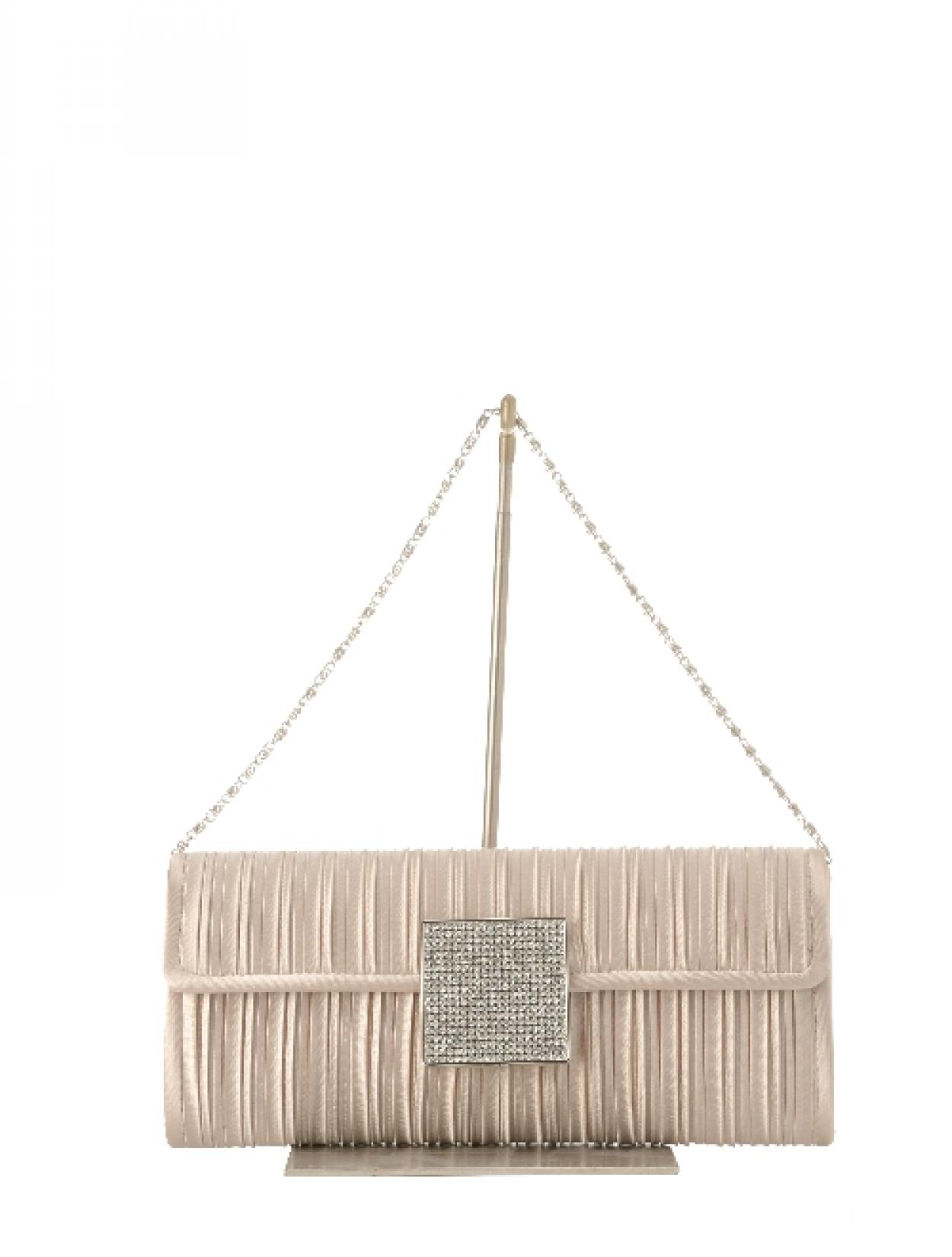 ■四角い形のクラッチバッグで、キレイめに決まります。