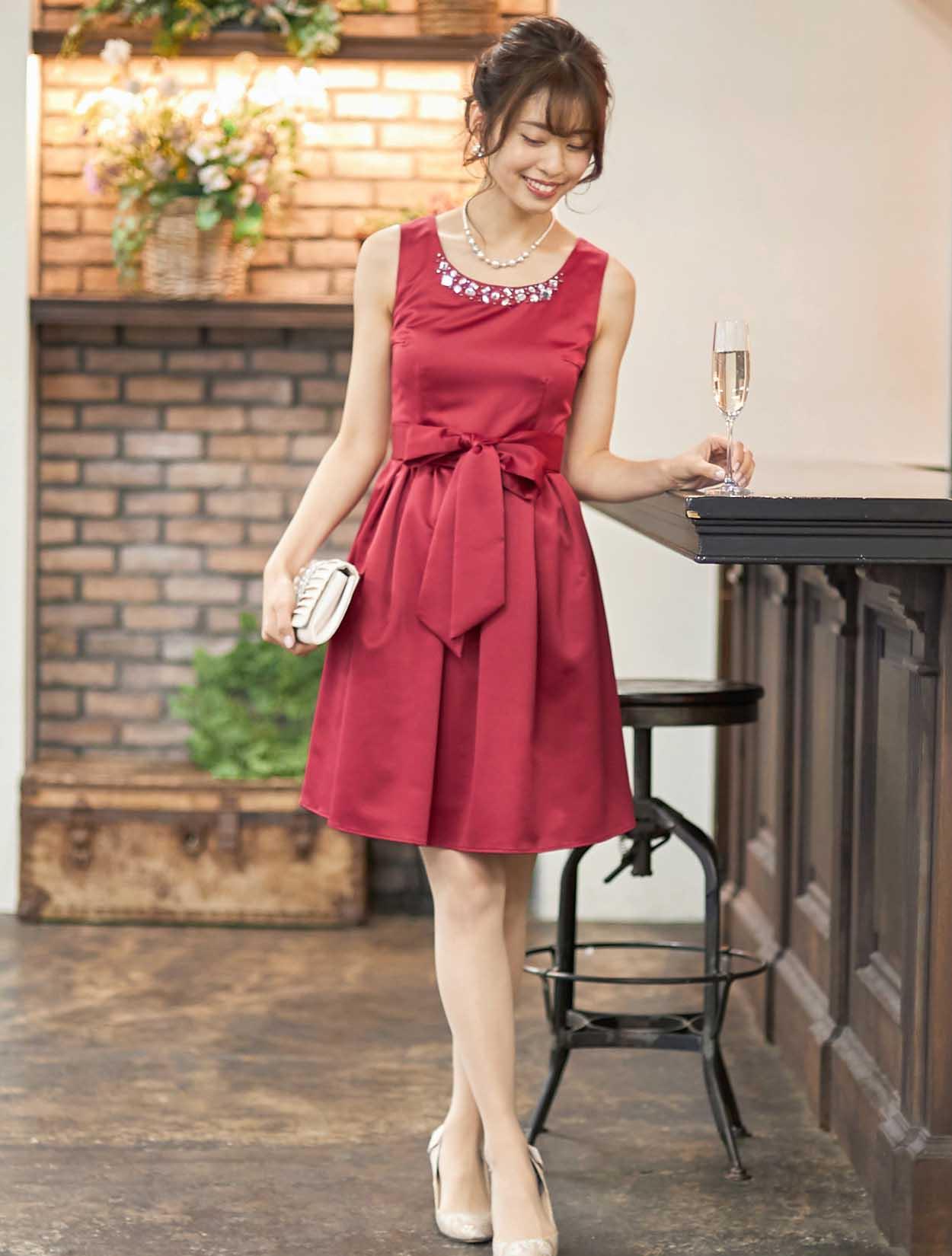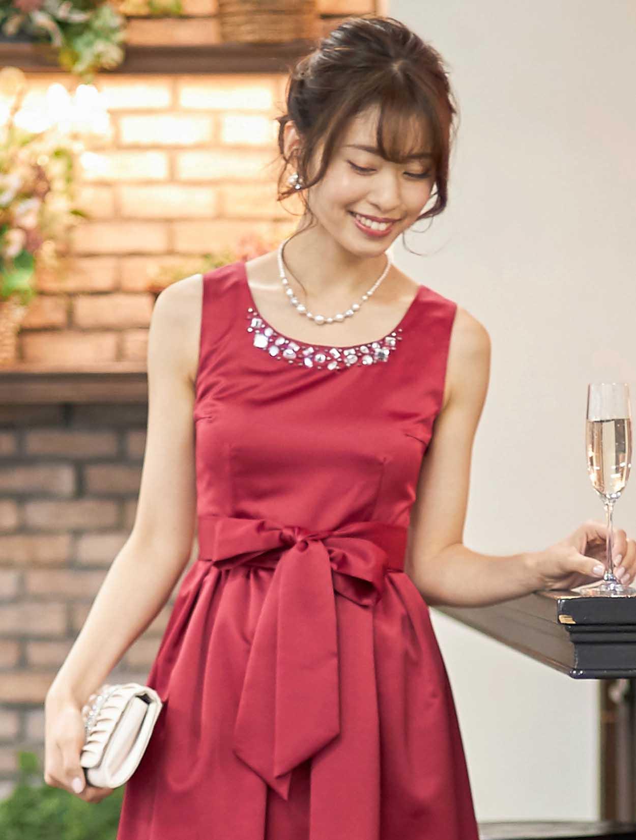 ■深みのあるレッドカラーが印象的なドレスです。