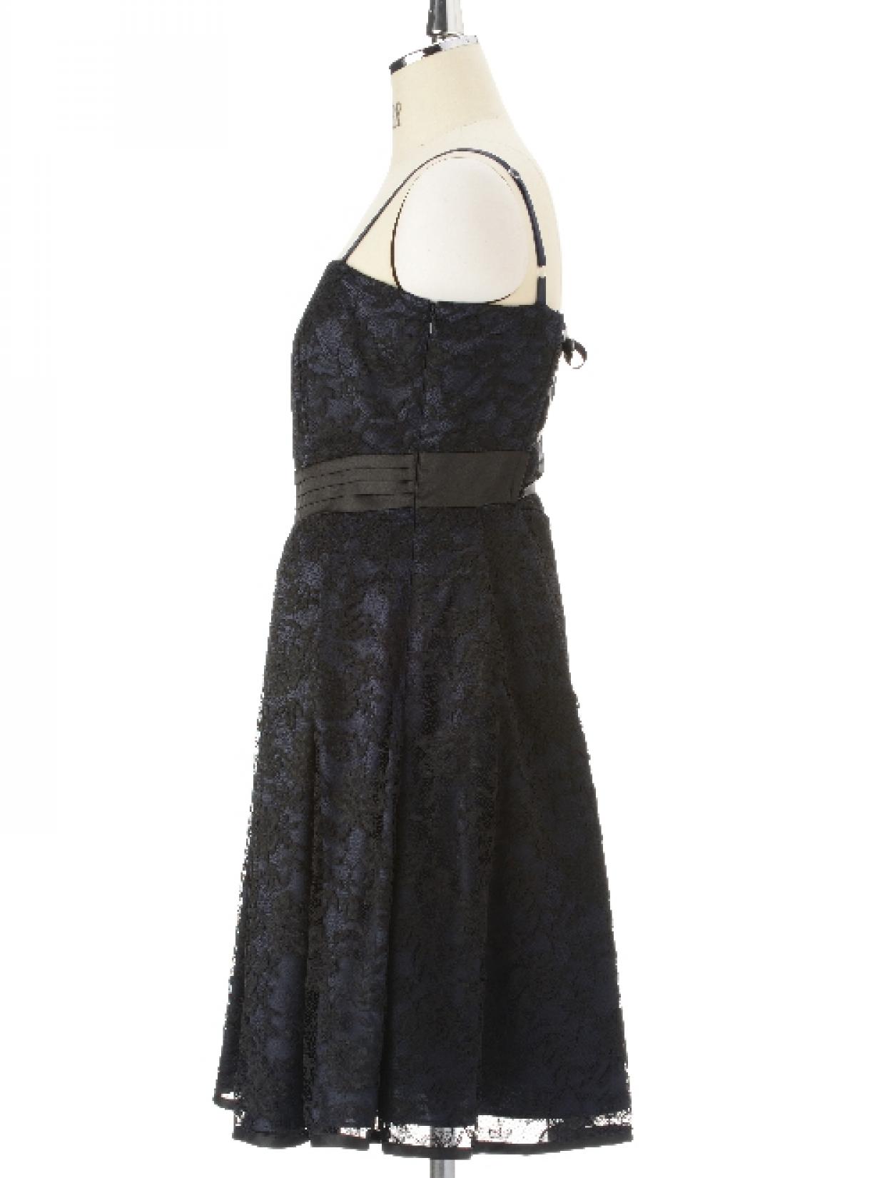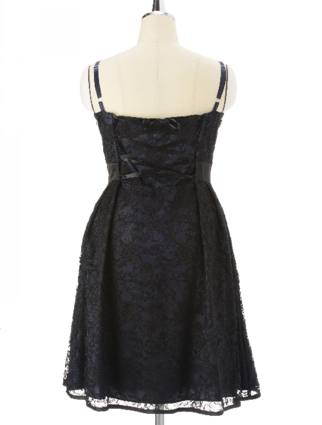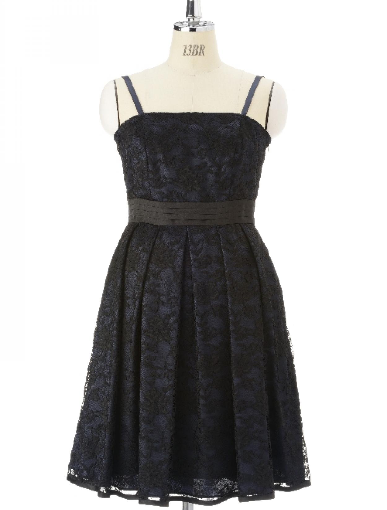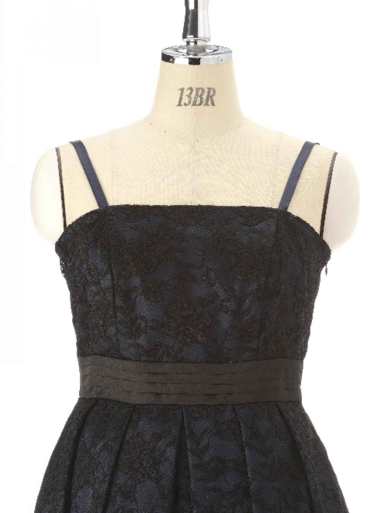 ■濃いめのネイビーにブラックのレースを重ねた上品なドレスです。