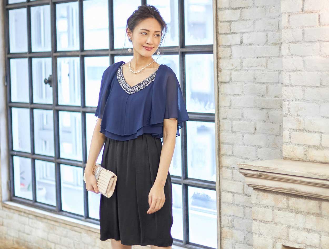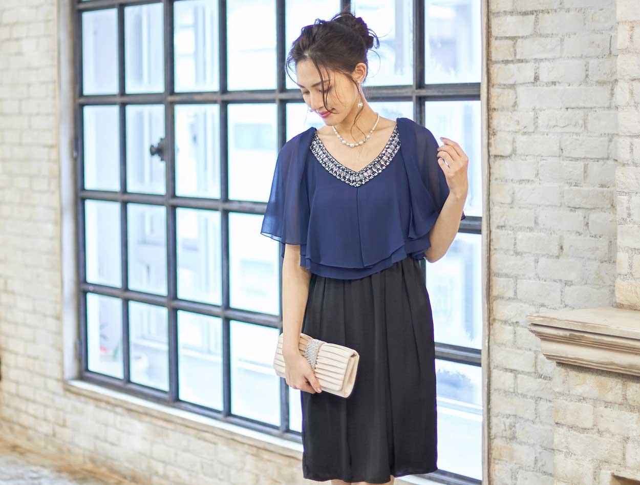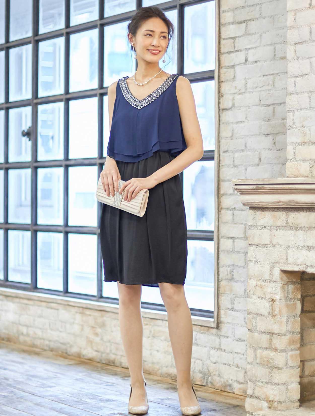 | A4. | クリスタルビジューが大小合わせて3列になり、Vネックに沿って施されている、豪華な装飾です。 |
