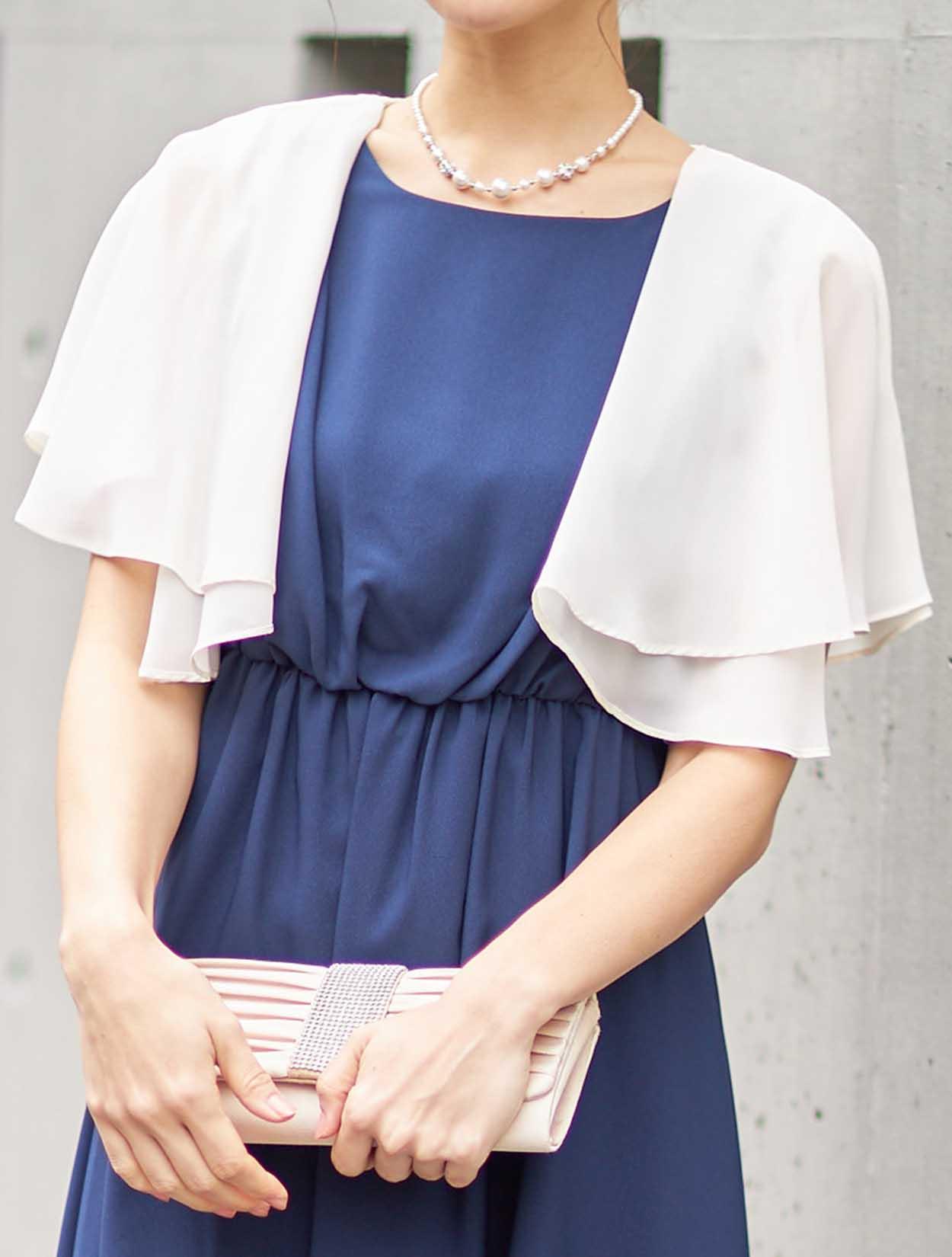 ■明るいベージュのボレロでお顔回りも華やかになります。