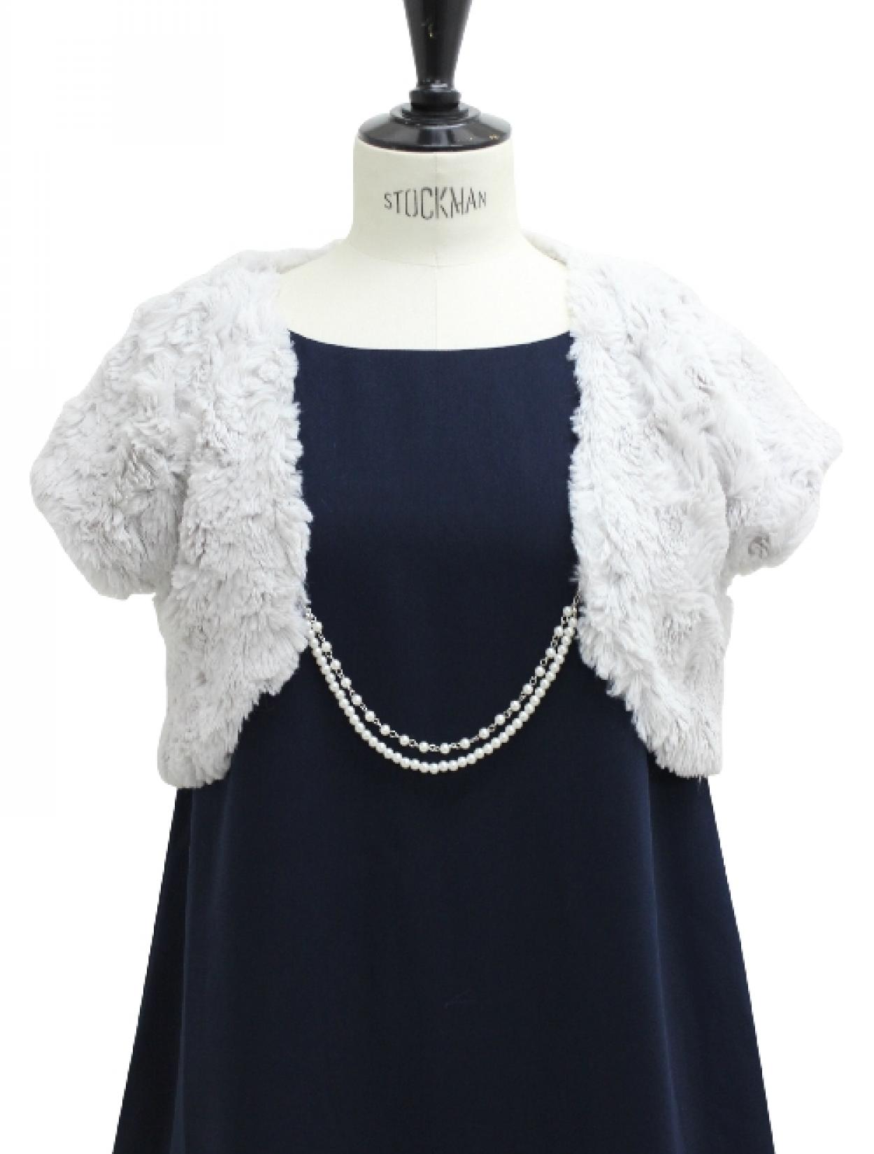 【M/L】フェイクファーチェーン付きボレロ(Lグレー)